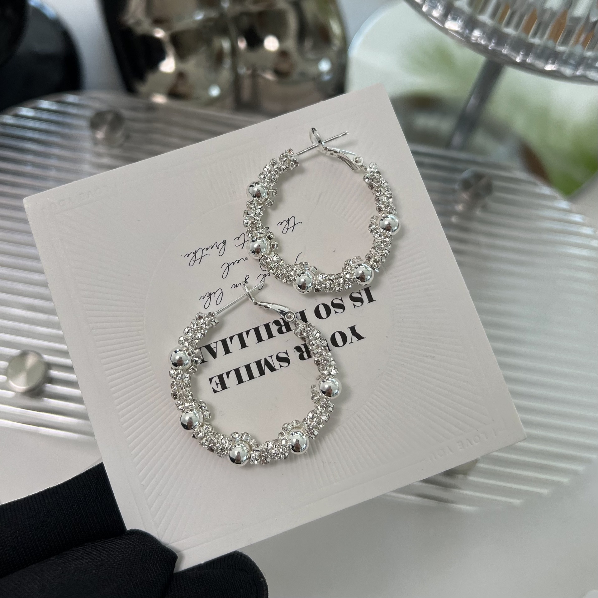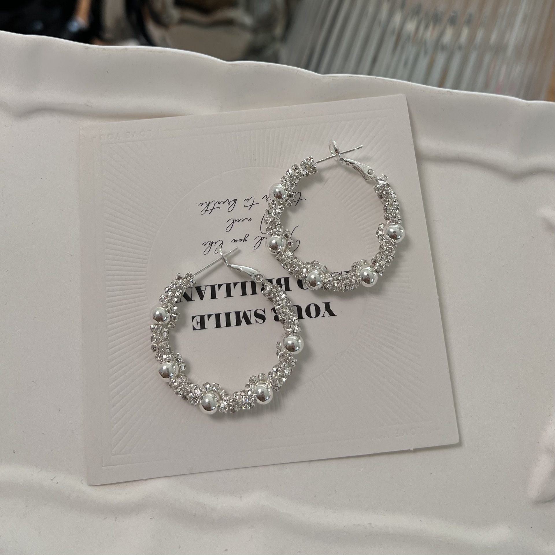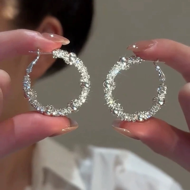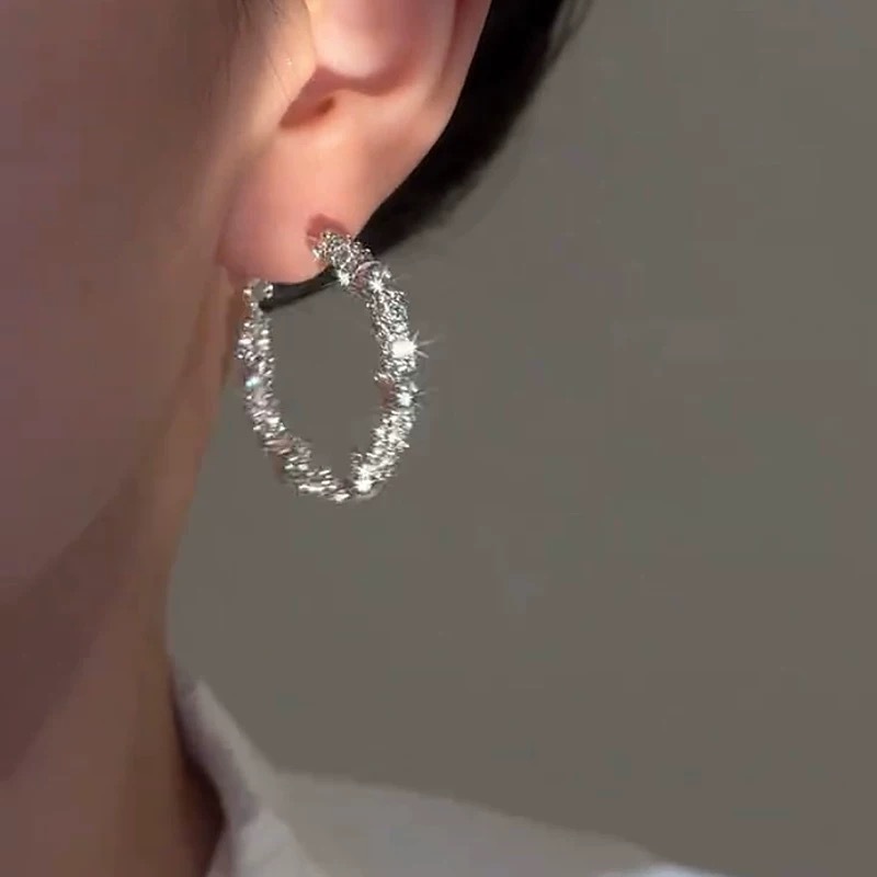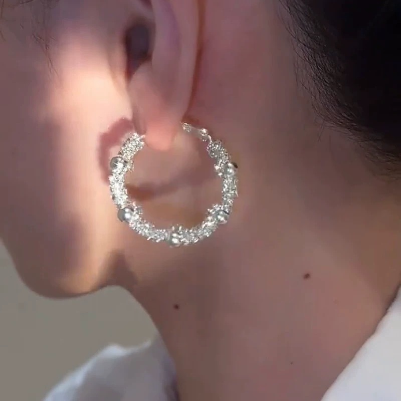 新款时尚百搭碎银圆圈耳环潮流网红耳环个性优雅耳针耳饰品轻奢风