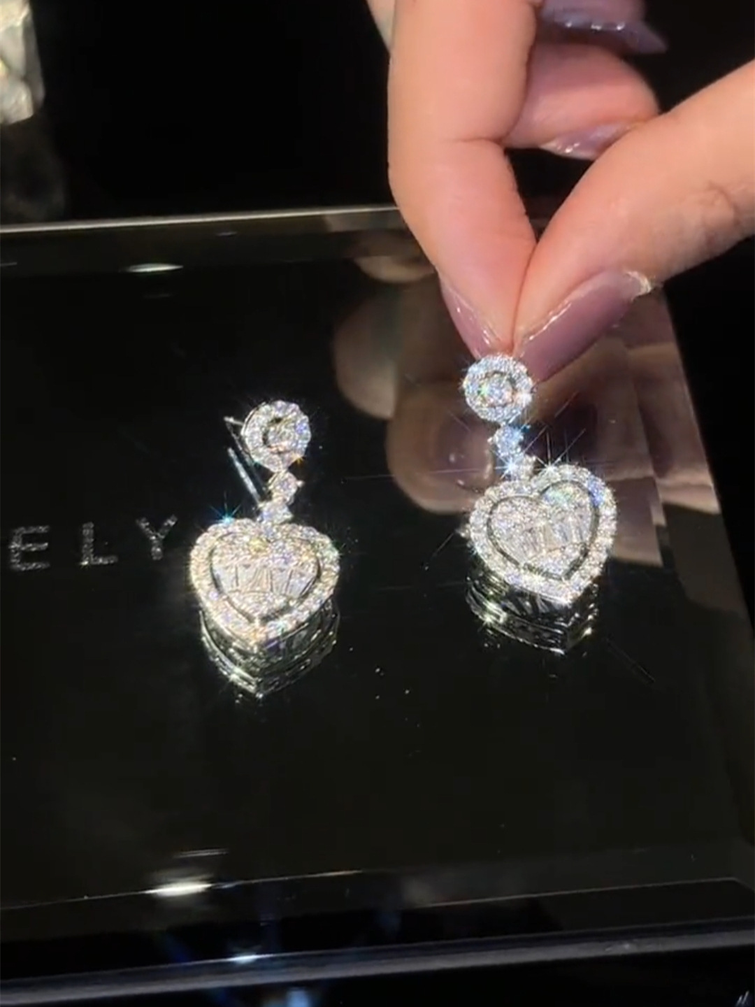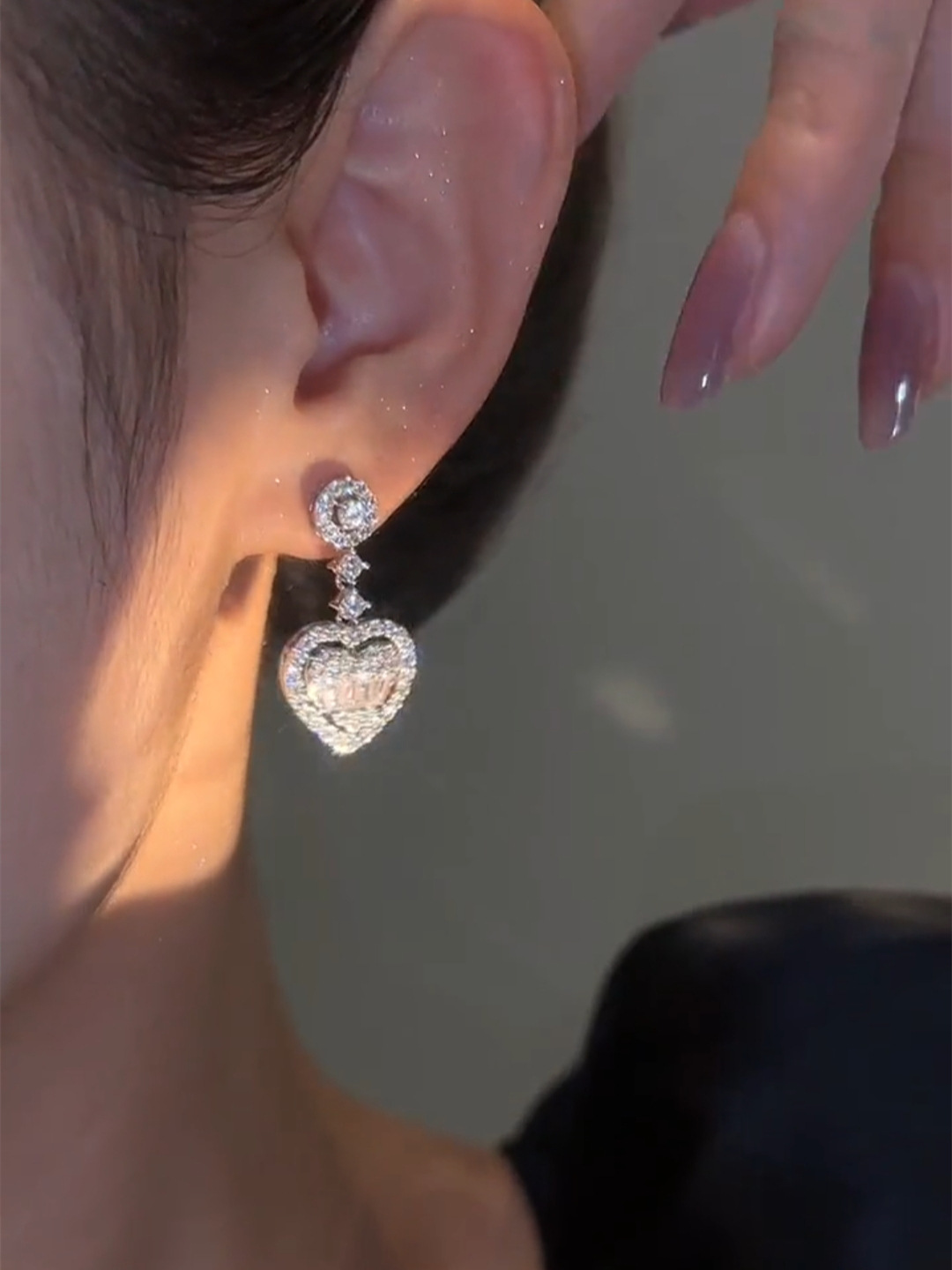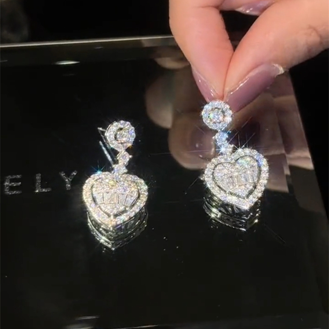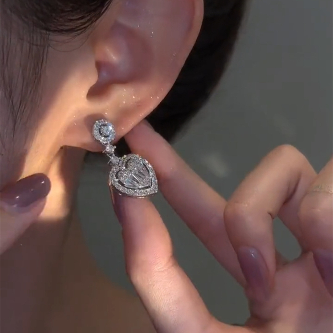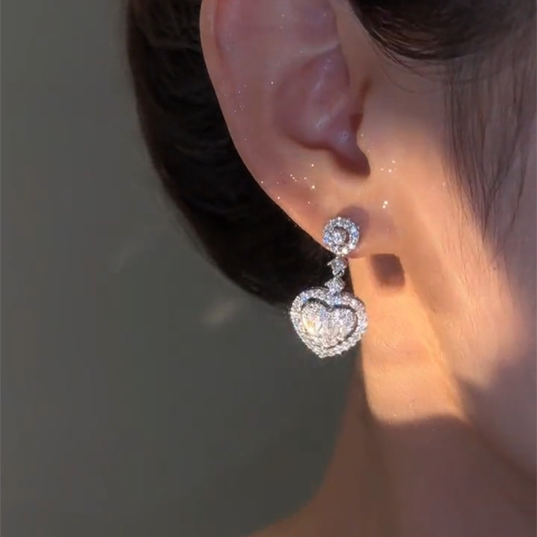 微镶锆石爱心耳钩长款水滴造型气质时尚轻奢风女爱心网红百搭耳饰