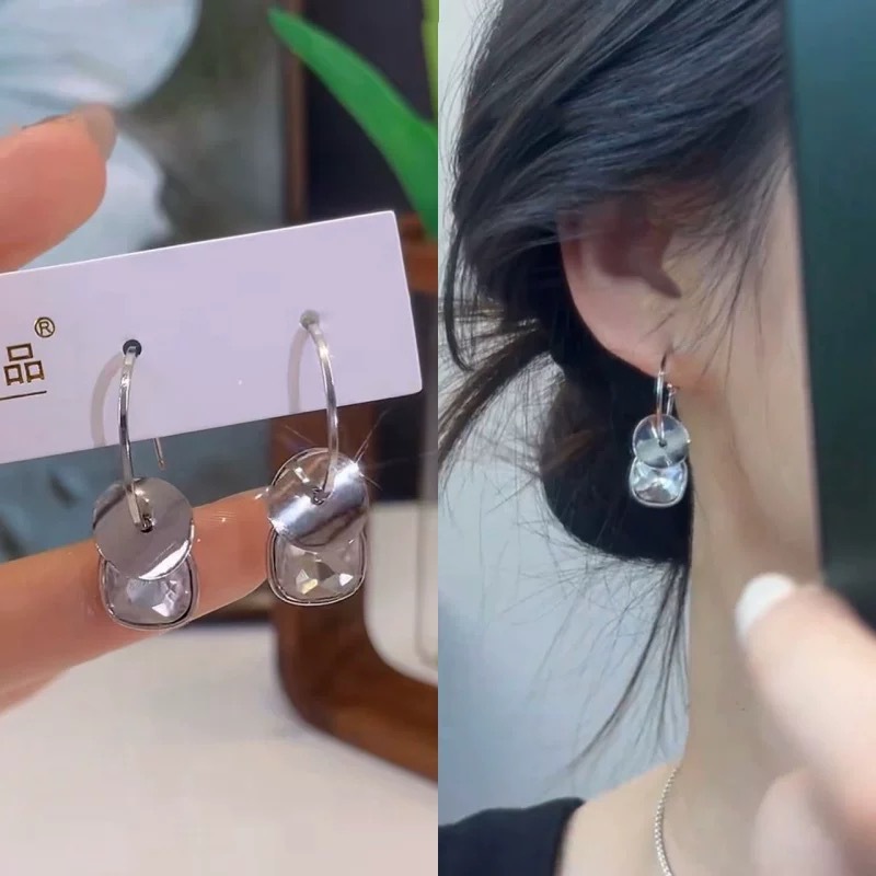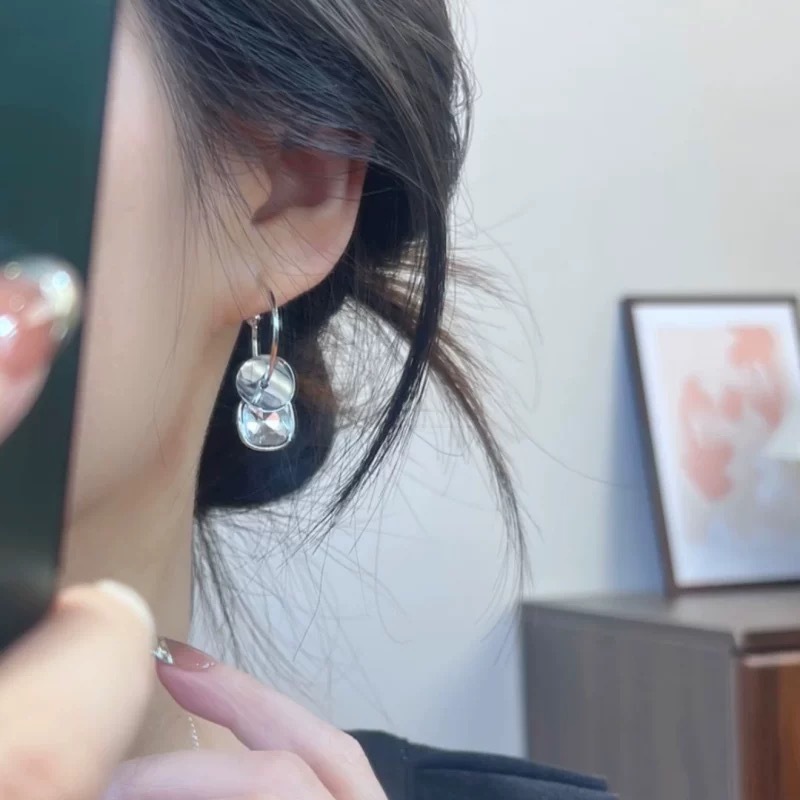 一款多戴双层亮片锆石耳坠耳环2025年新款爆款耳钉独特百搭耳饰女