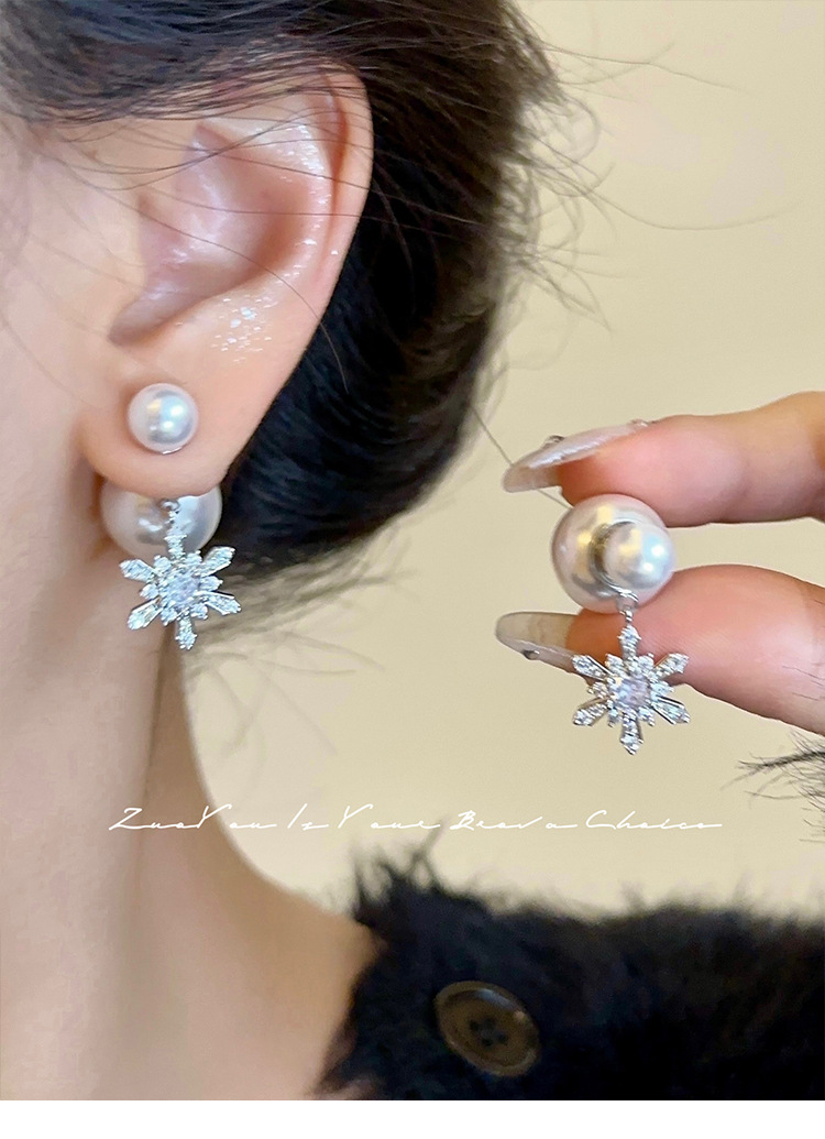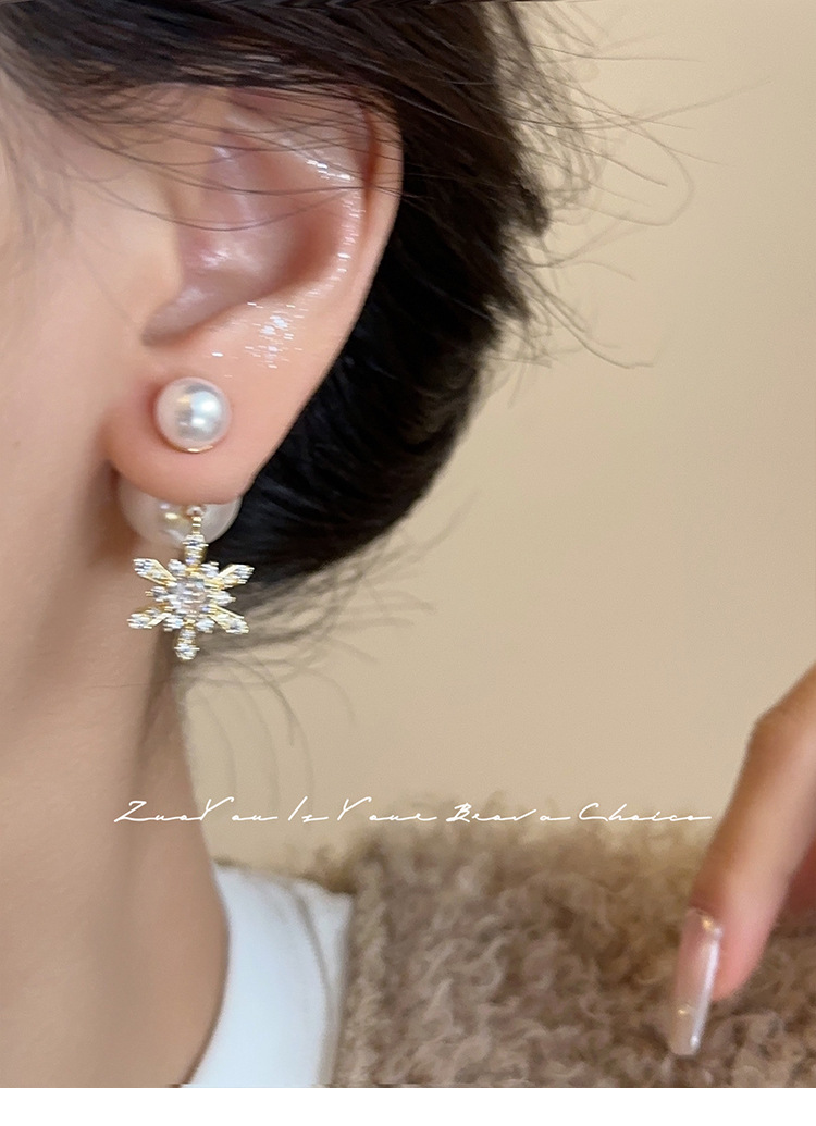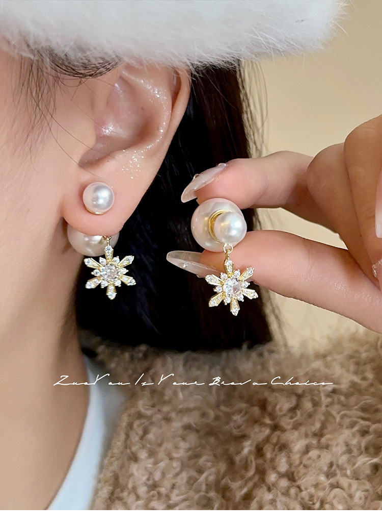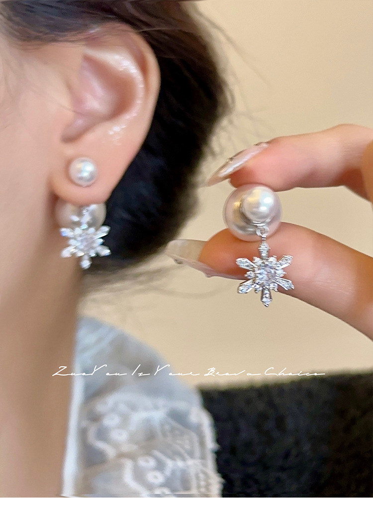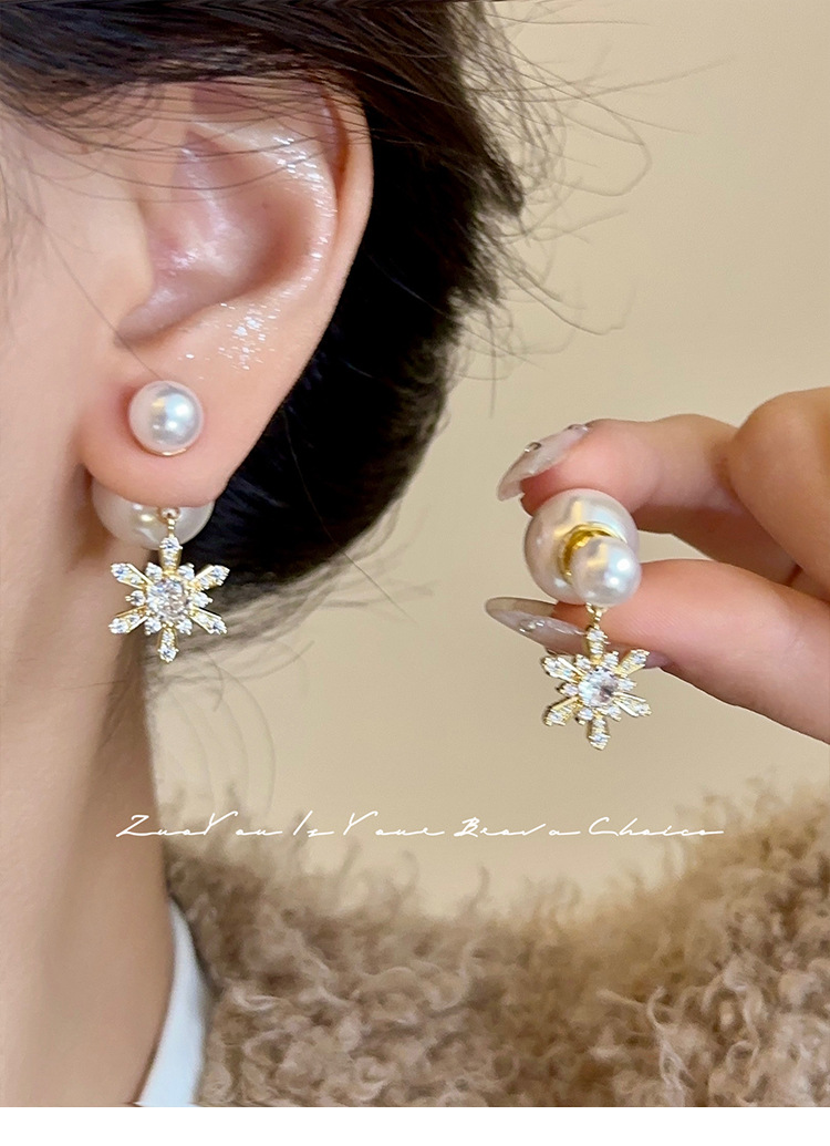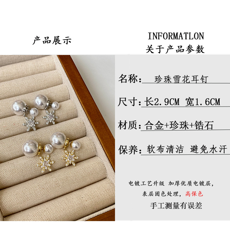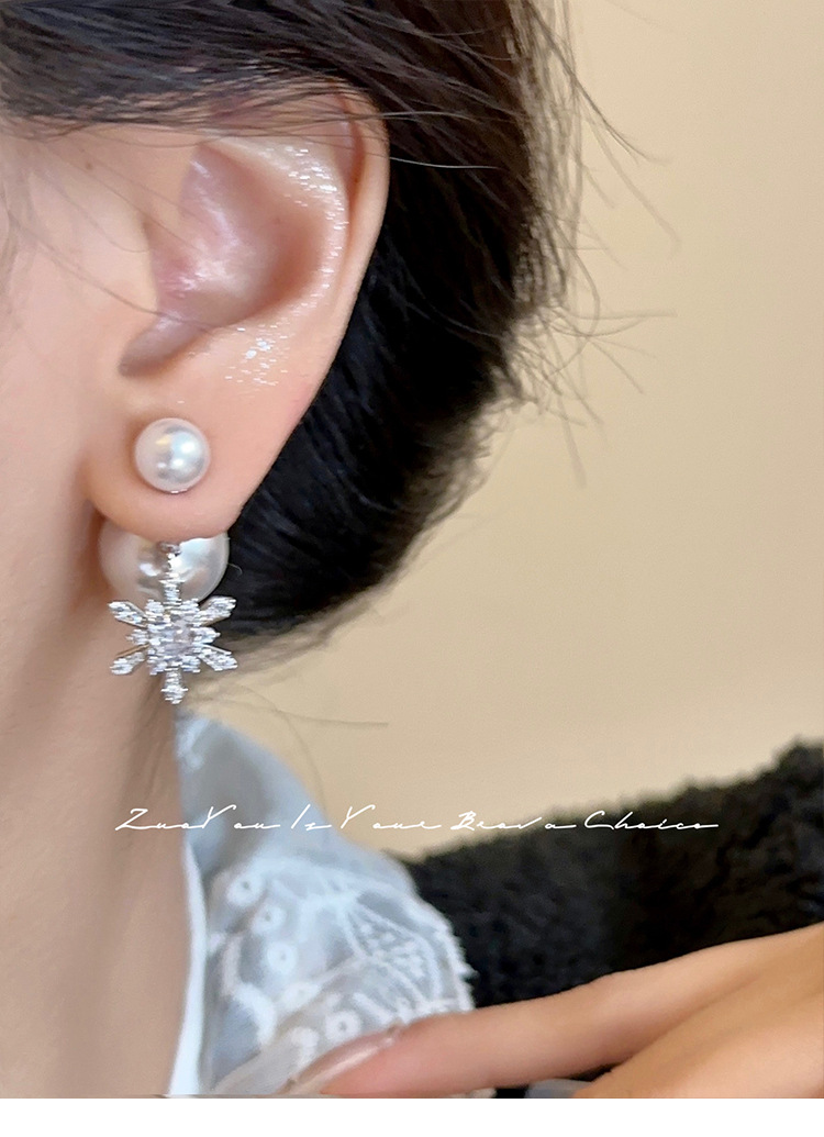 设计感双面珍珠锆石雪花耳钉气质时尚新款耳饰小众高级精致耳环女