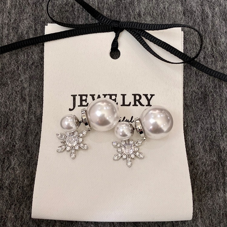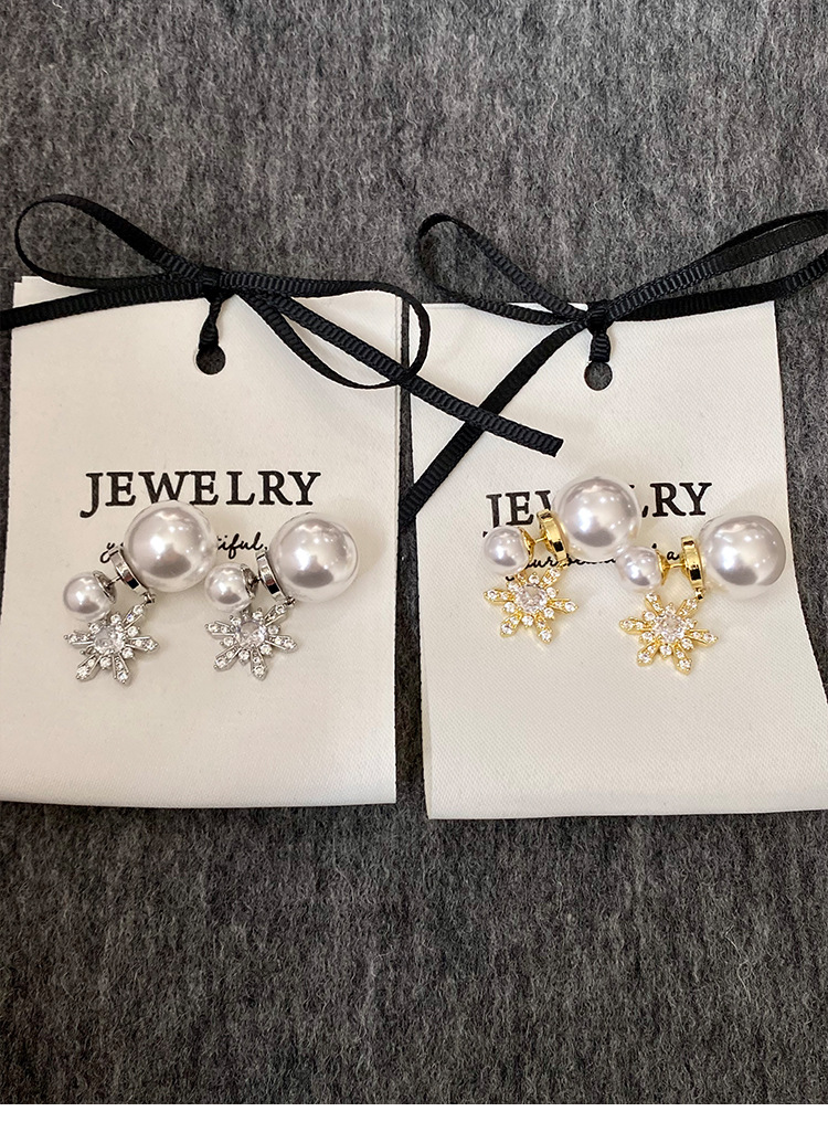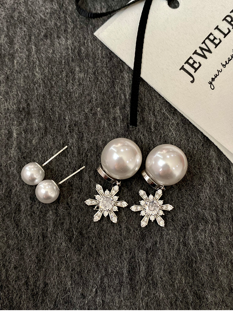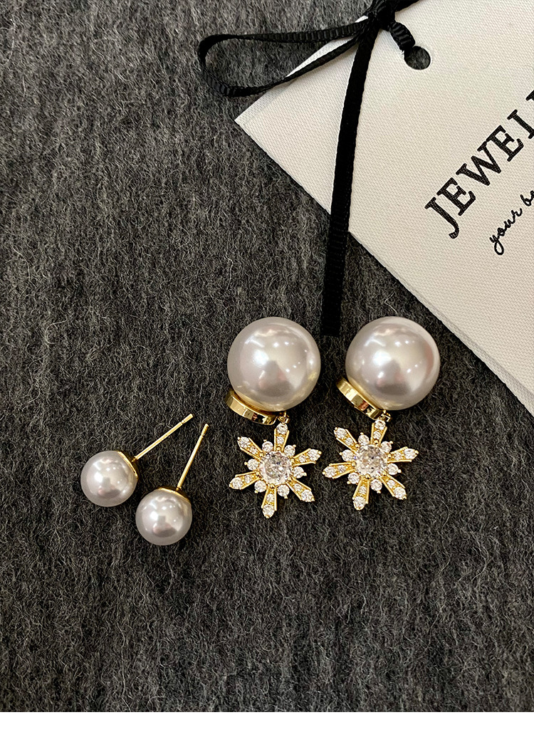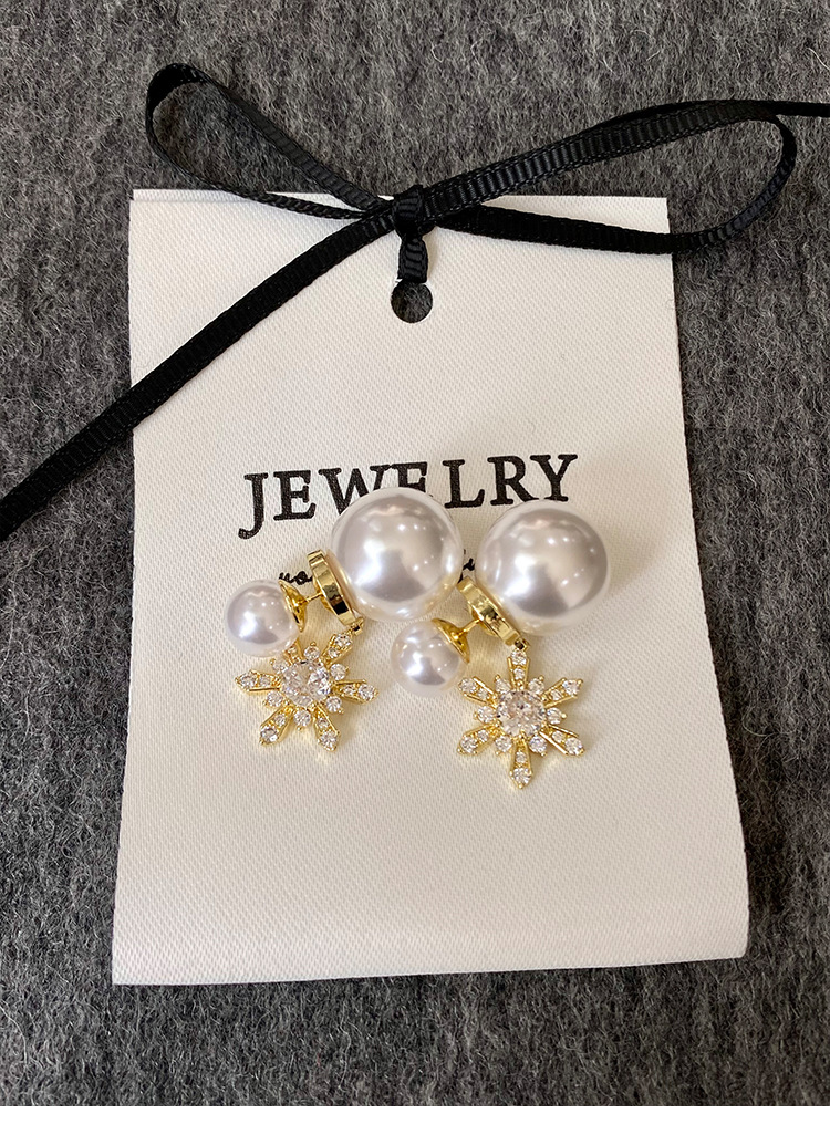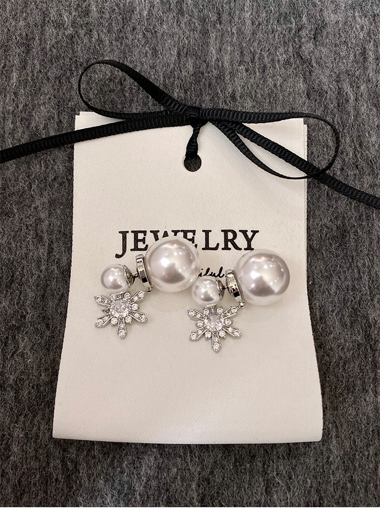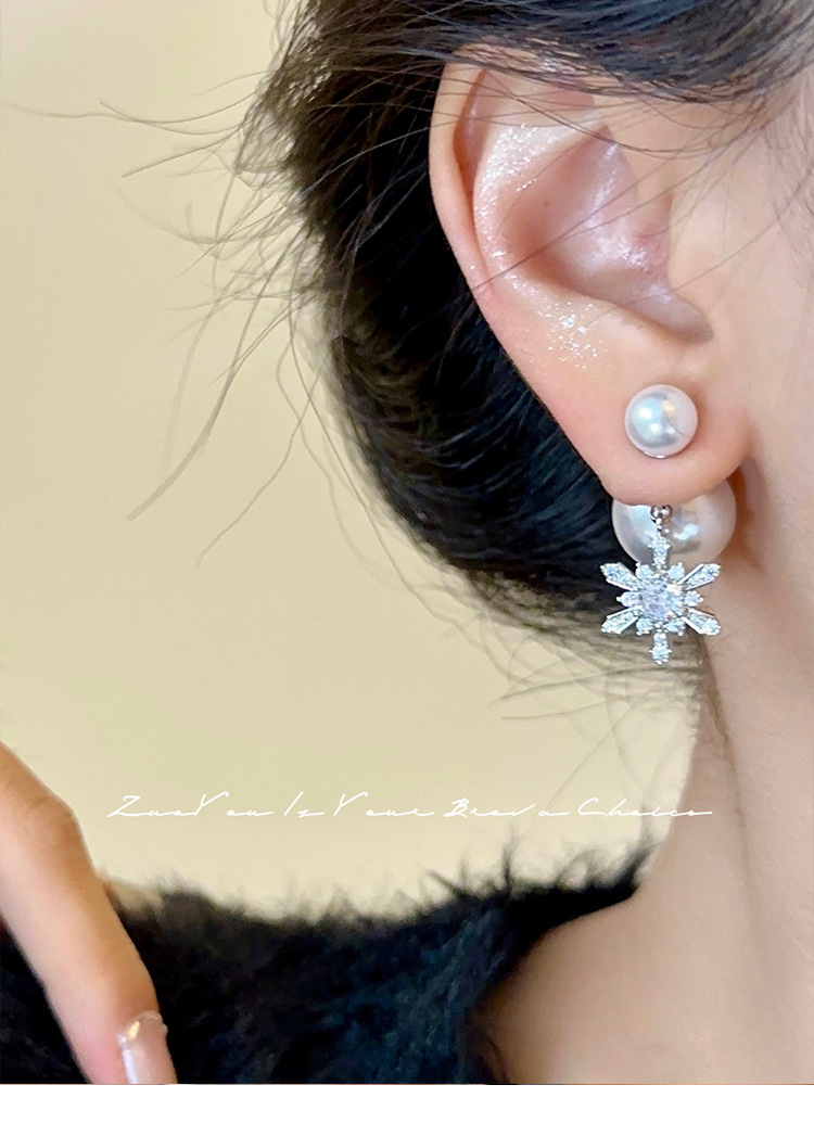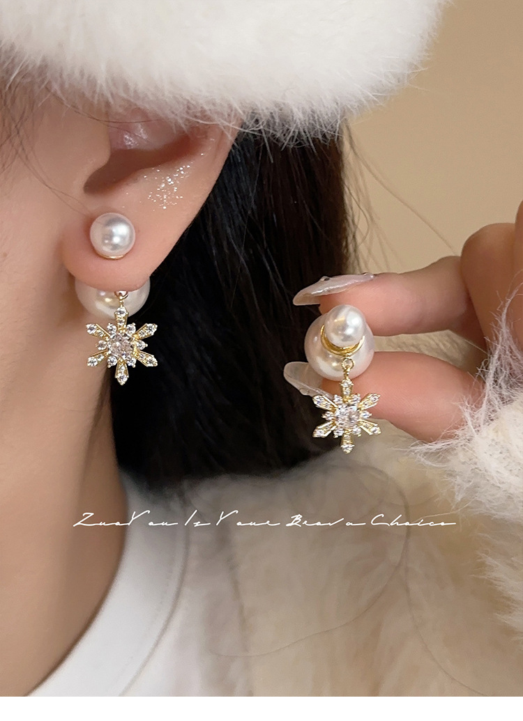 设计感双面珍珠锆石雪花耳钉气质时尚新款耳饰小众高级精致耳环女