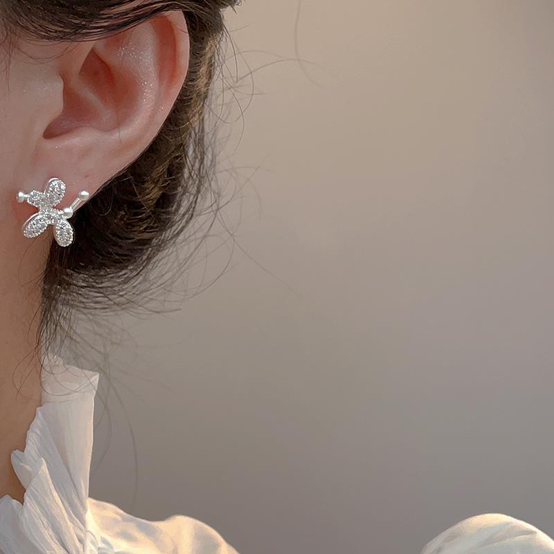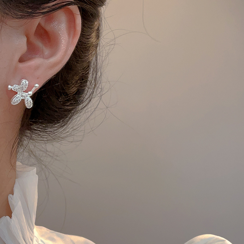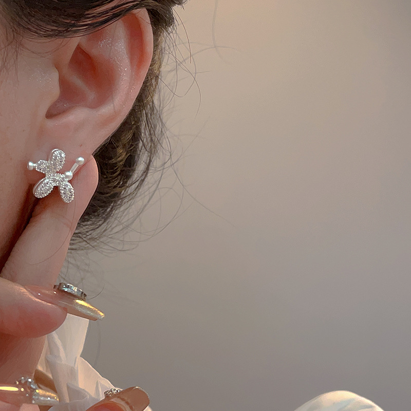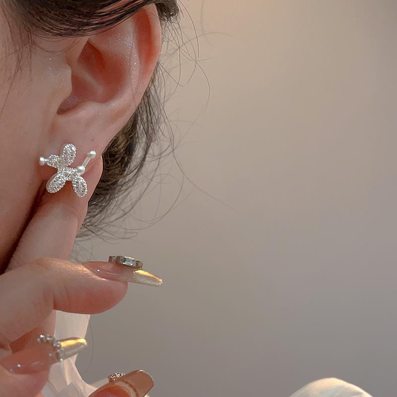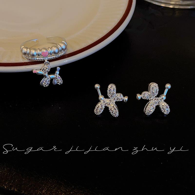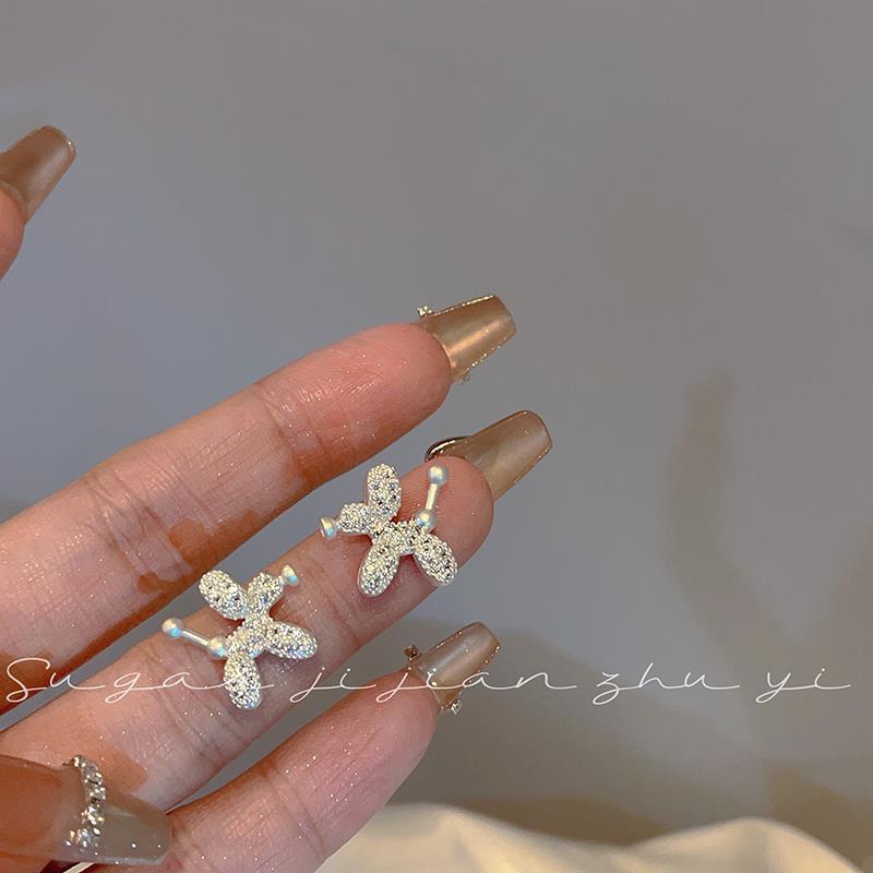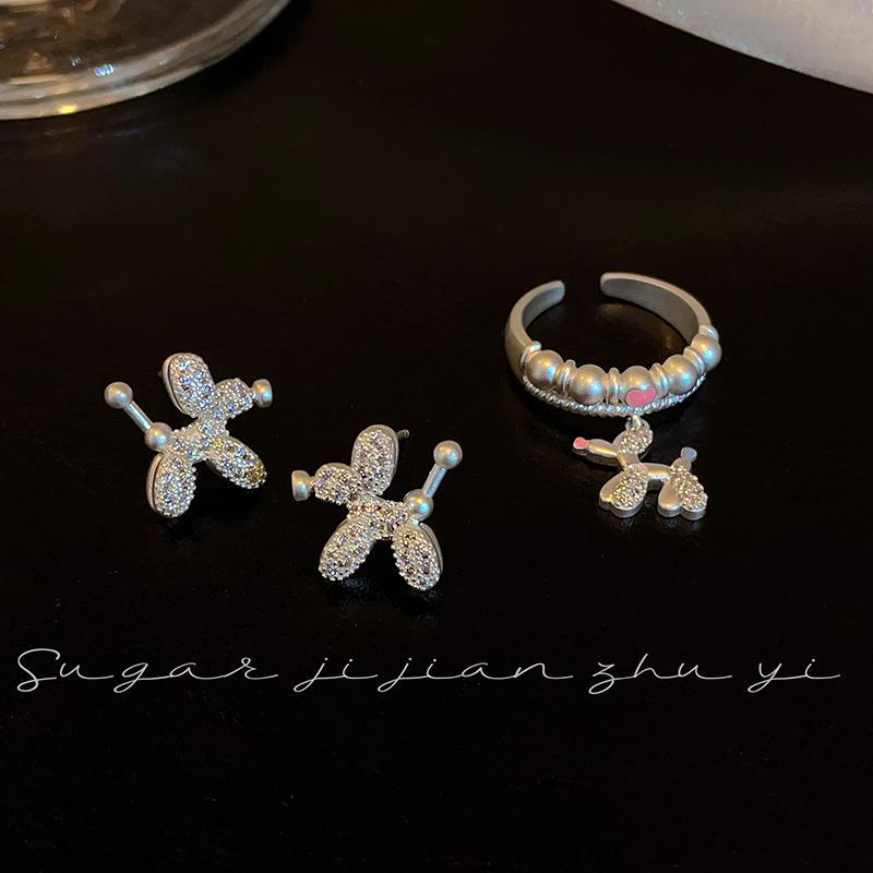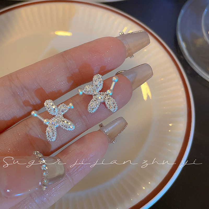 微镶锆石哑银色气球狗耳钉S925银针女ins甜酷简约冷淡风设计感