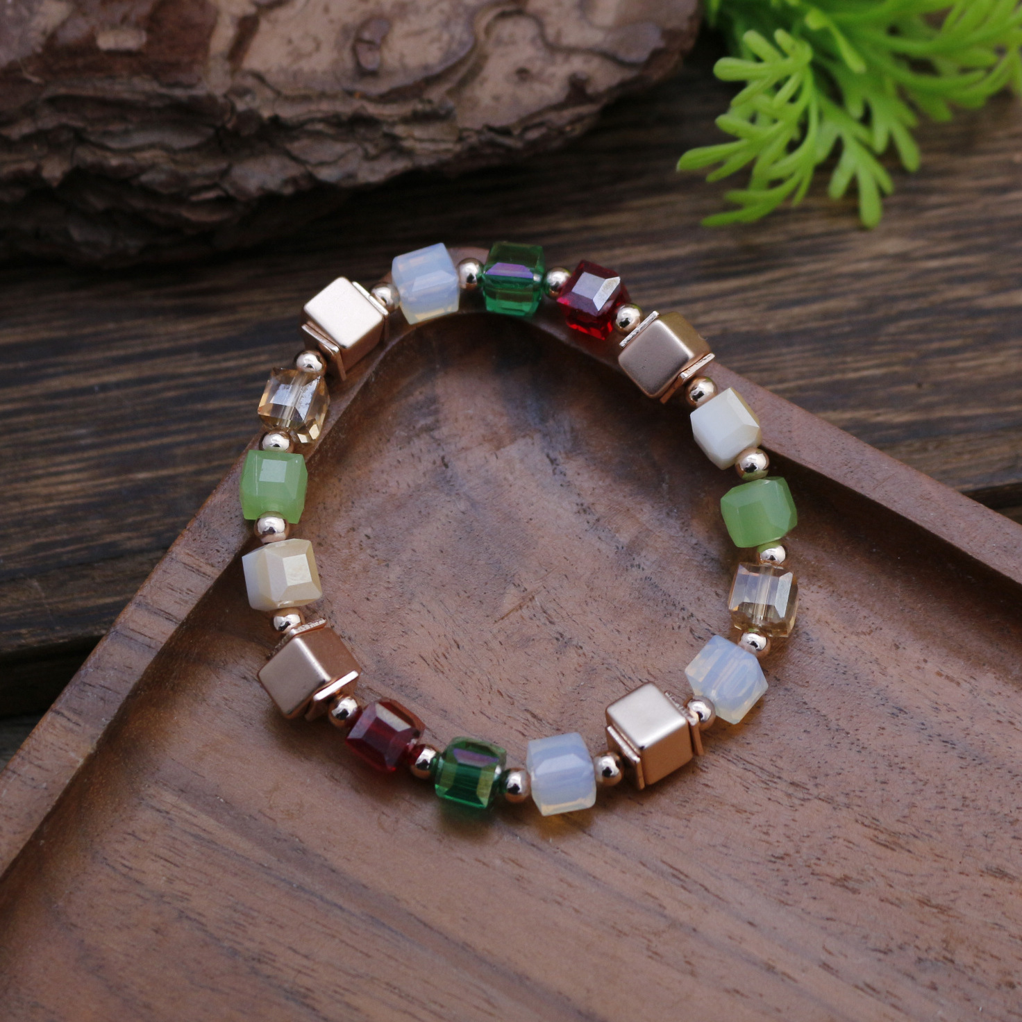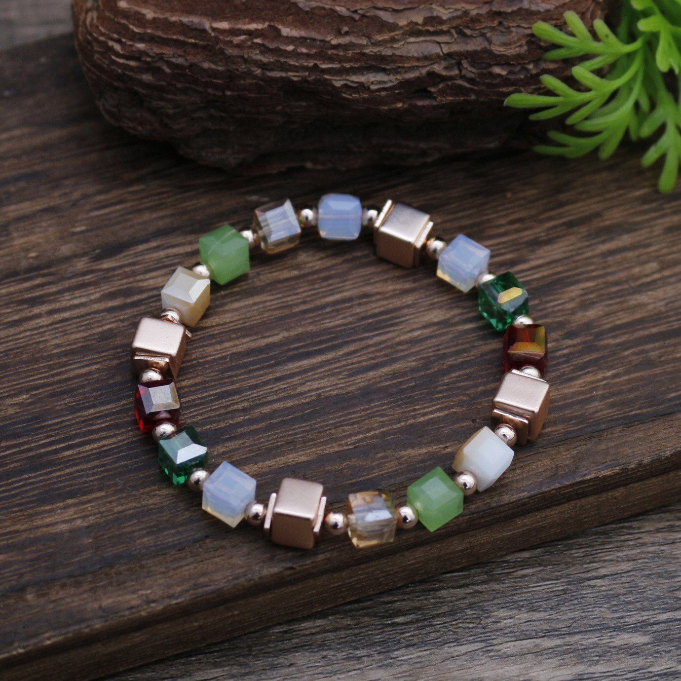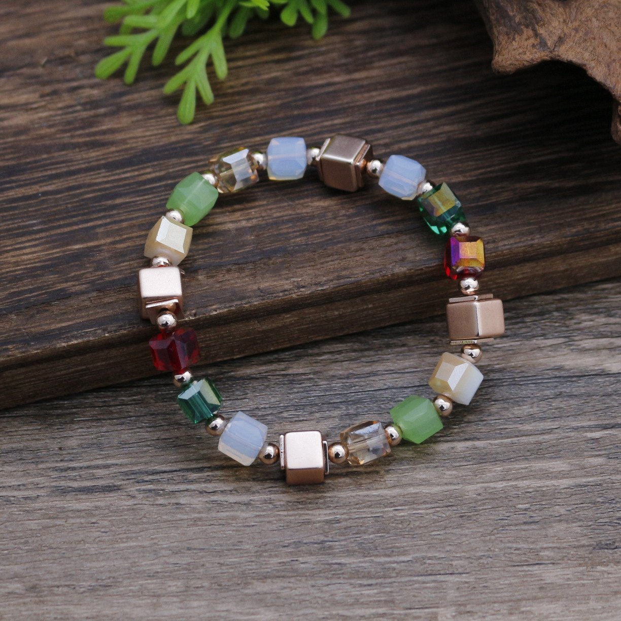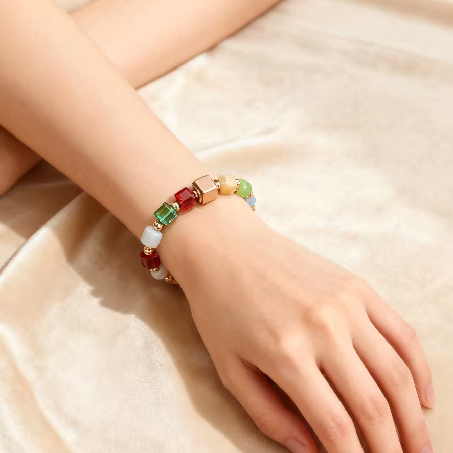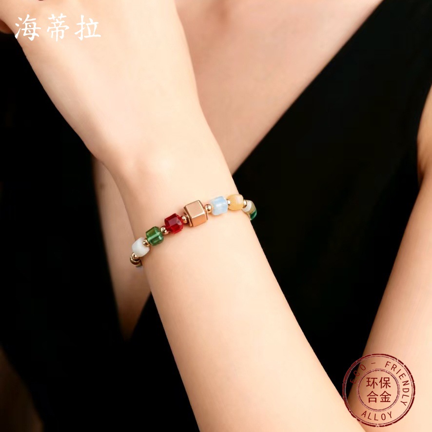 跨境新款不规则几何方形弹力手链女士简约高级感小方糖百搭手链
