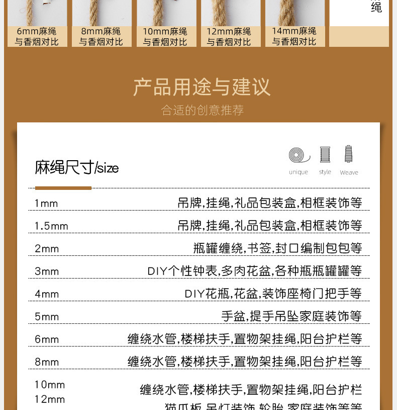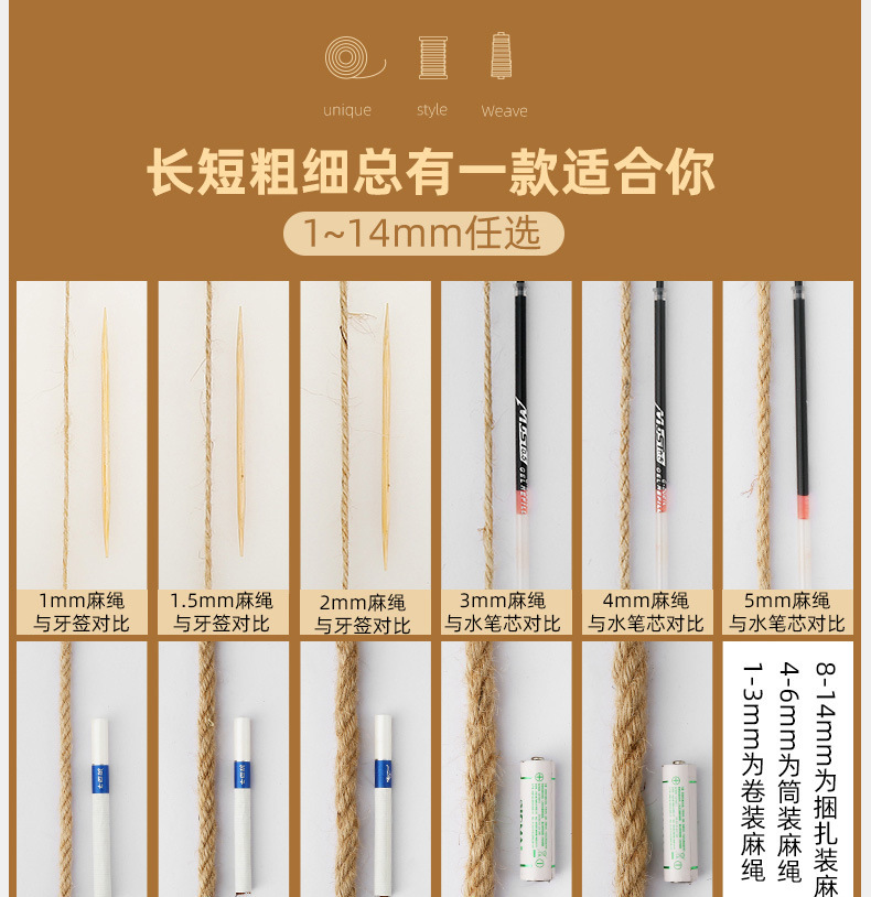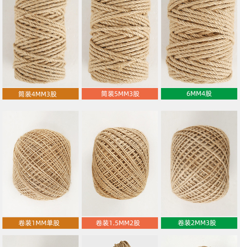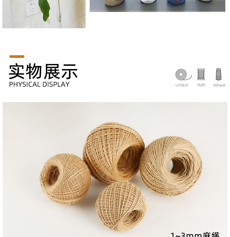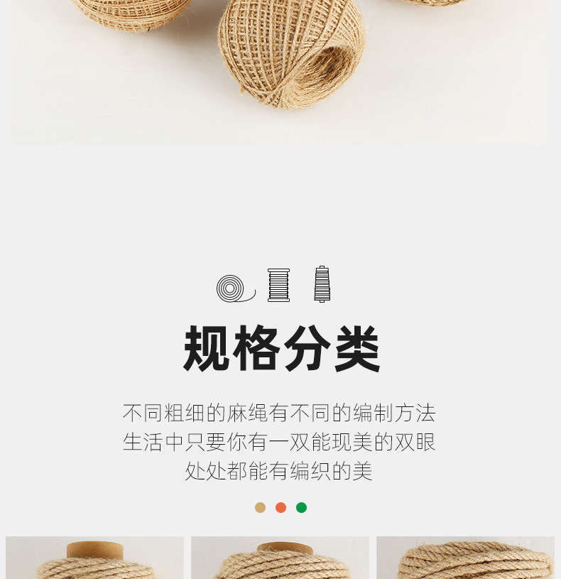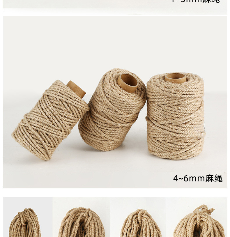 优质粗细麻绳绳子diy工艺品装饰绳猫抓柱捆绑绳diy吊牌黄麻绳