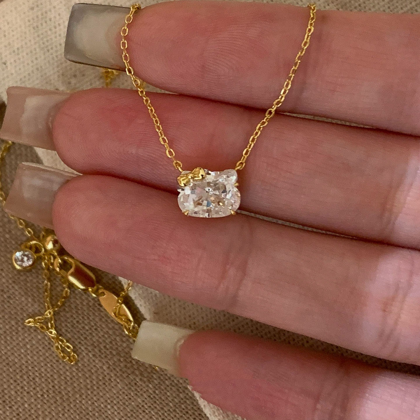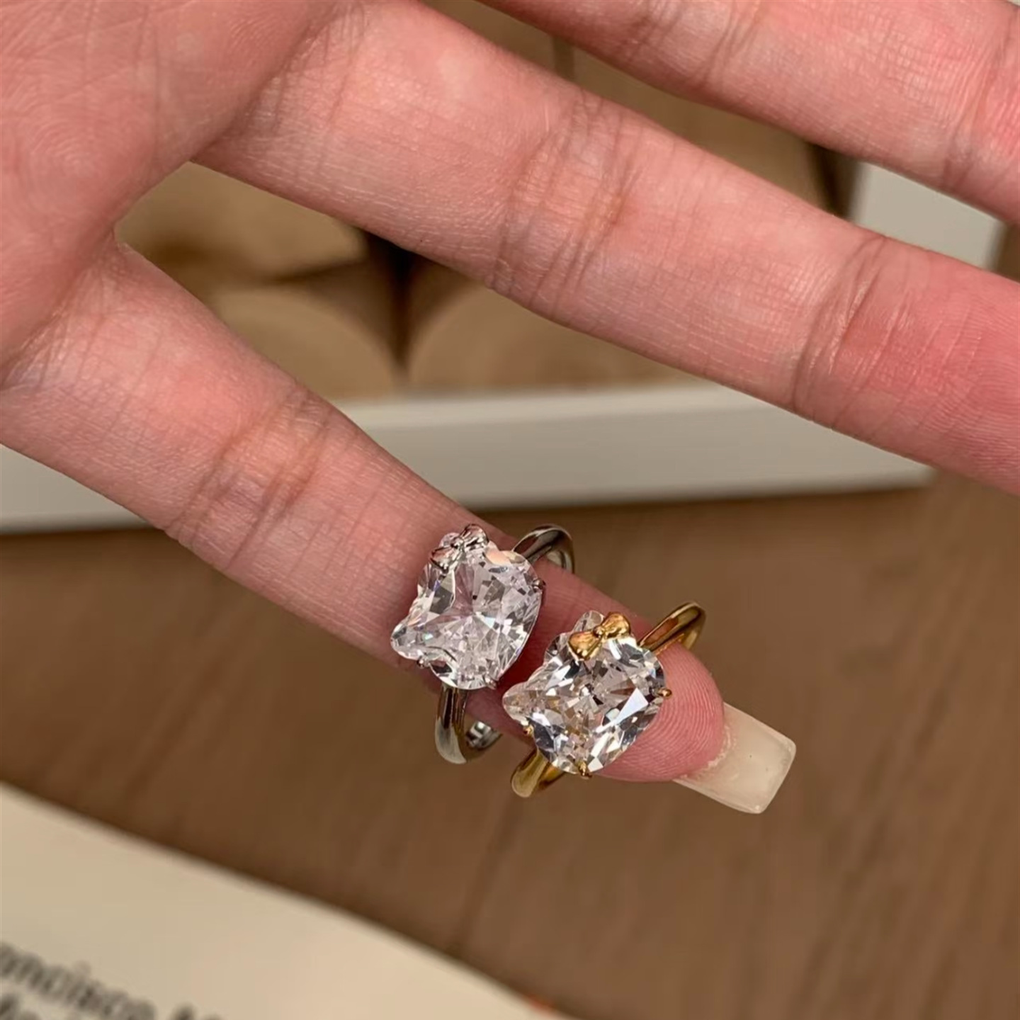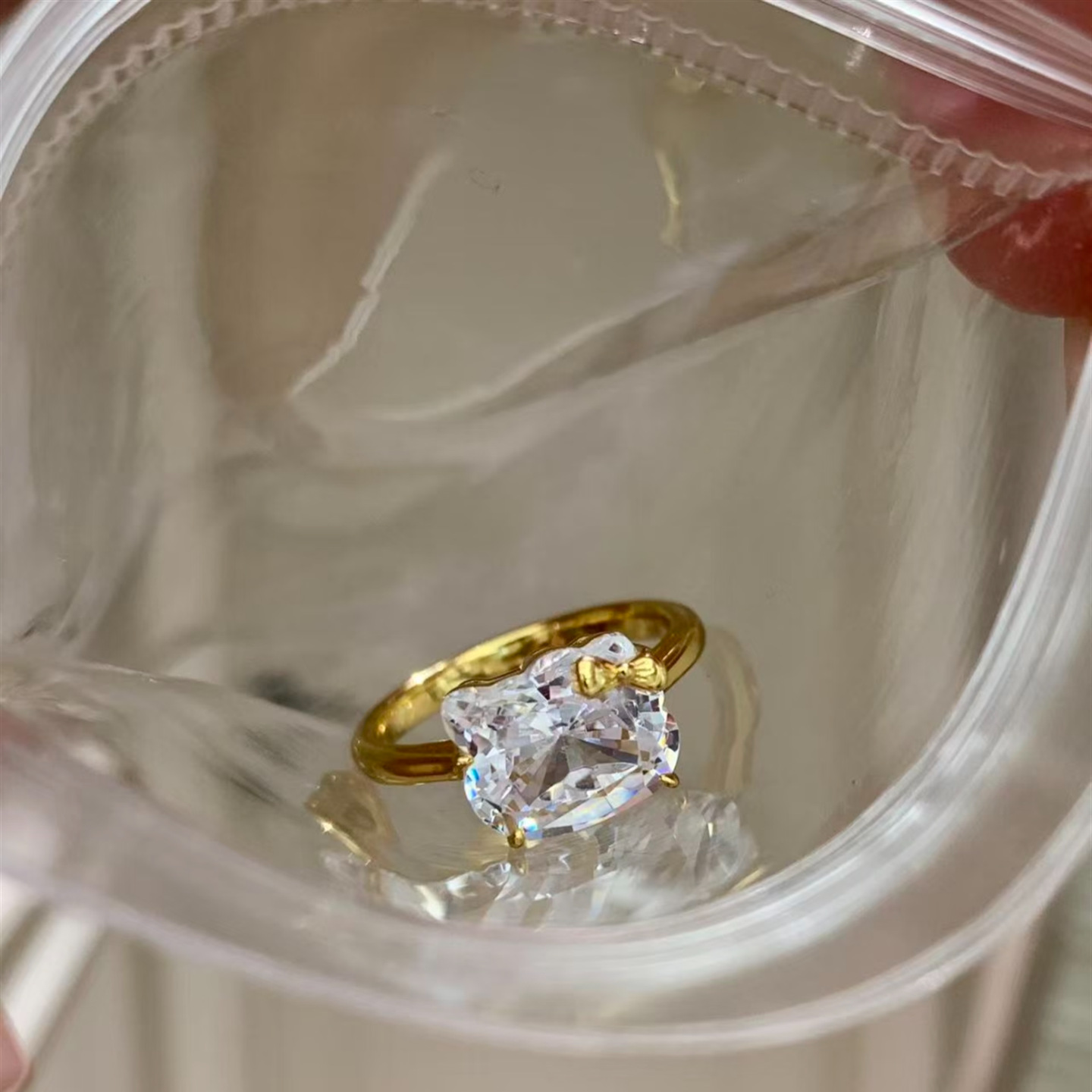 爆款Kitty猫造型精致锆石戒指女项链女爆闪小众开口可调节食指戒