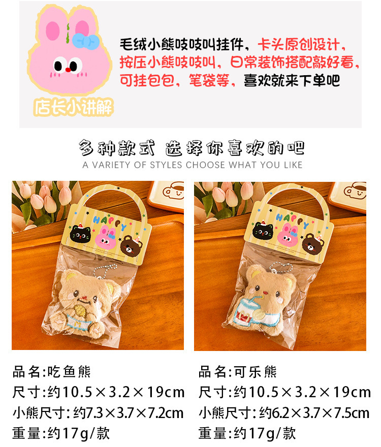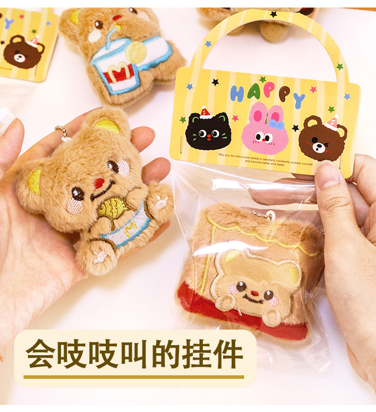 奶油小熊包包挂件配饰学生卡通毛绒公仔小挂件解压吱吱叫玩偶挂饰