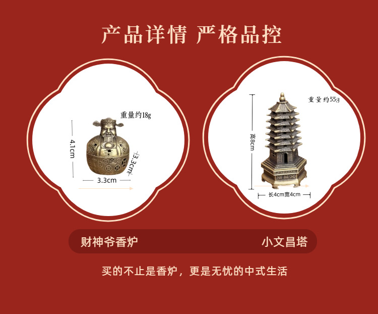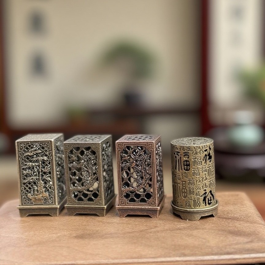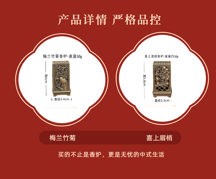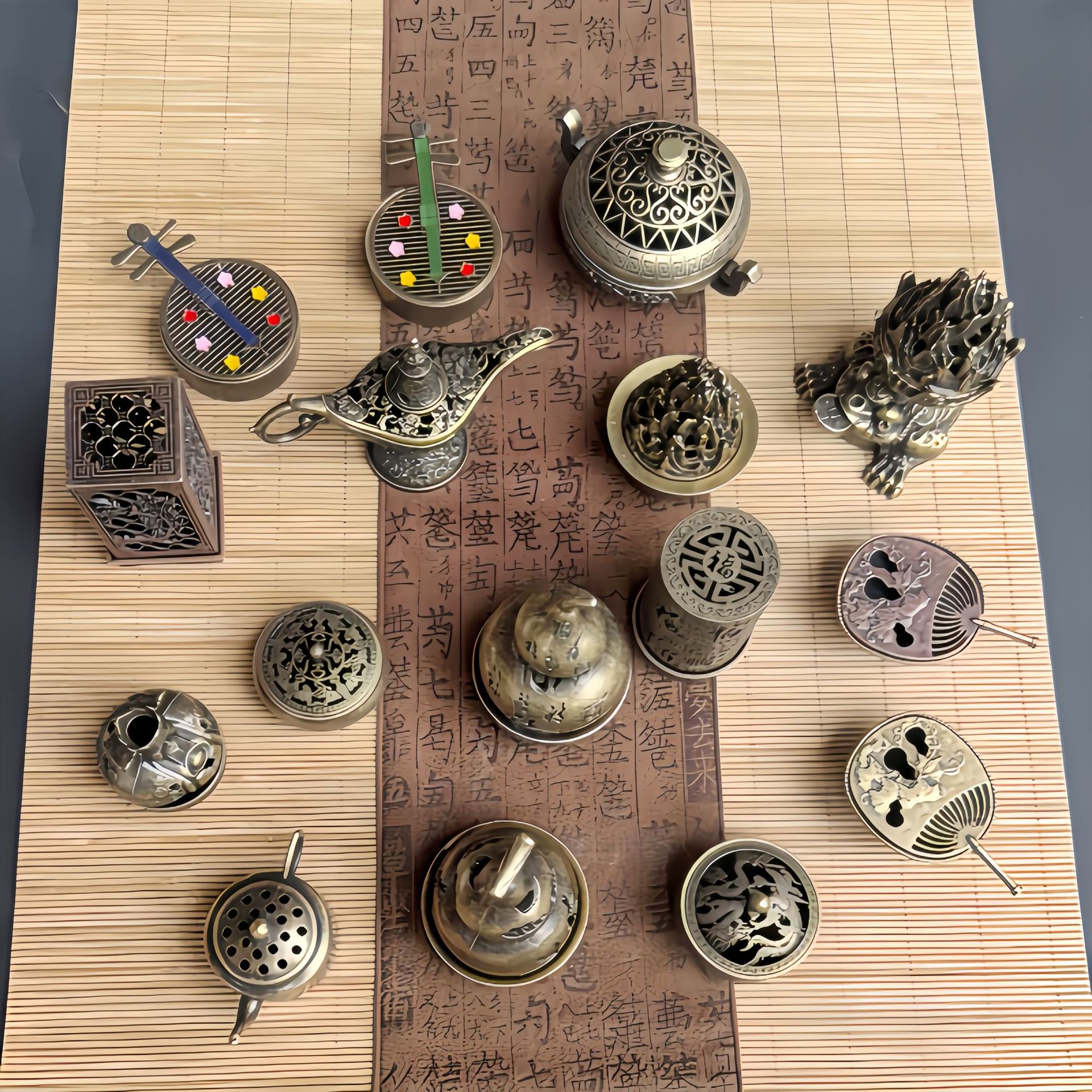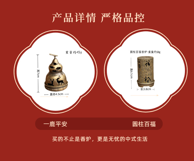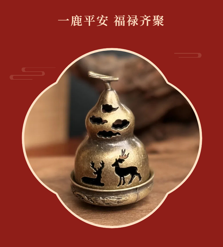 新中式铜合金葫芦扇龙凤炉琵琶盘香炉小祥云香薰片鹅梨账中香檀香