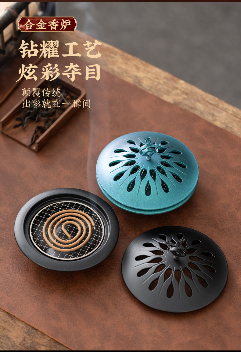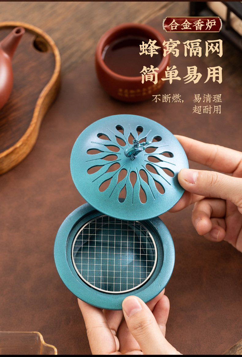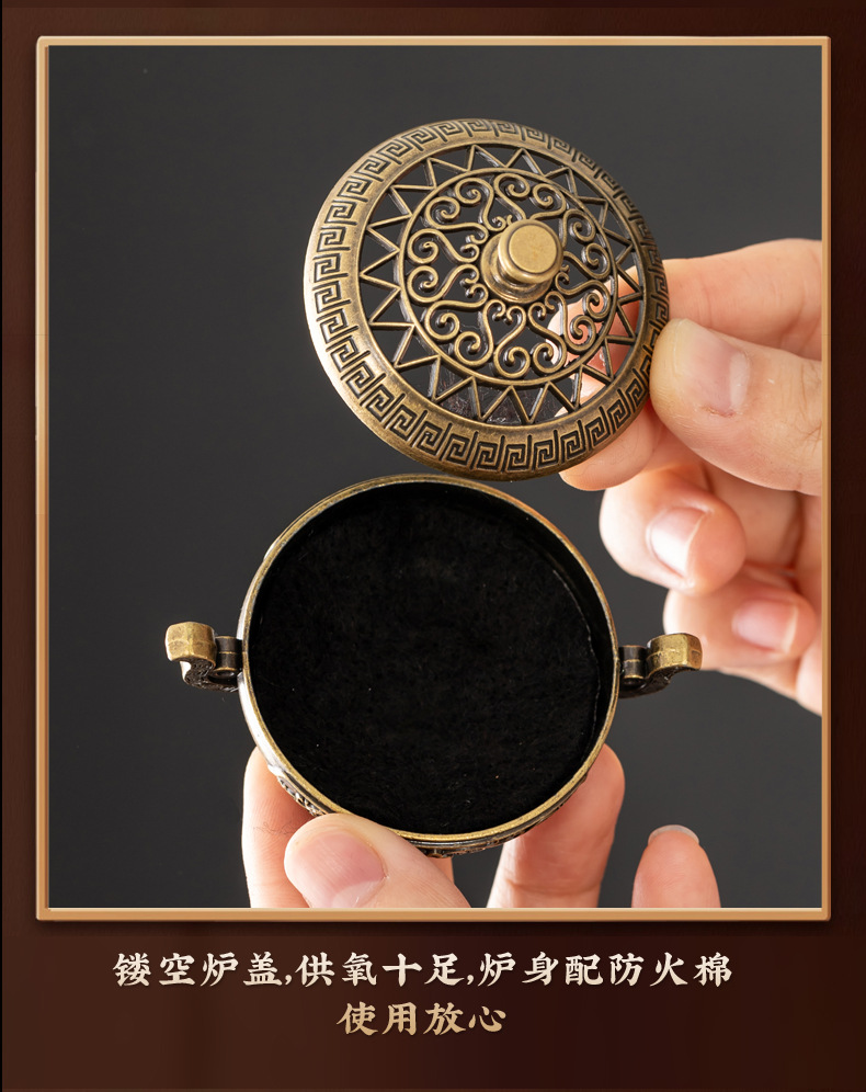 双耳仿古香炉精致花纹镂空三足炉家用室内宣德炉盘香炉桌面摆件