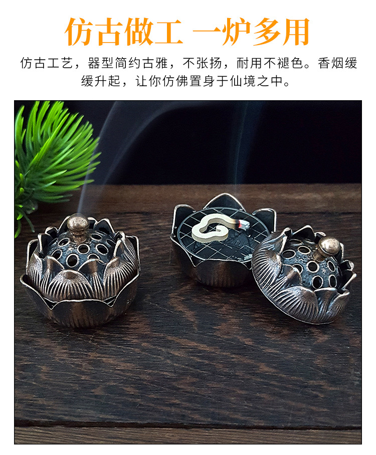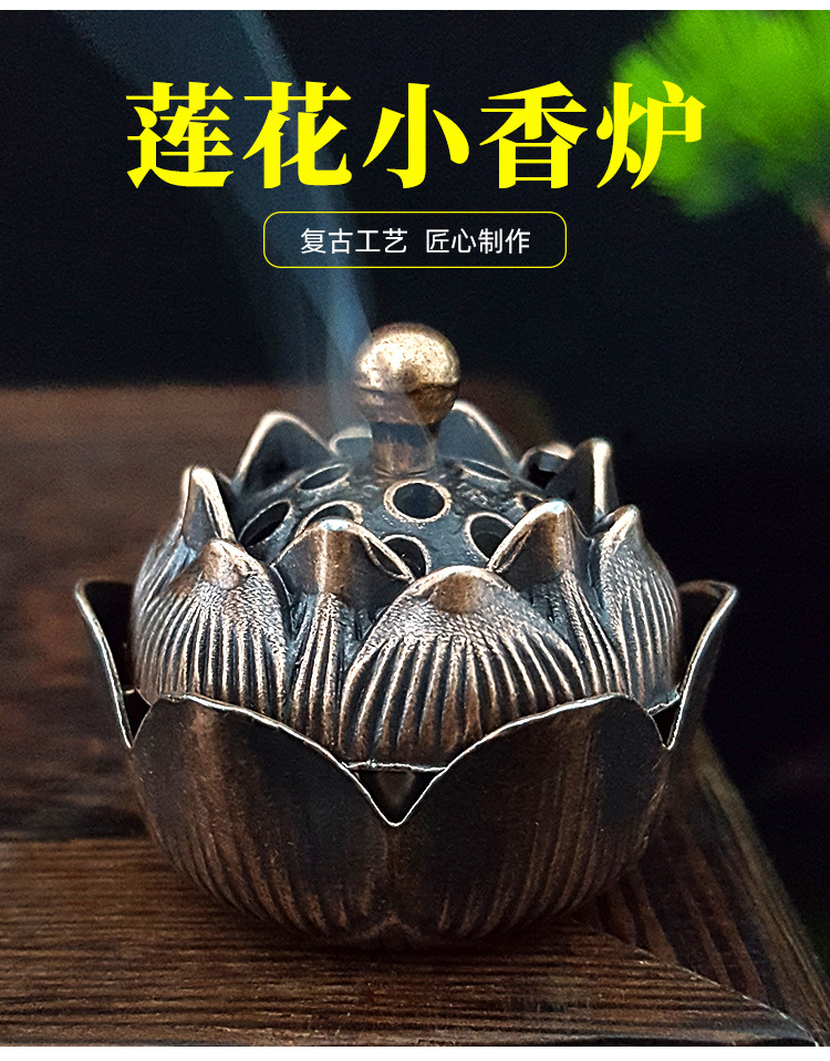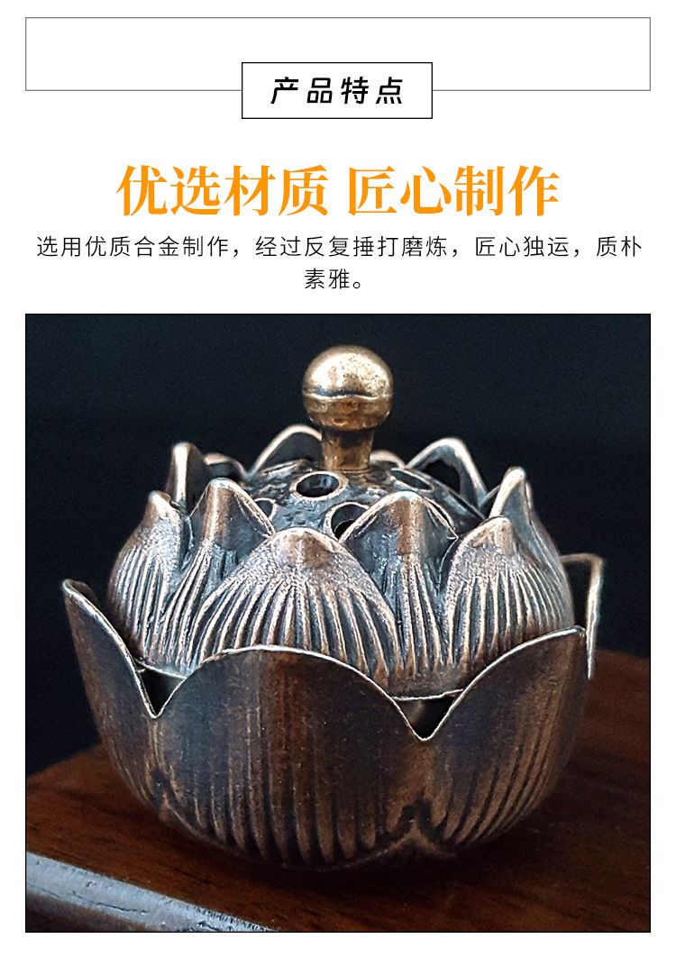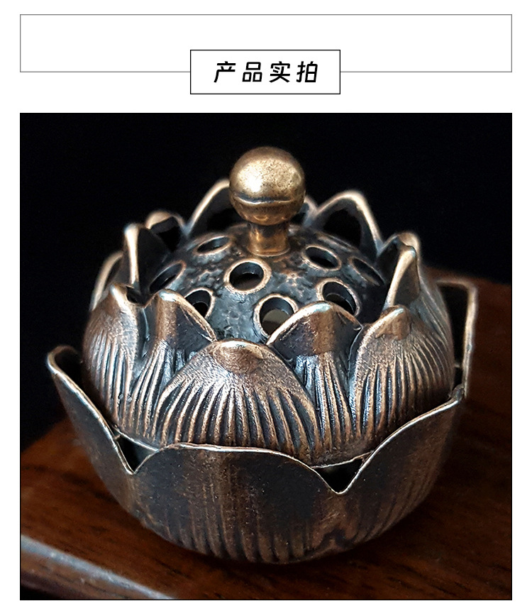 厂家批创意中式合小金莲花带网香炉禅意香插香炉香道复古家用摆件