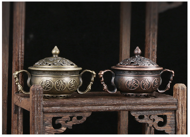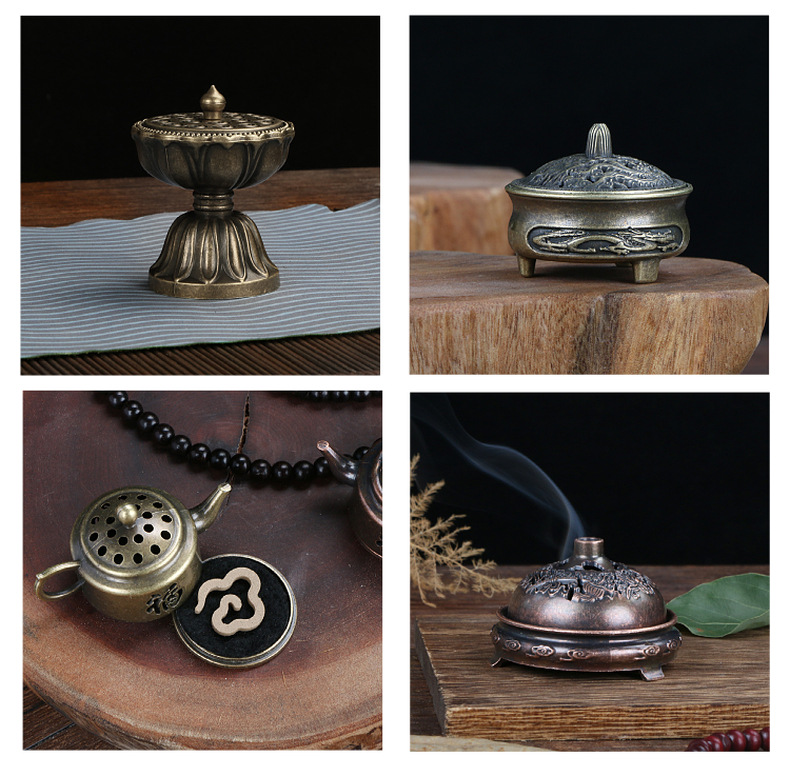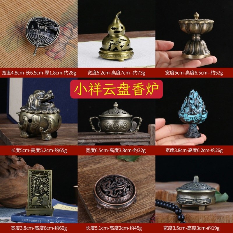 日式香炉摆件小祥云香薰炉博山仙鹤炉龙凤琵琶扇香炉托创意复古炉