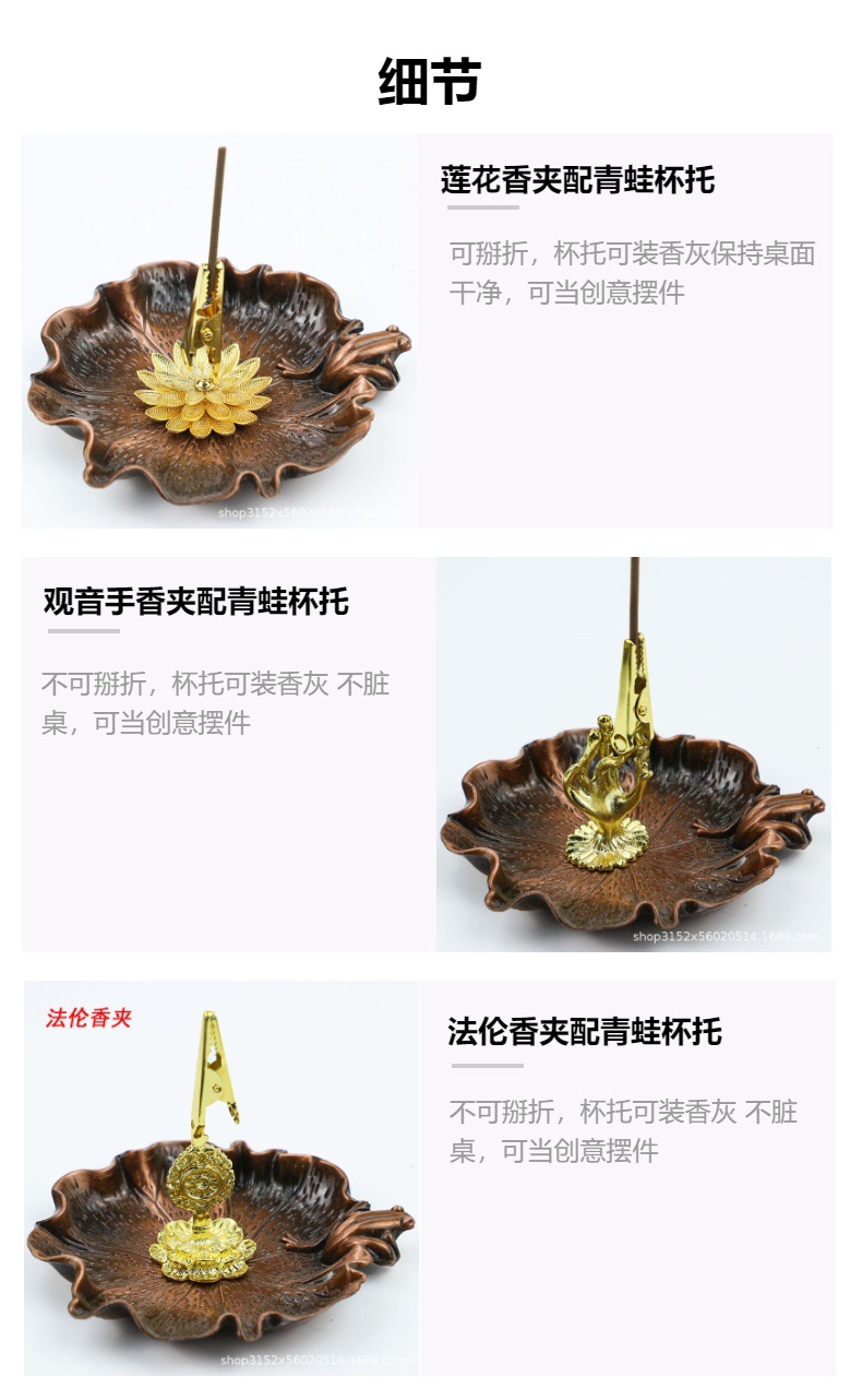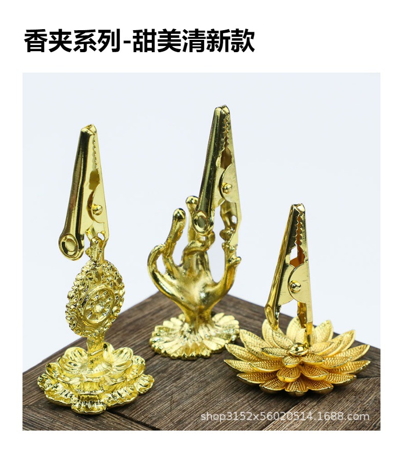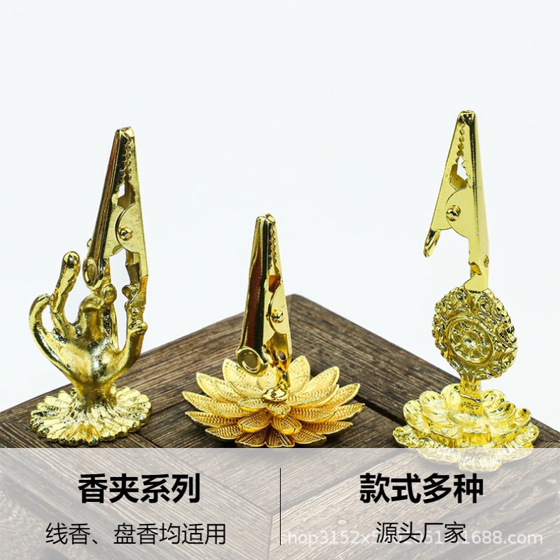 创意莲花佛手香夹线香檀香家用香具香插香炉沉香金属配件厂家批发