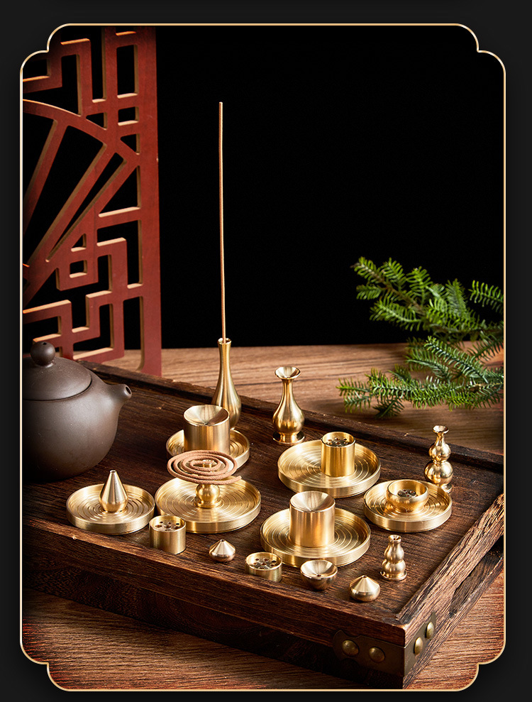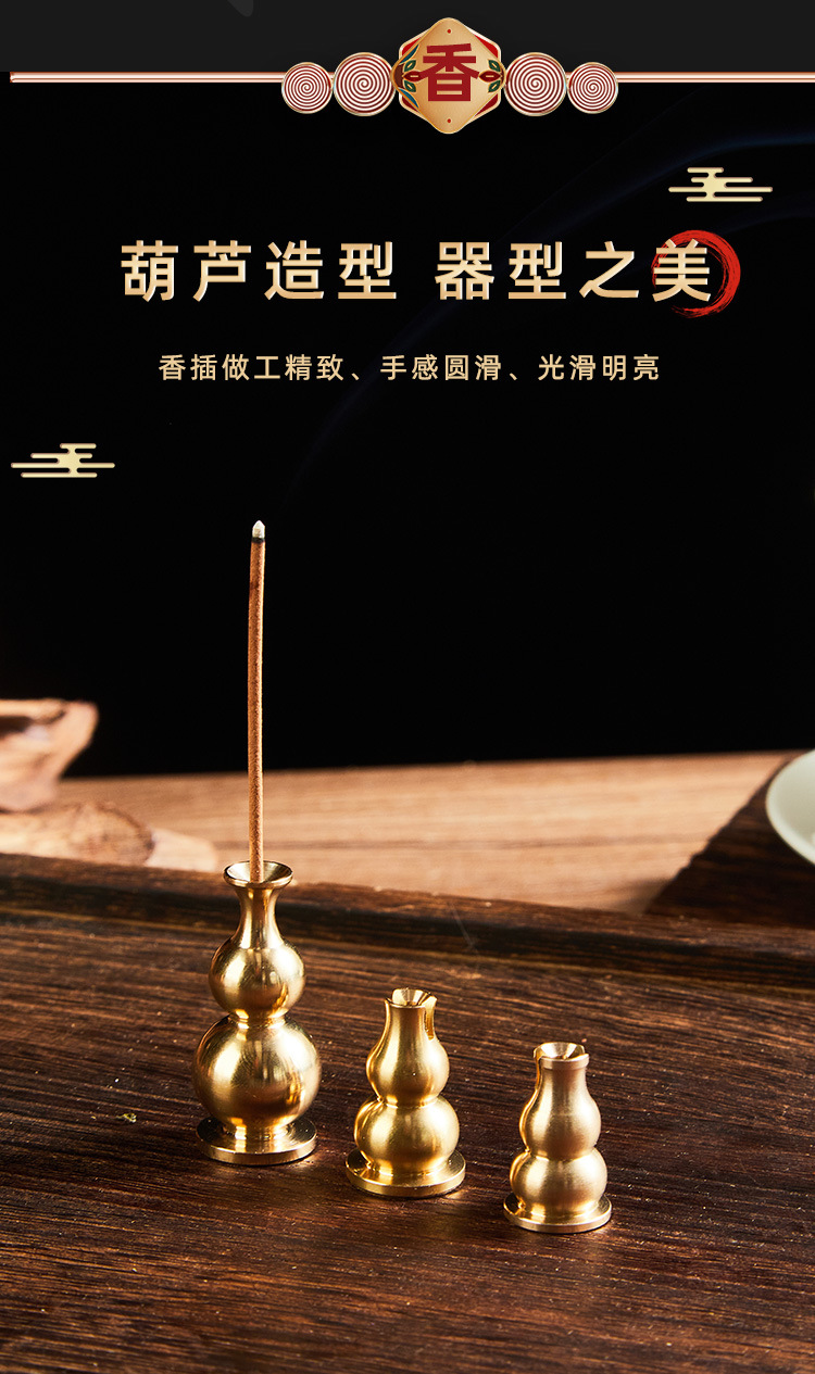 黄铜香插盘香架小葫芦香插九孔线香小水滴香座坐支架香炉香托香插