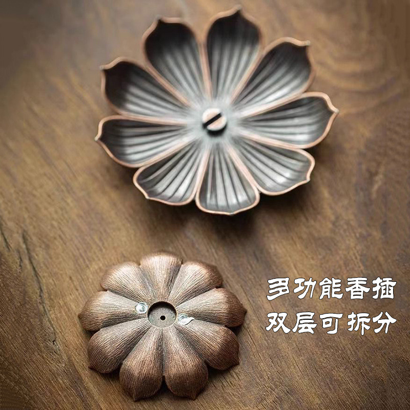 仿古莲花多孔香插香盘线香插香座香托创意禅意檀沉香香薰炉摆件