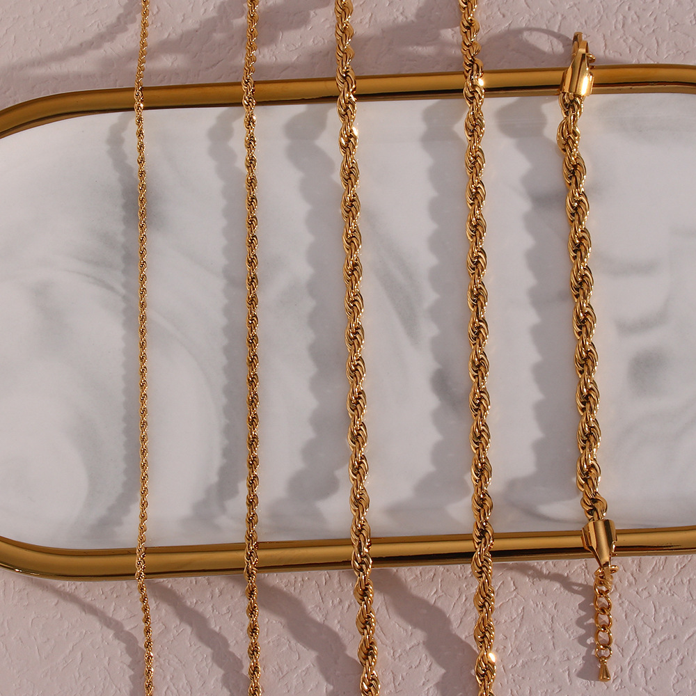 欧美ins时尚简约百搭钛钢麻花链条项链不锈钢镀18K金色链条饰品女