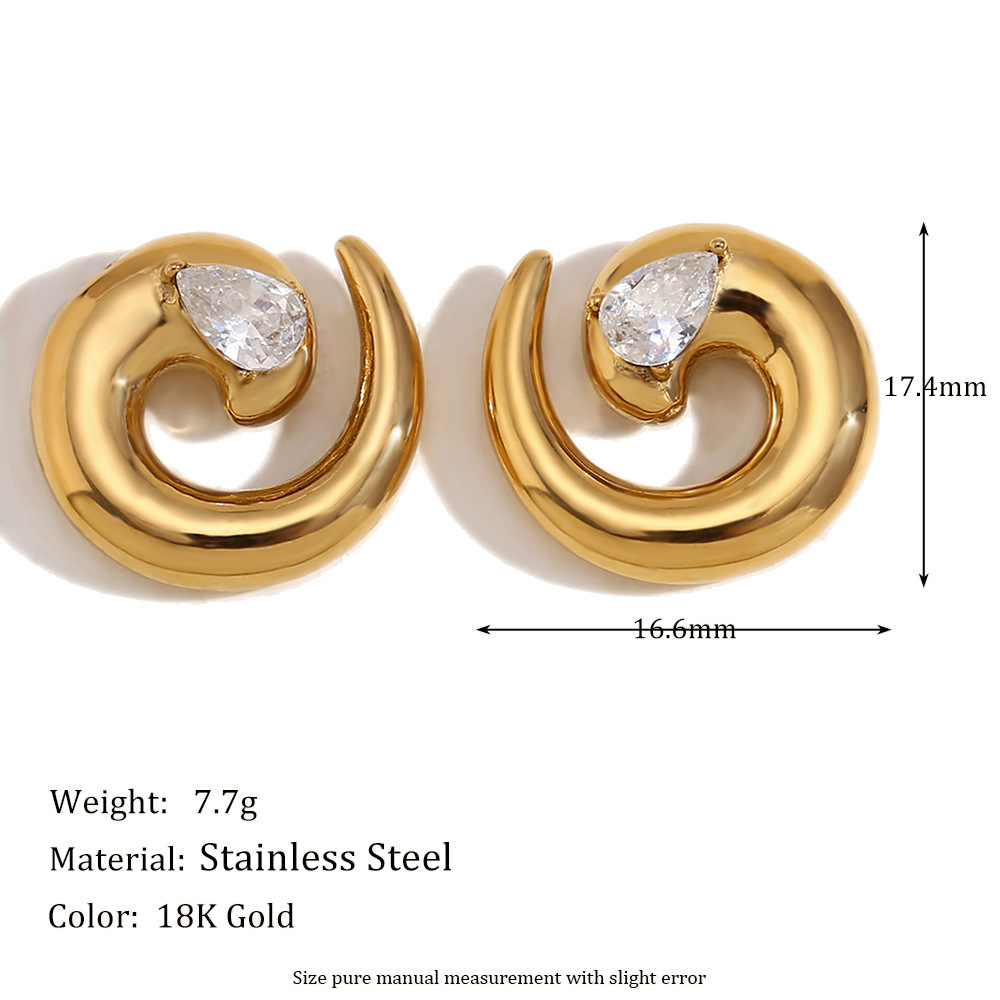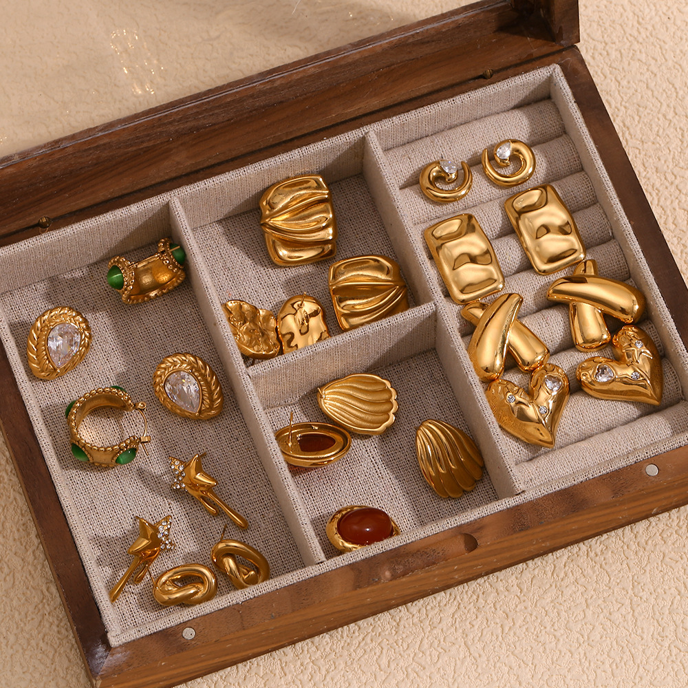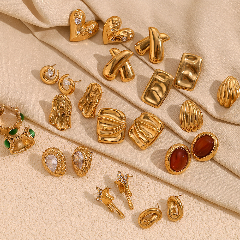 欧美ins气质复古小众高级法式耳环不锈钢镀18K金几何不规则耳钉女