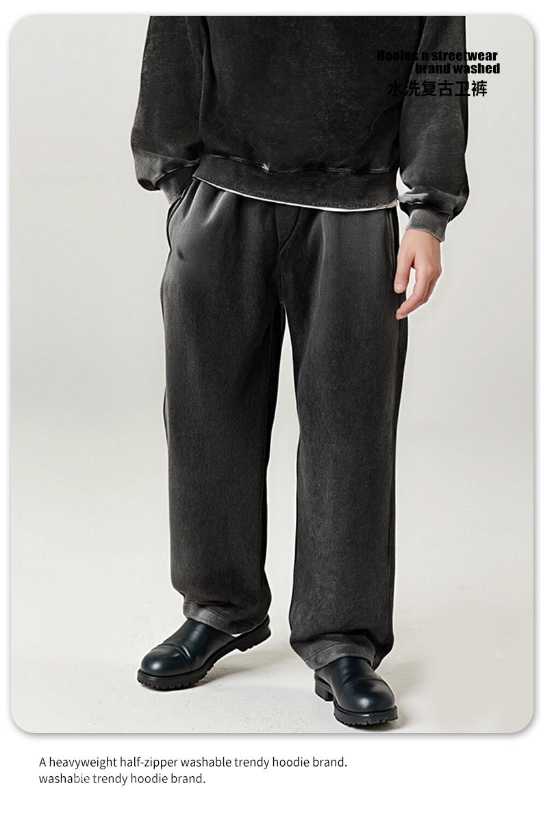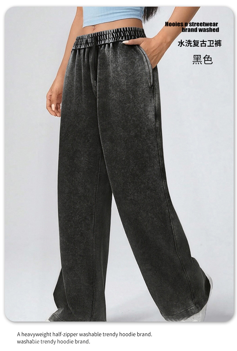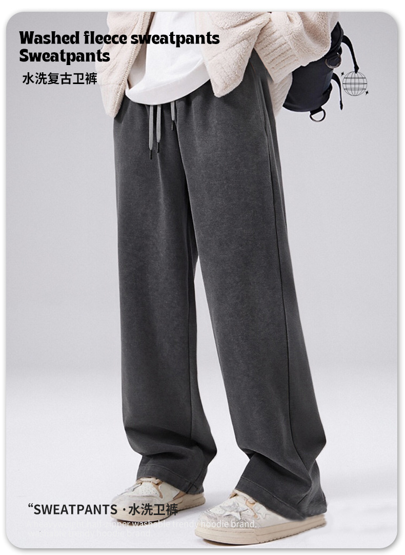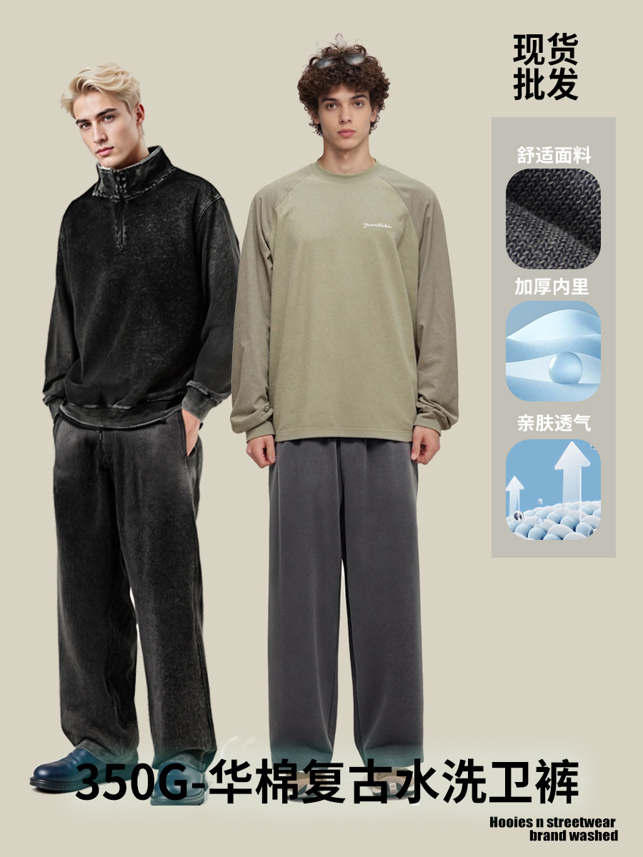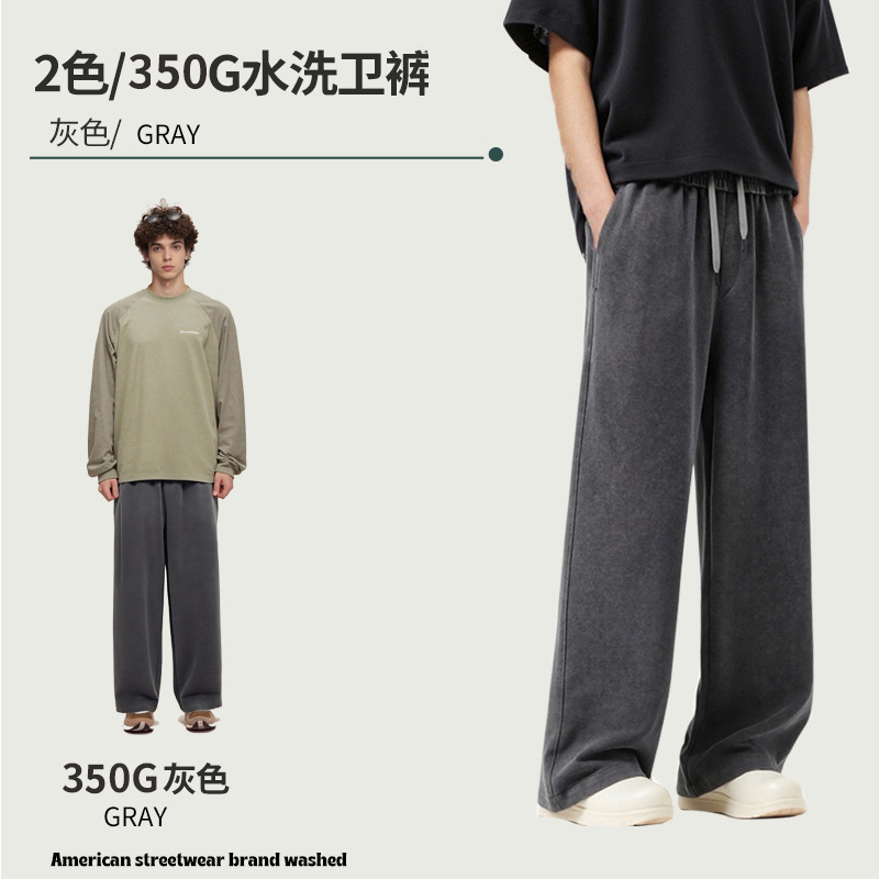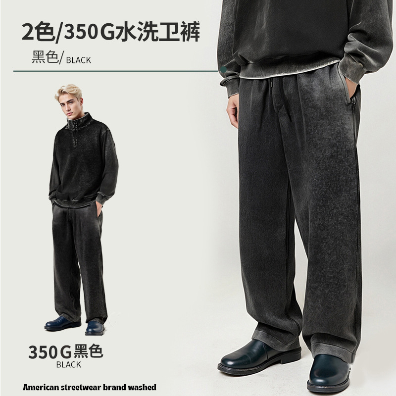跨境爆款秋冬潮牌350G水洗华棉直筒阔腿卫裤男女复古休闲运动长裤