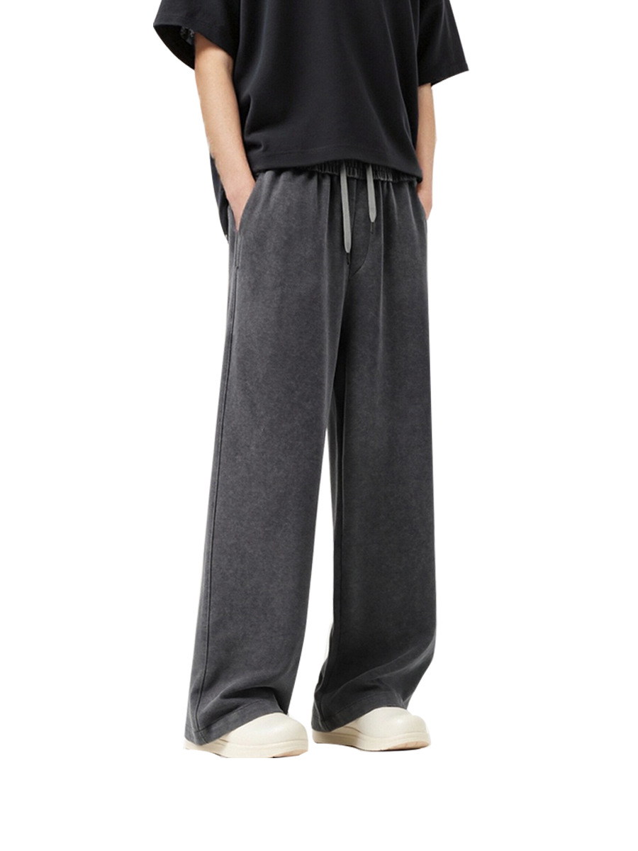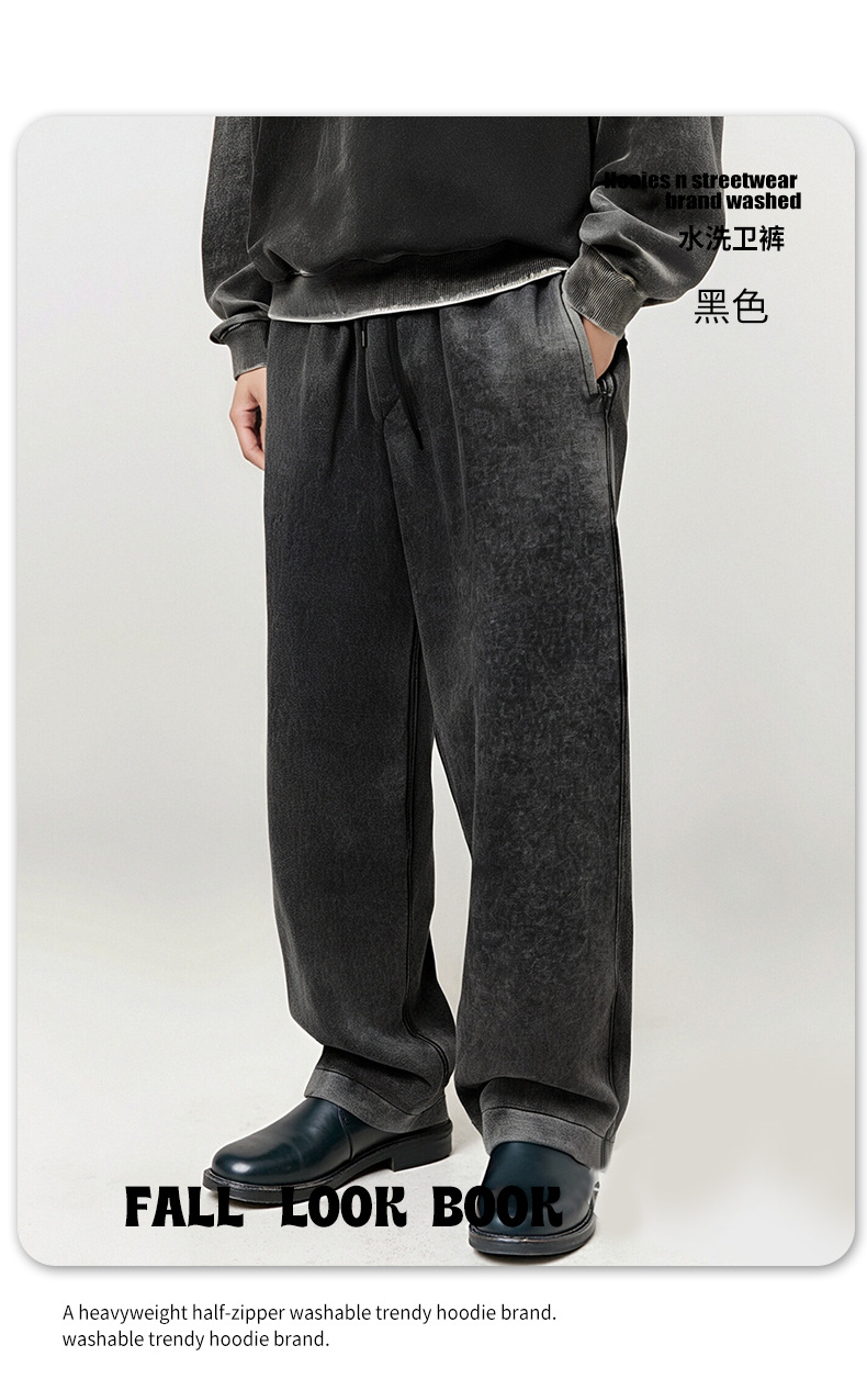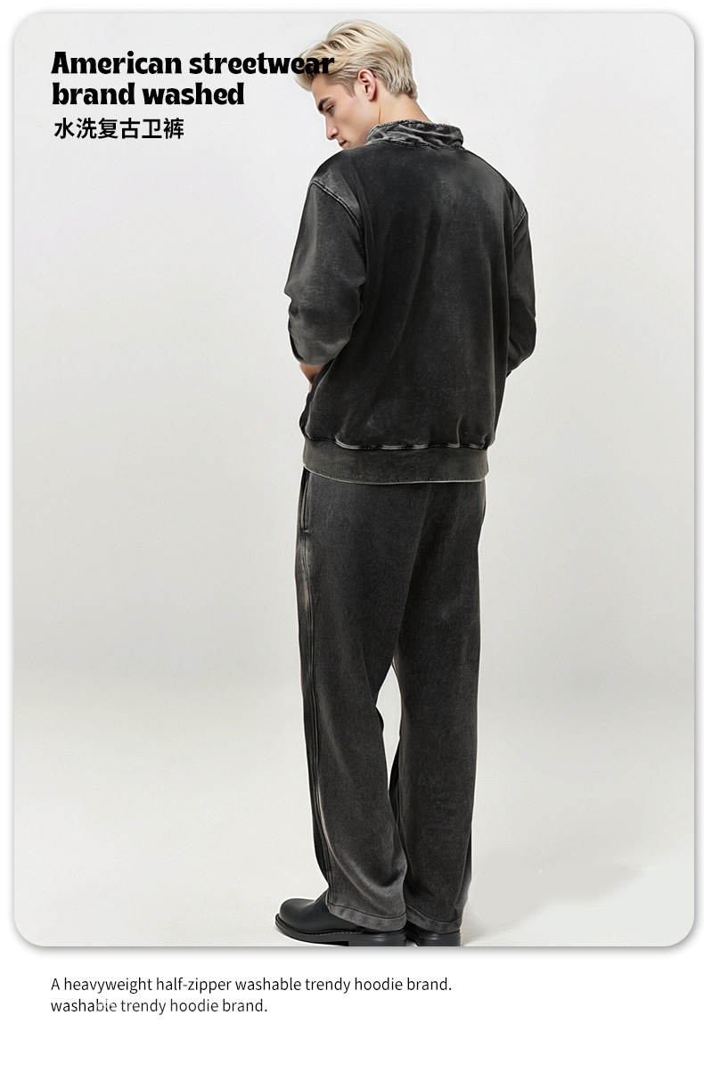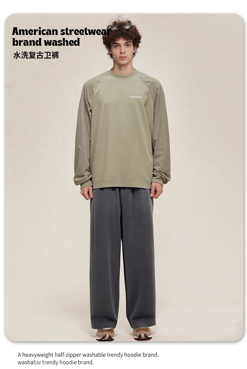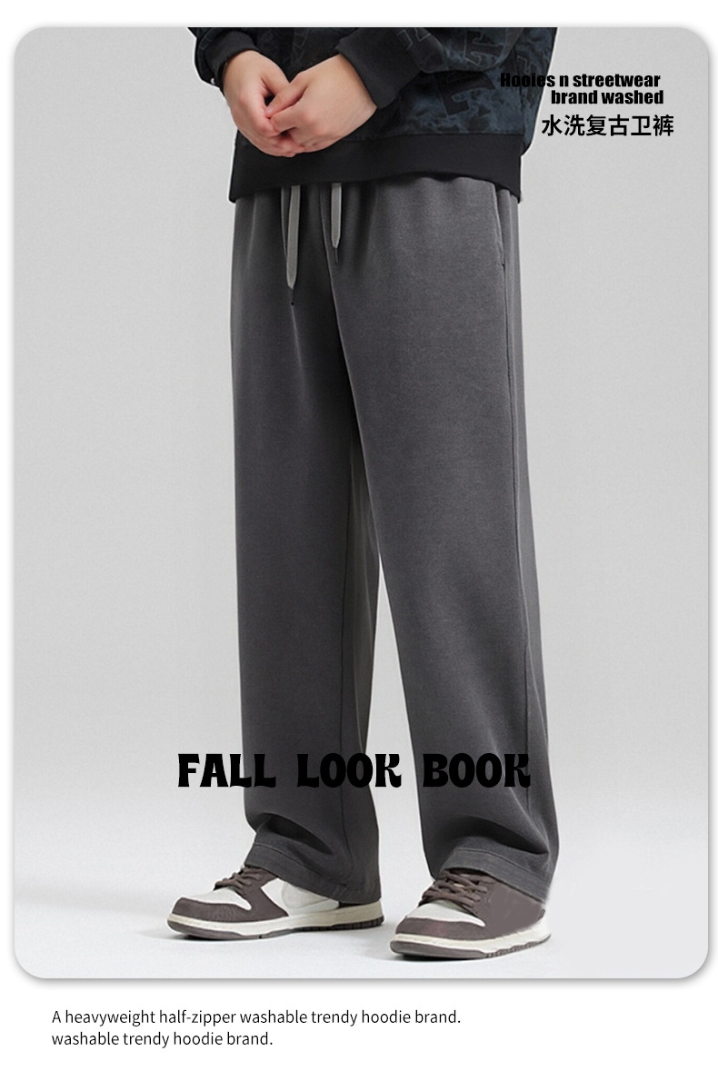 跨境爆款秋冬潮牌350G水洗华棉直筒阔腿卫裤男女复古休闲运动长裤