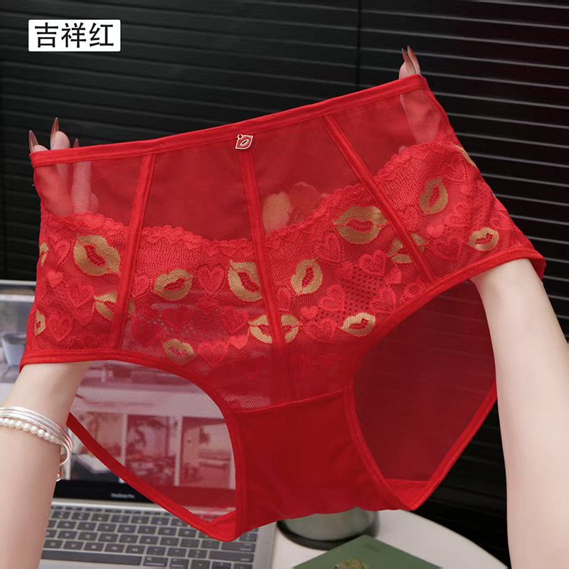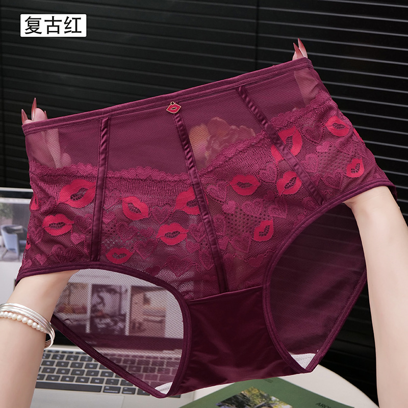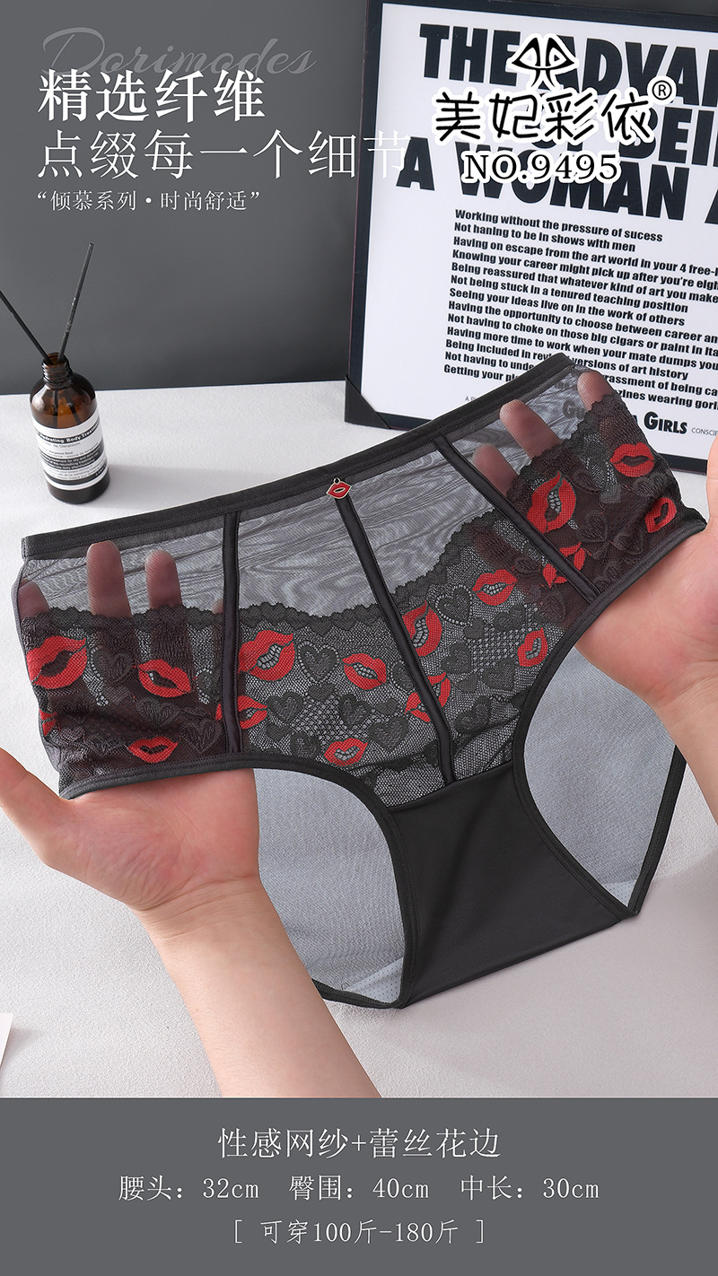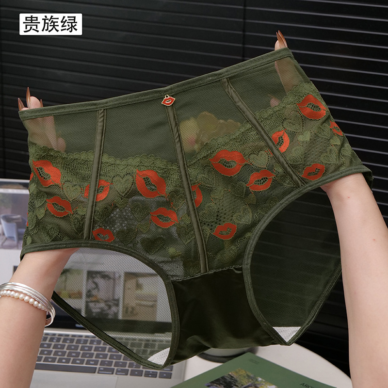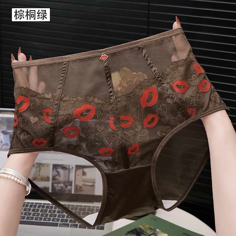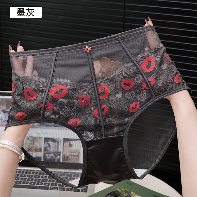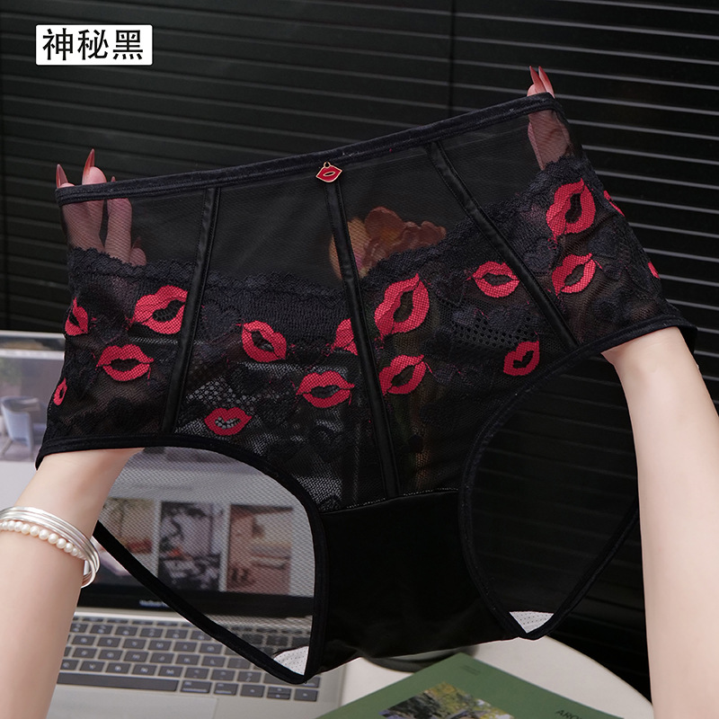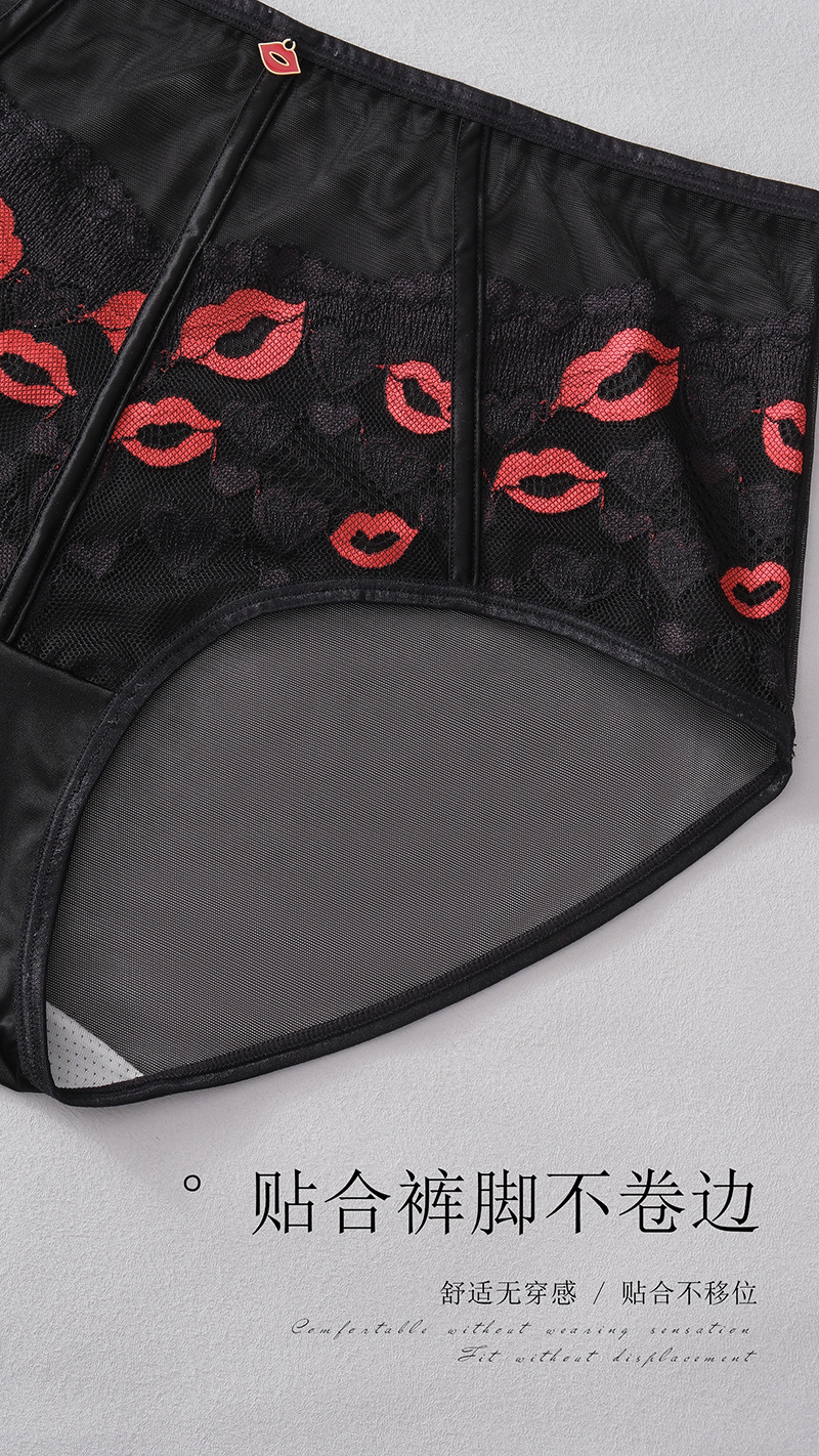 蕾丝内裤性感大码网纱女士内裤高弹包臀唇印无痕蕾丝内裤女