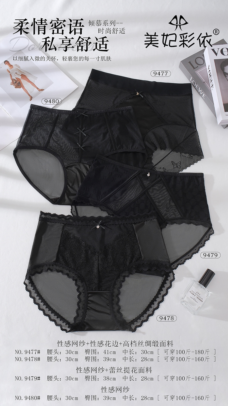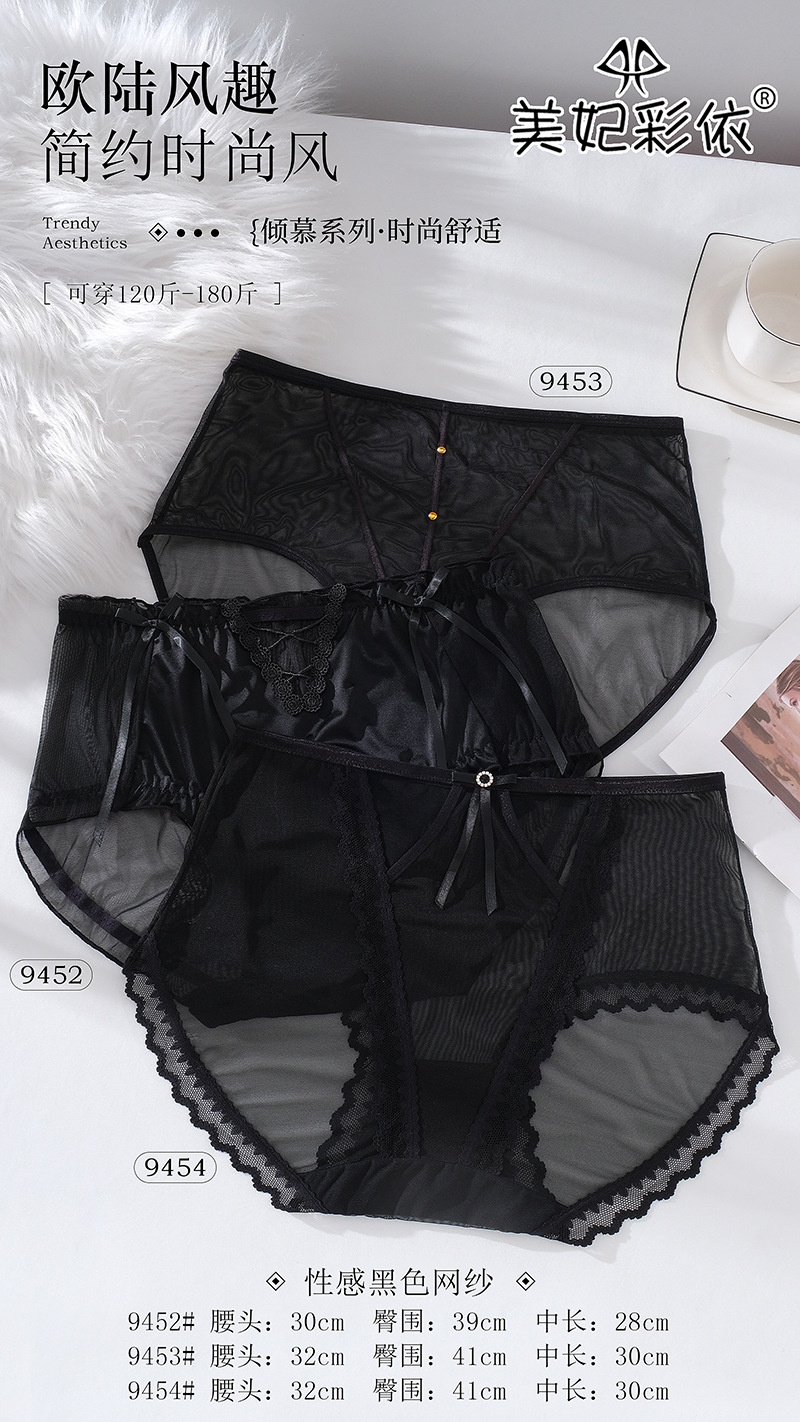 大码网纱内裤女底裆透气中腰高无痕包臀性感女士内裤