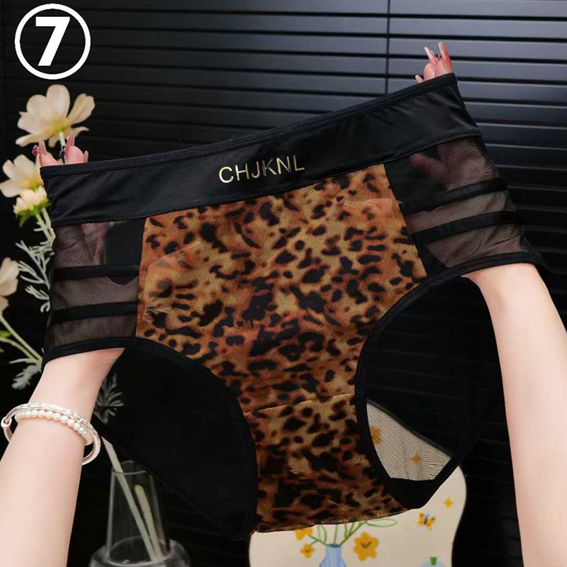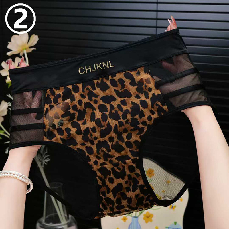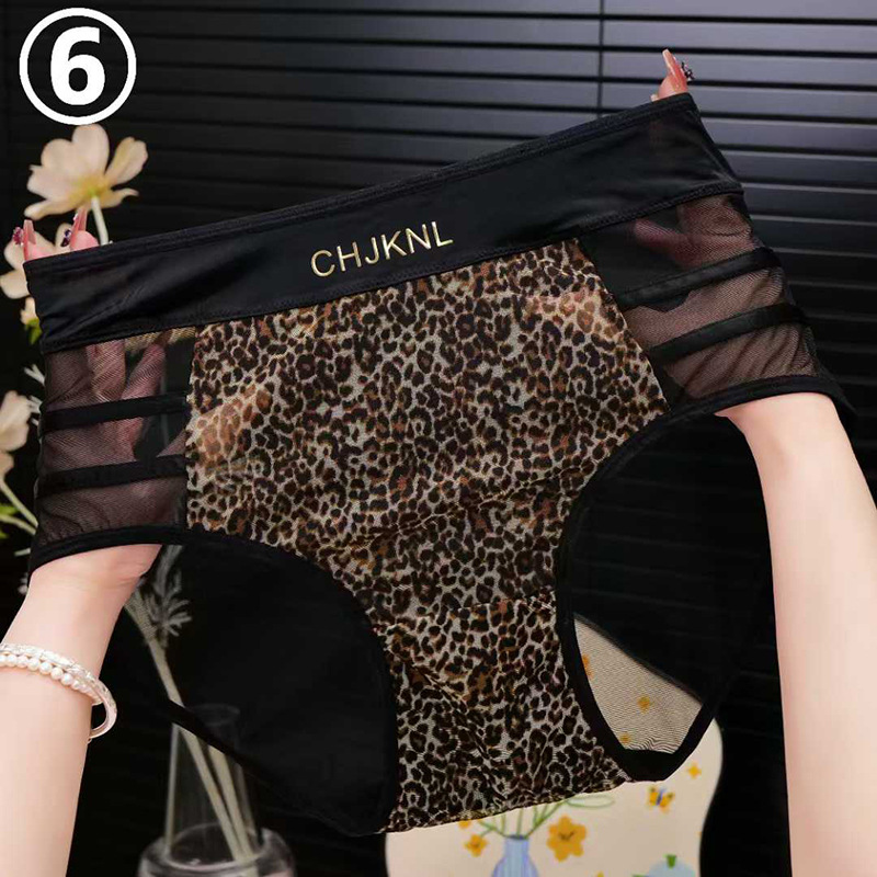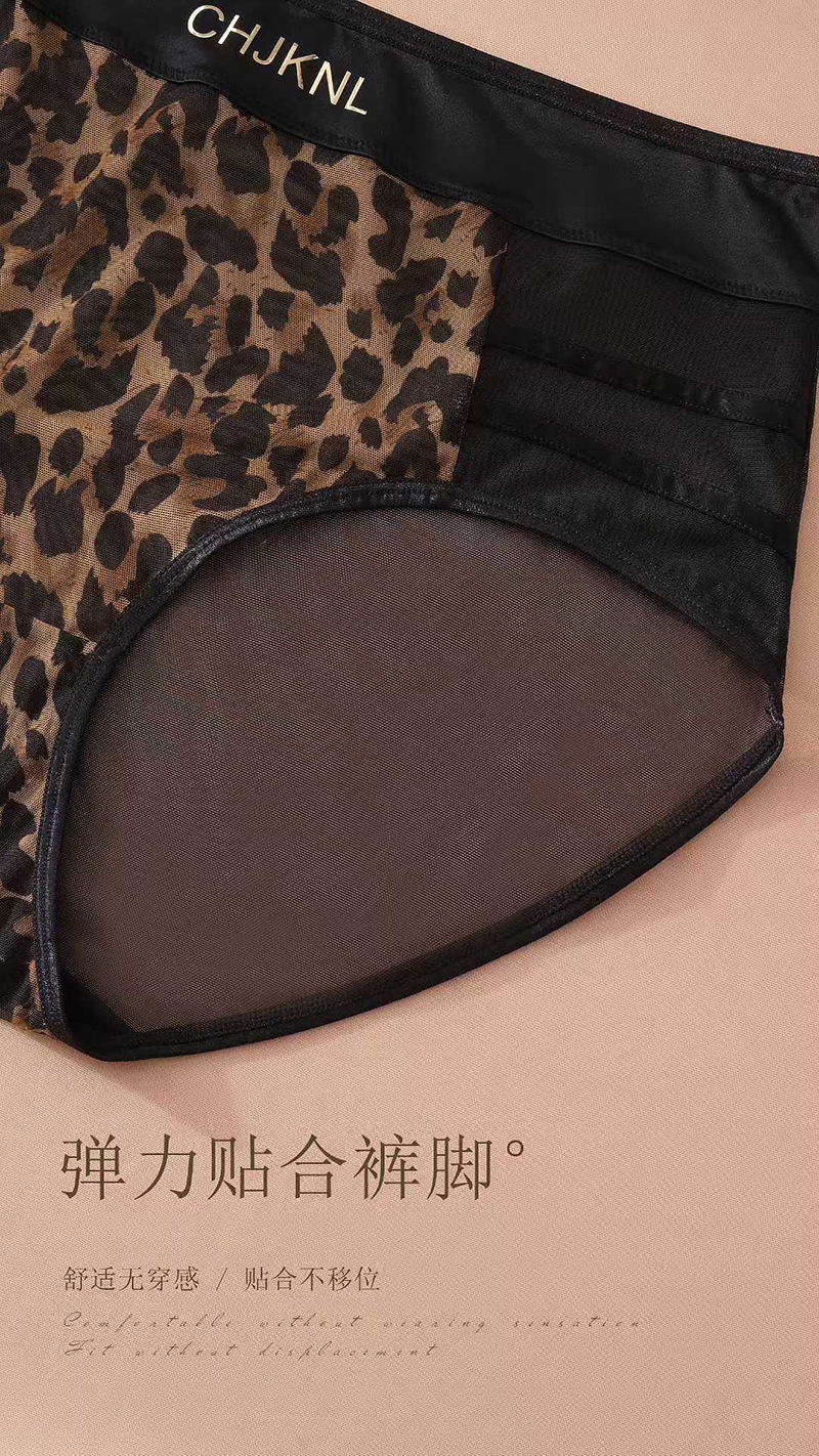 豹纹网纱高腰内裤女丝滑性感蕾丝透明火辣三角裤头蝴蝶结女生内裤