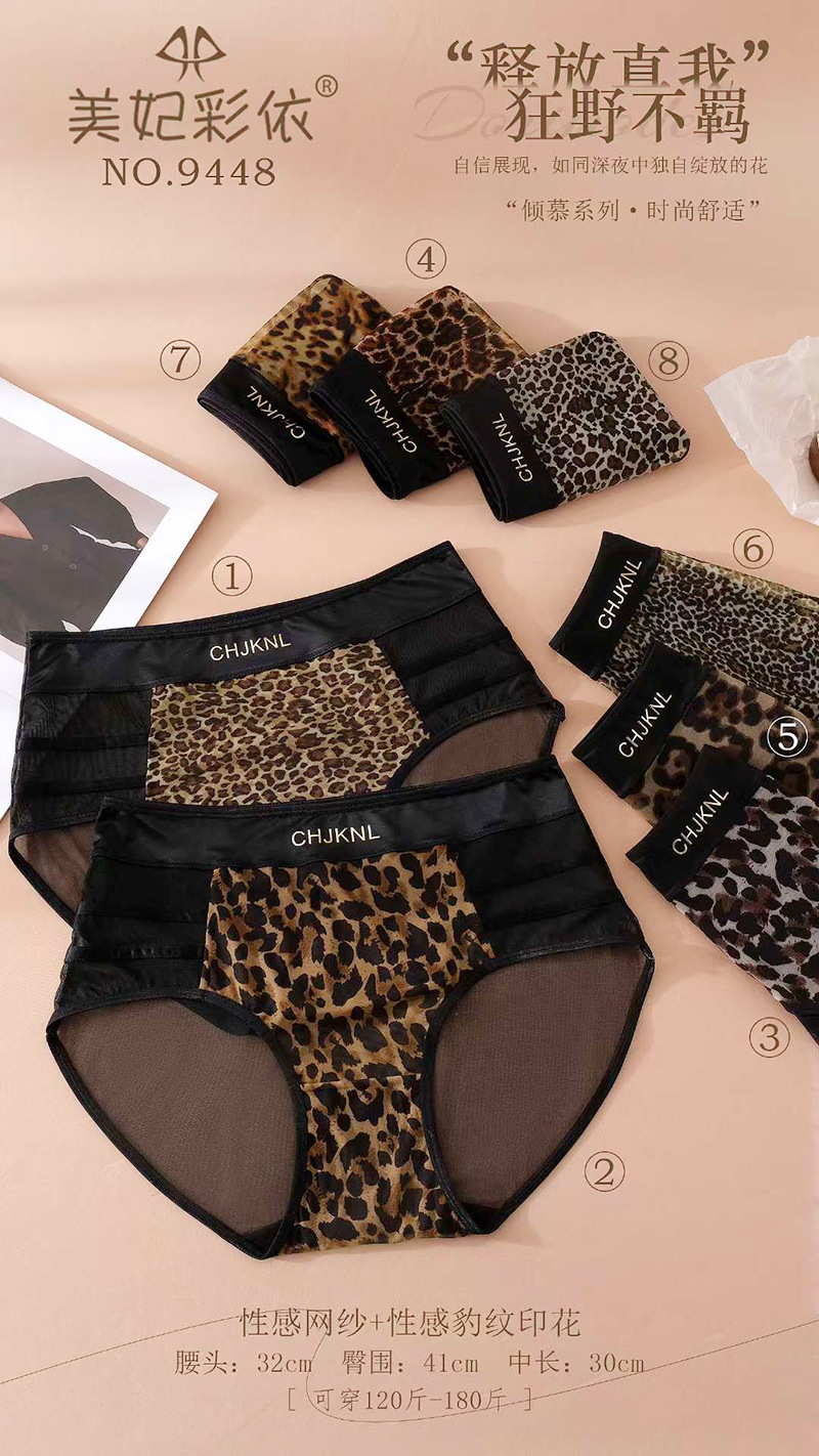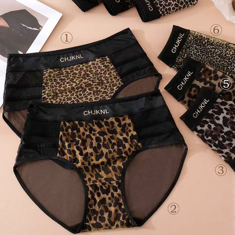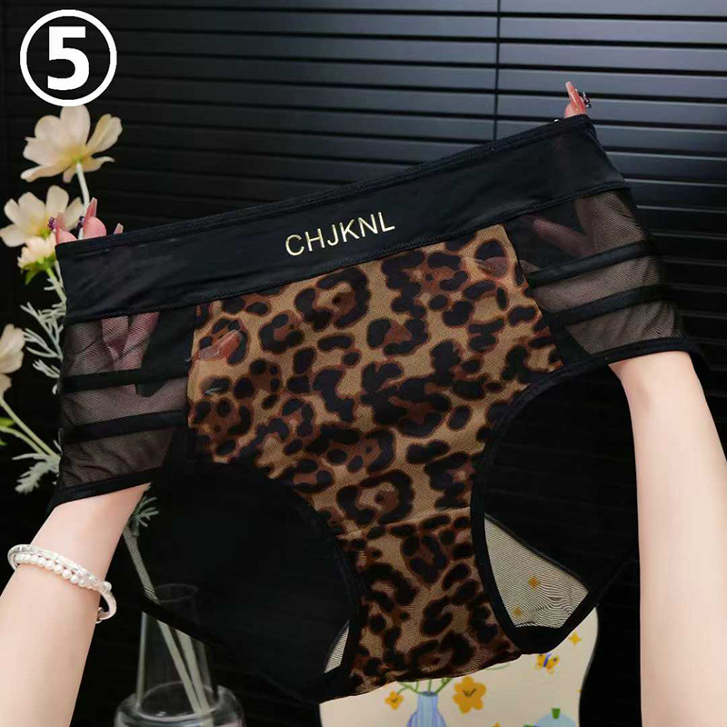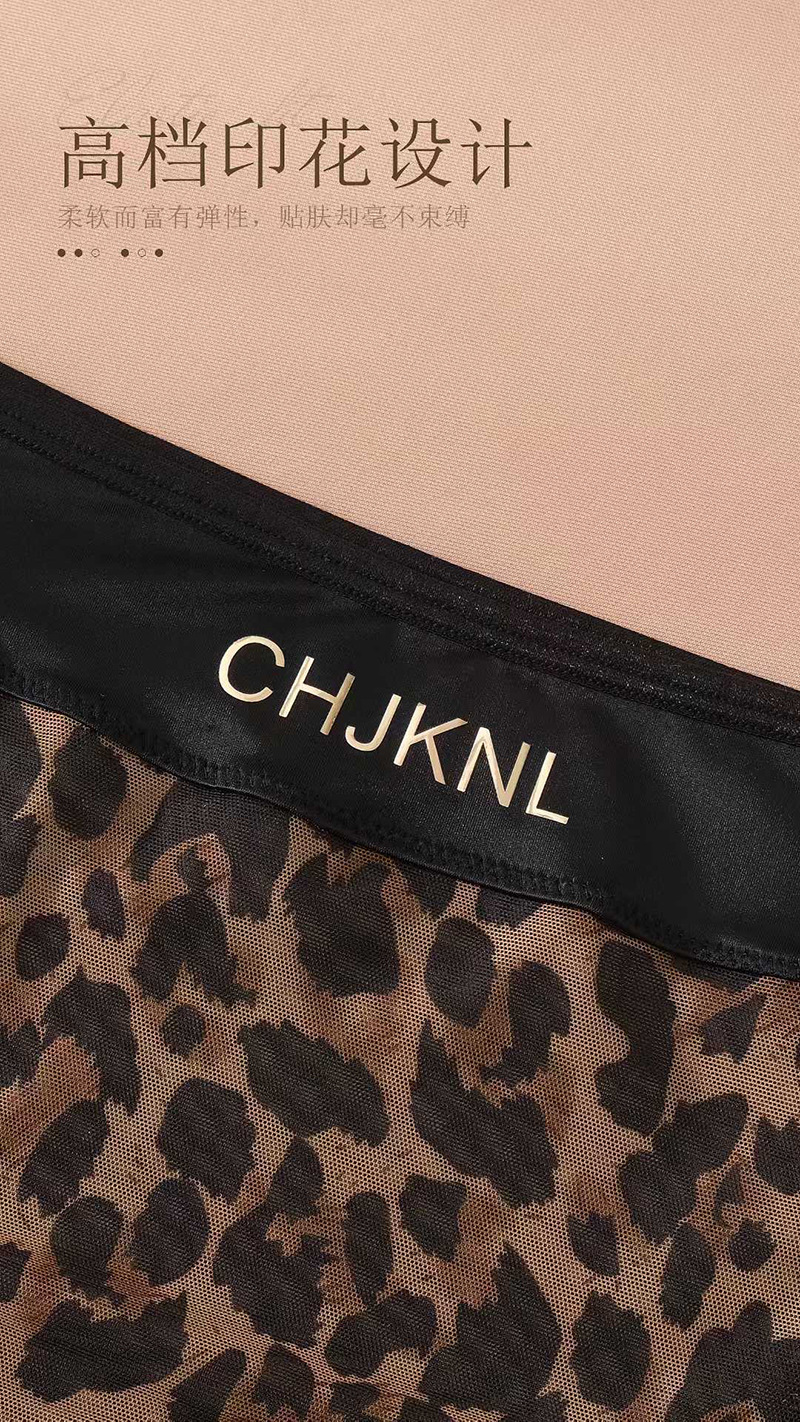 豹纹网纱高腰内裤女丝滑性感蕾丝透明火辣三角裤头蝴蝶结女生内裤