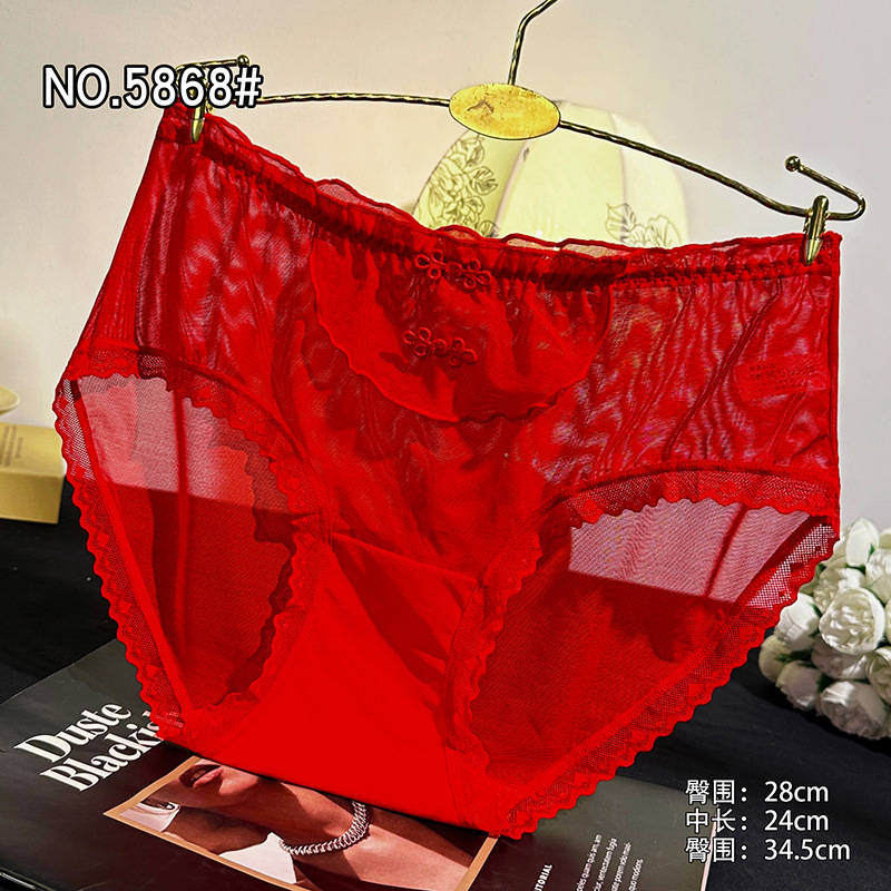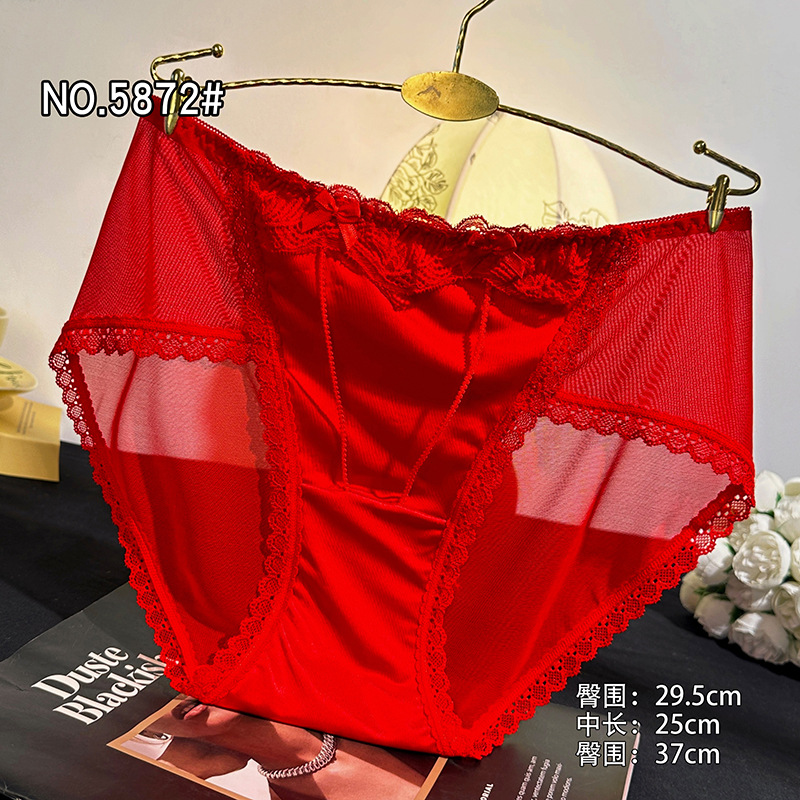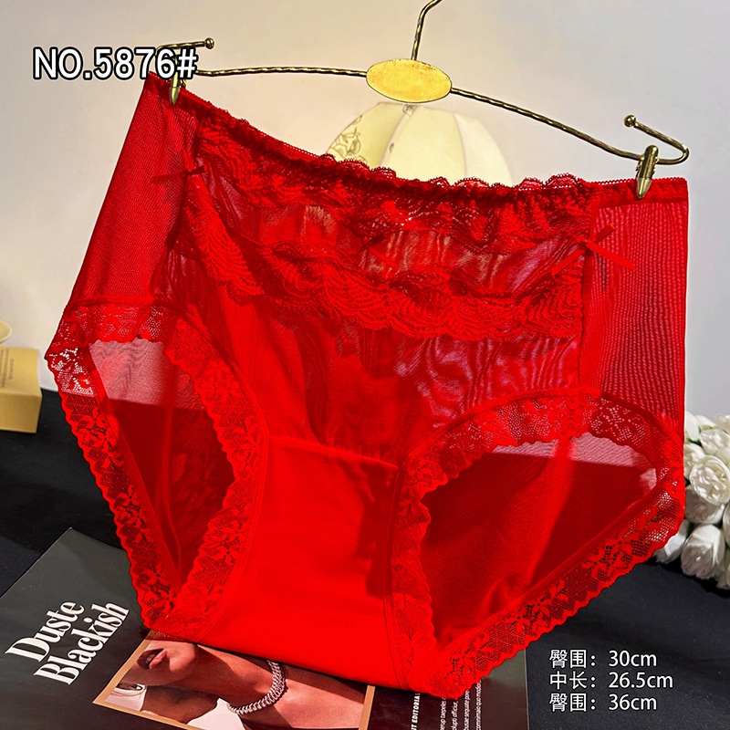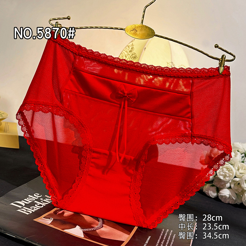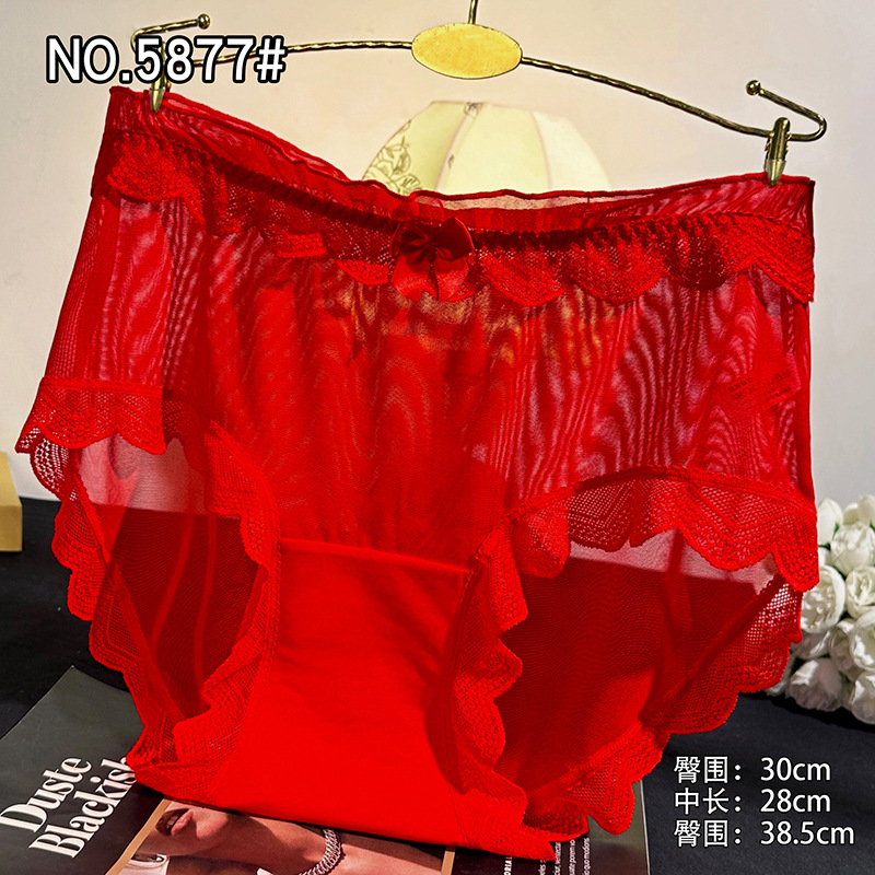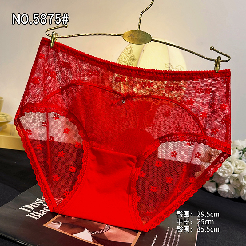 大红蕾丝女士内裤性感黑色无痕中腰纯棉裆透气本命年红色内裤女