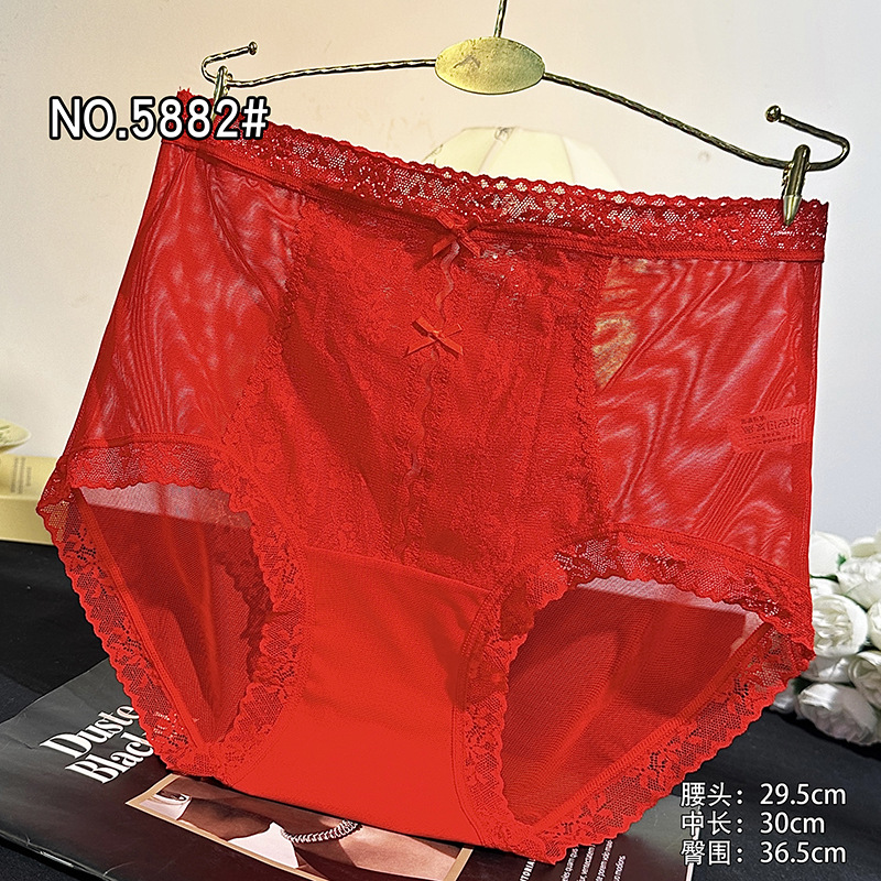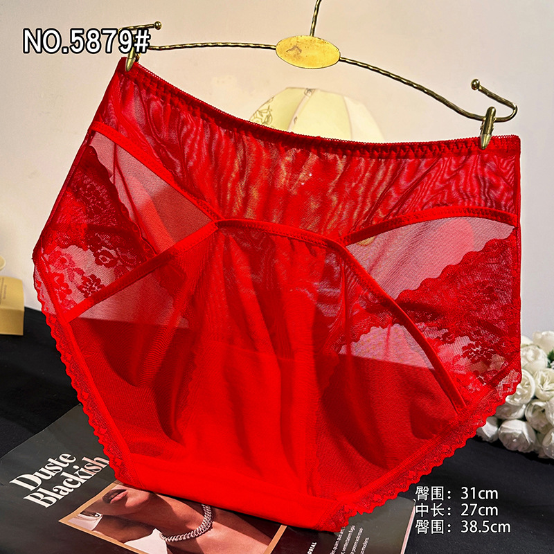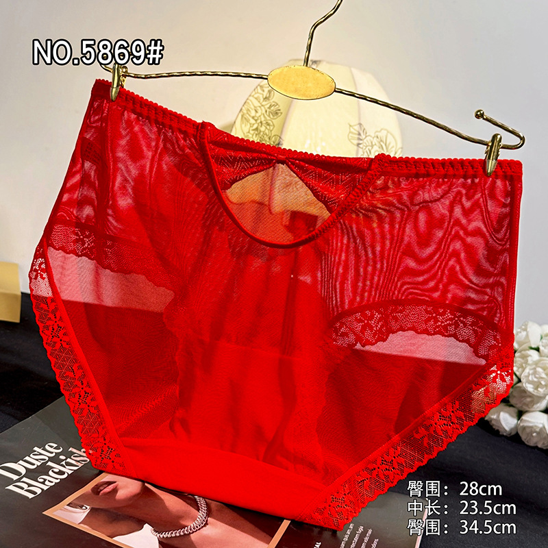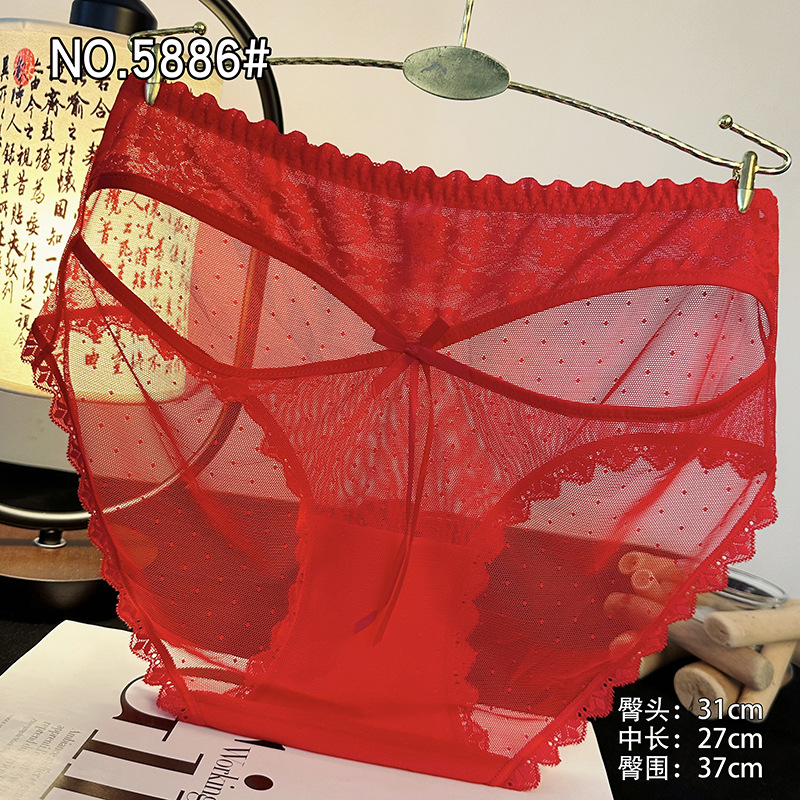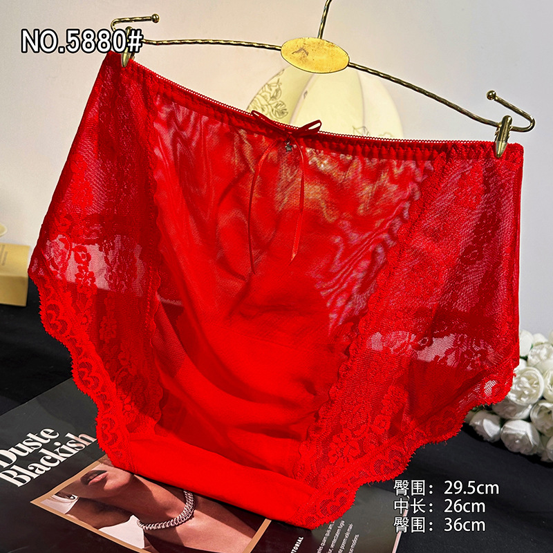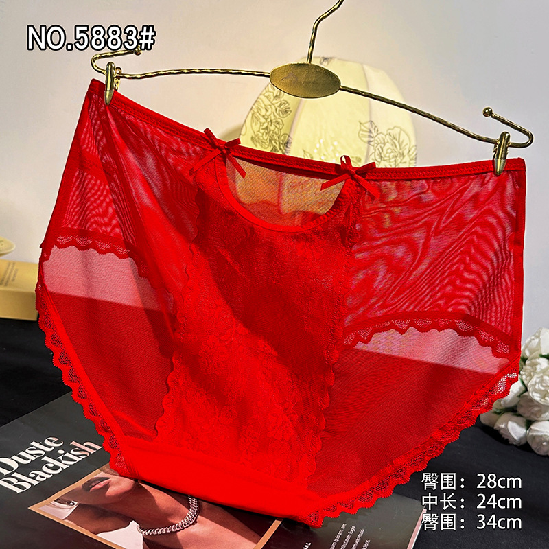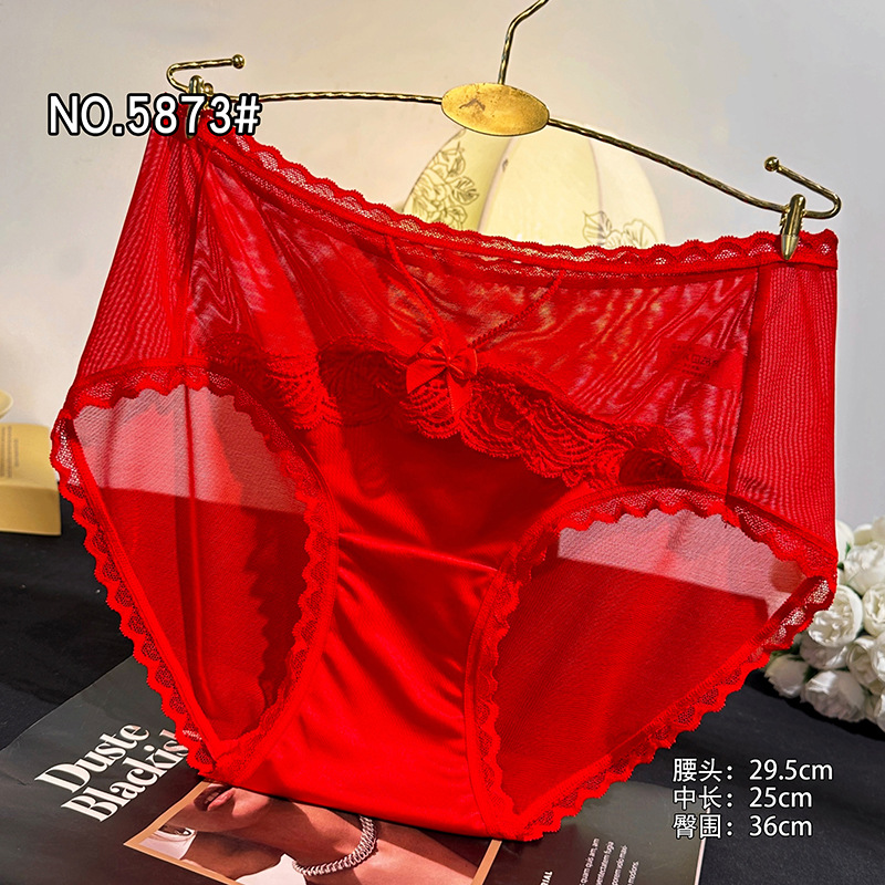 大红蕾丝女士内裤性感黑色无痕中腰纯棉裆透气本命年红色内裤女