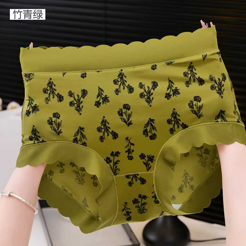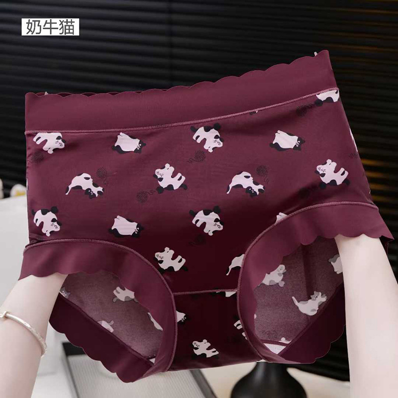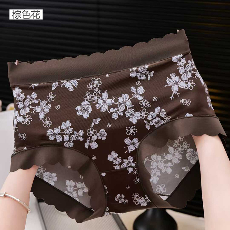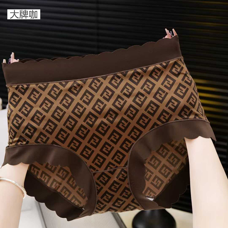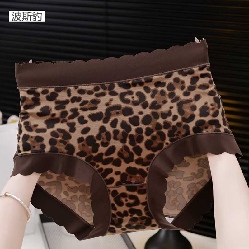 大码女士内裤无痕高弹缎面中高腰大码轻奢印花豹纹内裤女
