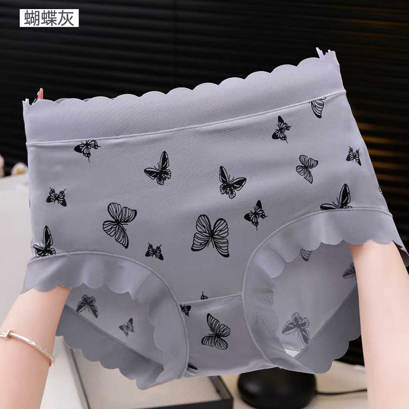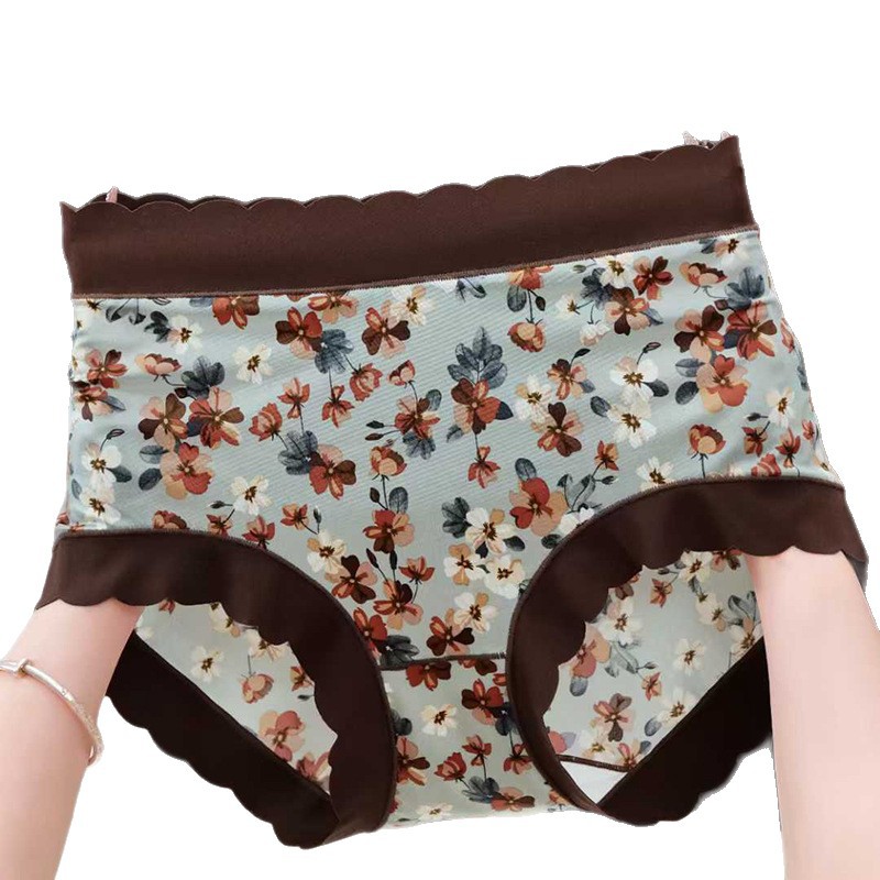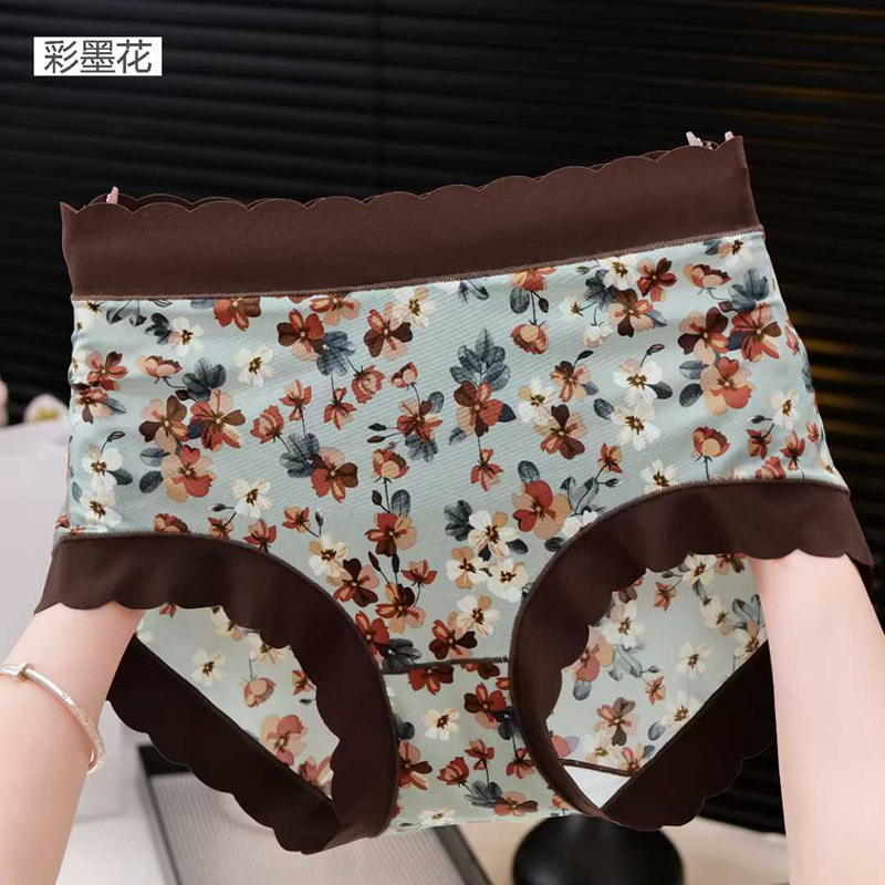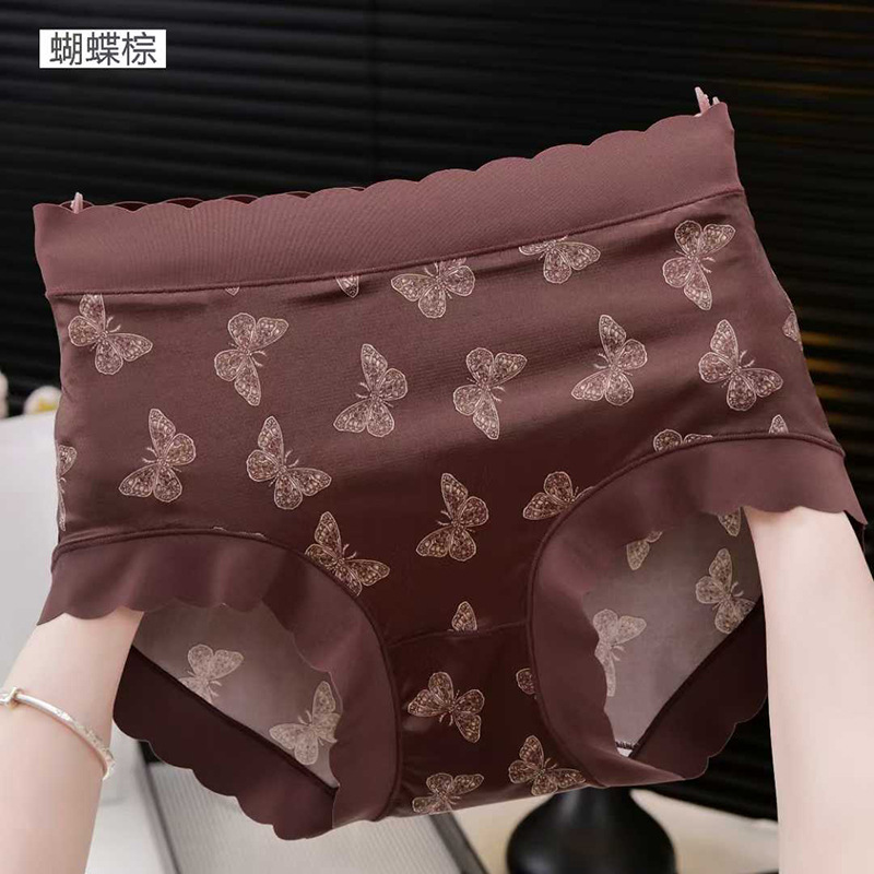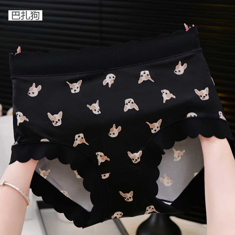 大码女士内裤无痕高弹缎面中高腰大码轻奢印花豹纹内裤女