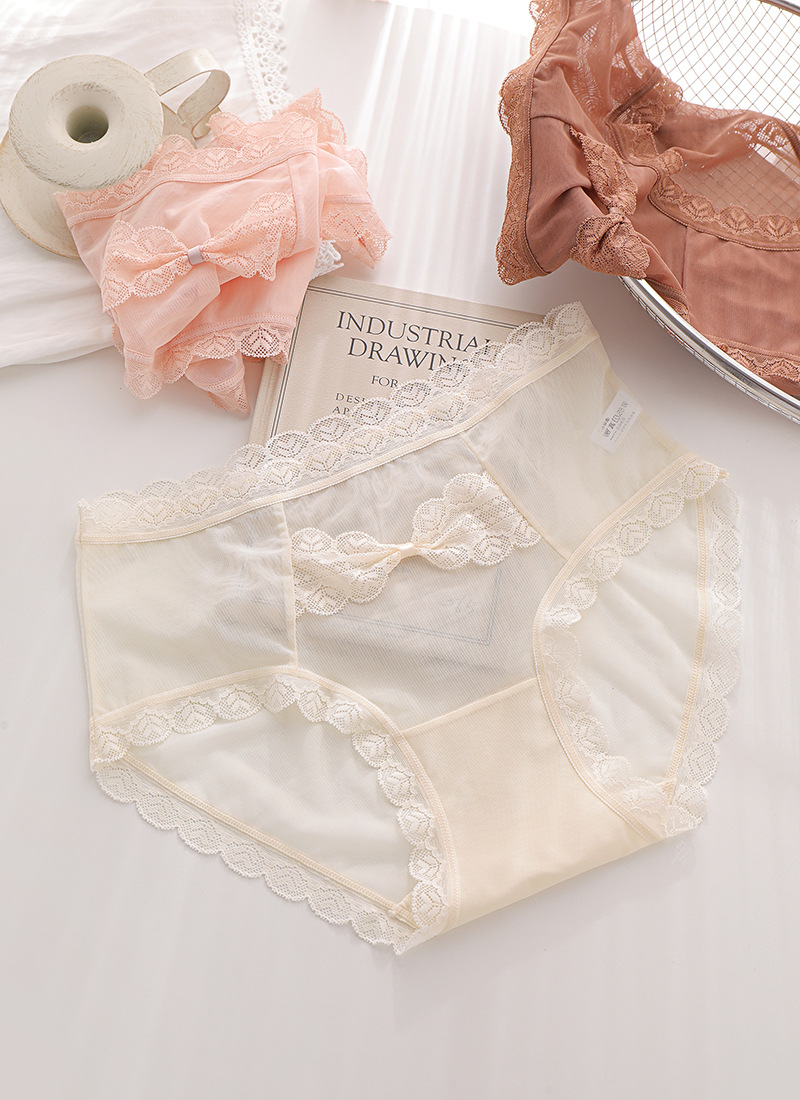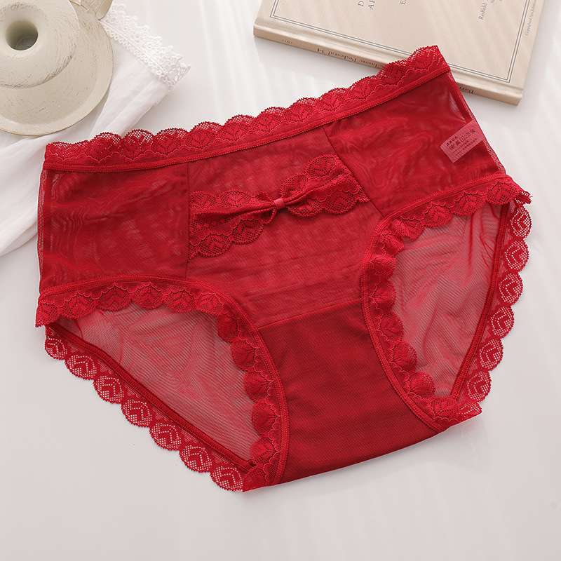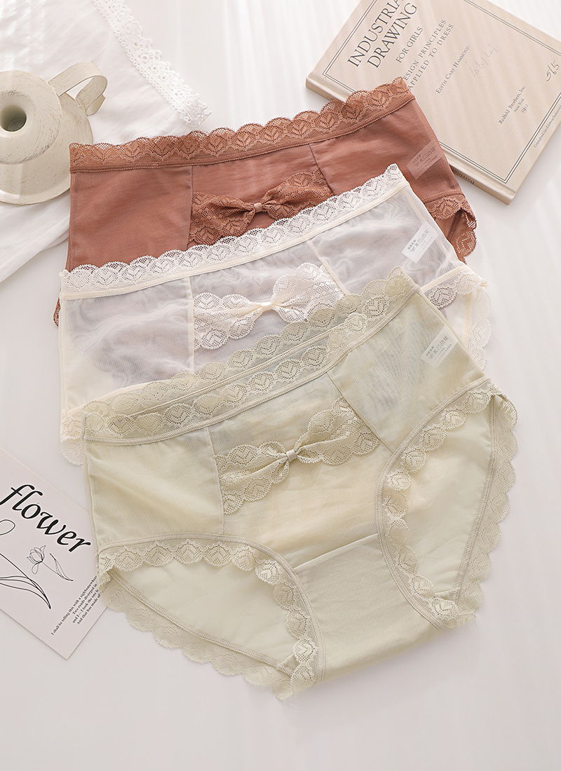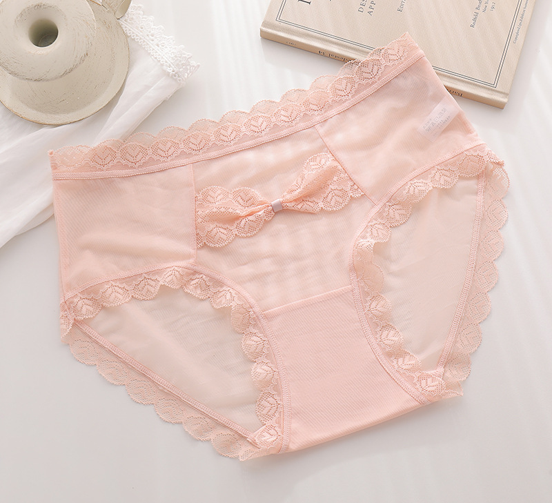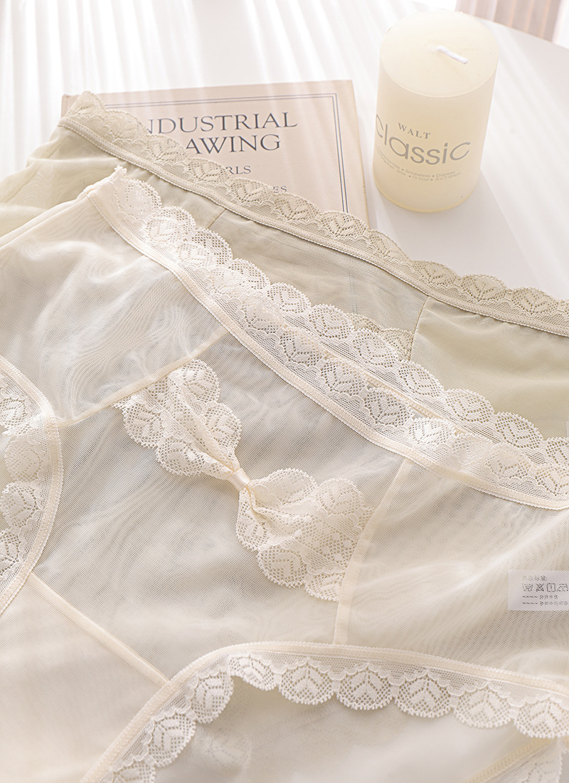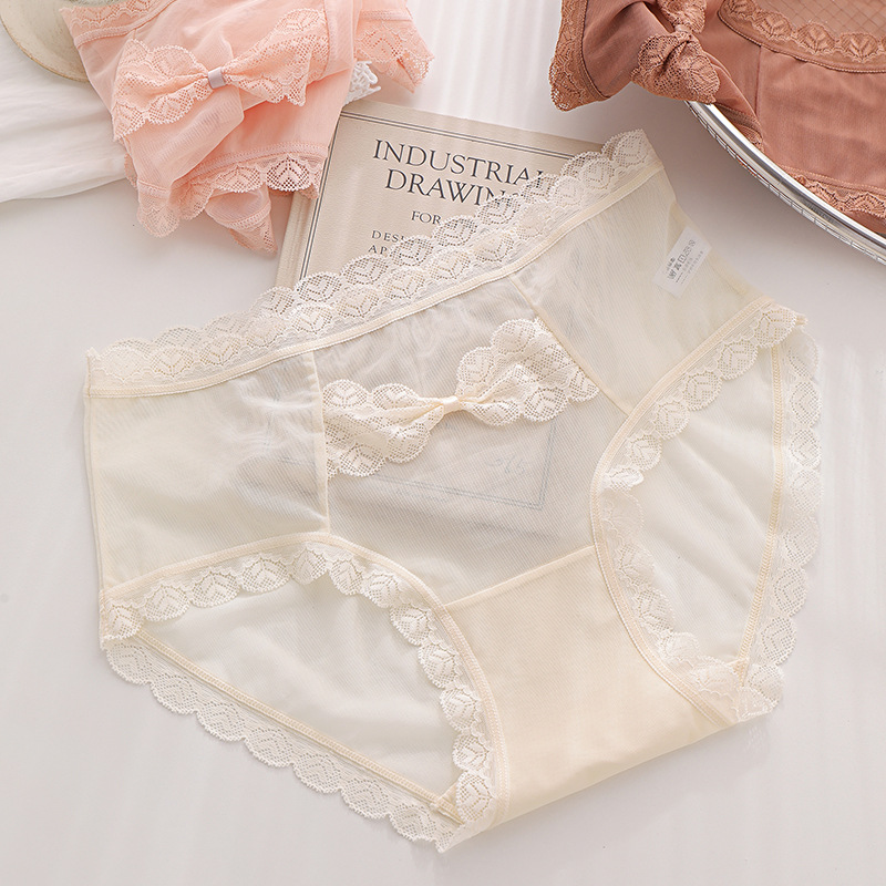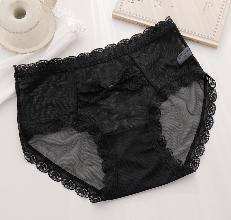 蕾丝内裤女中腰性感女士内裤桑蚕丝纯棉裆蕾丝纯欲网纱女内裤