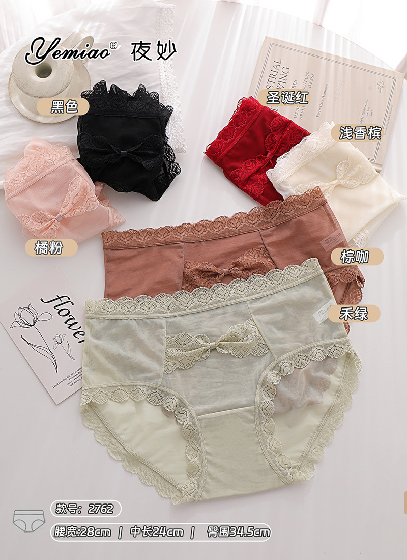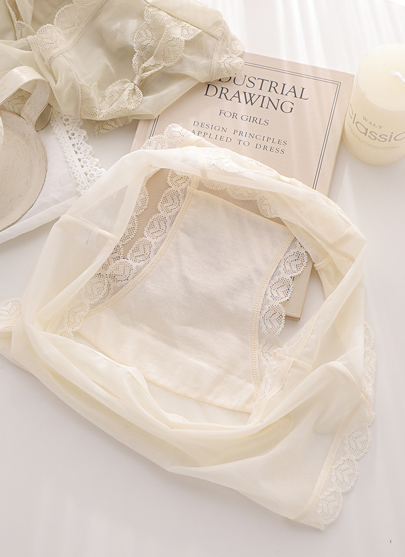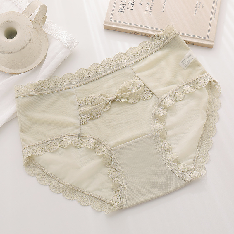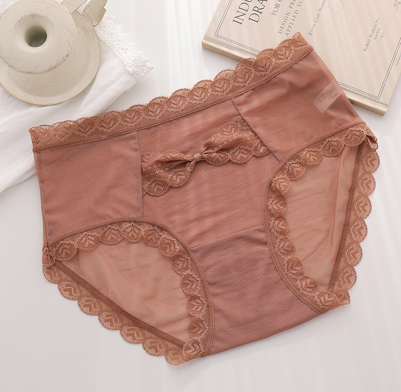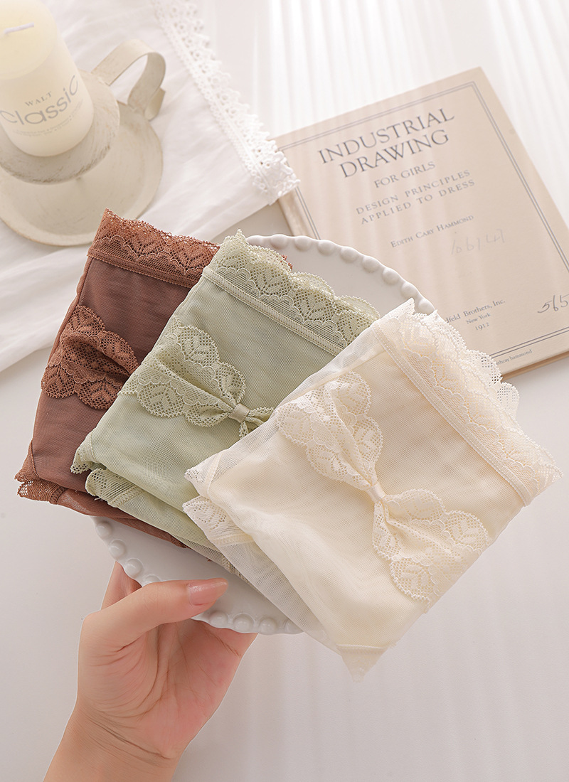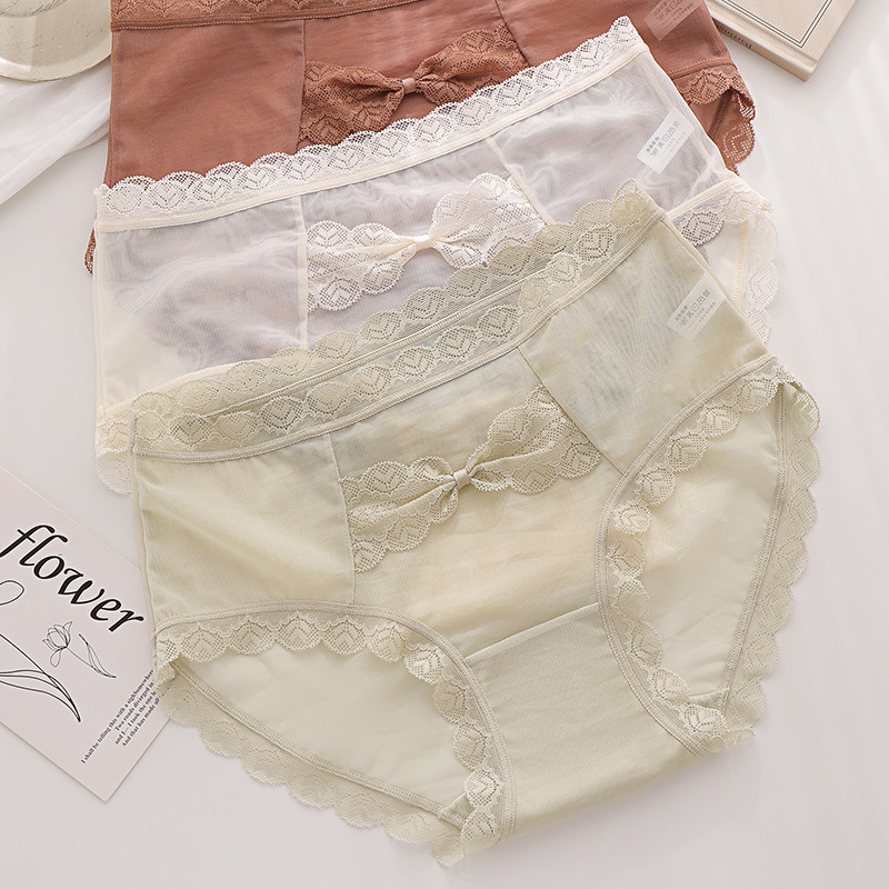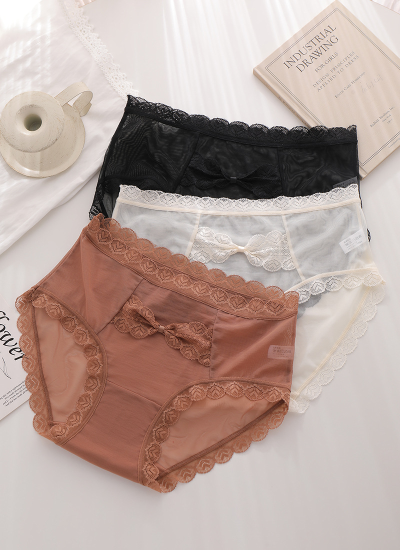 蕾丝内裤女中腰性感女士内裤桑蚕丝纯棉裆蕾丝纯欲网纱女内裤