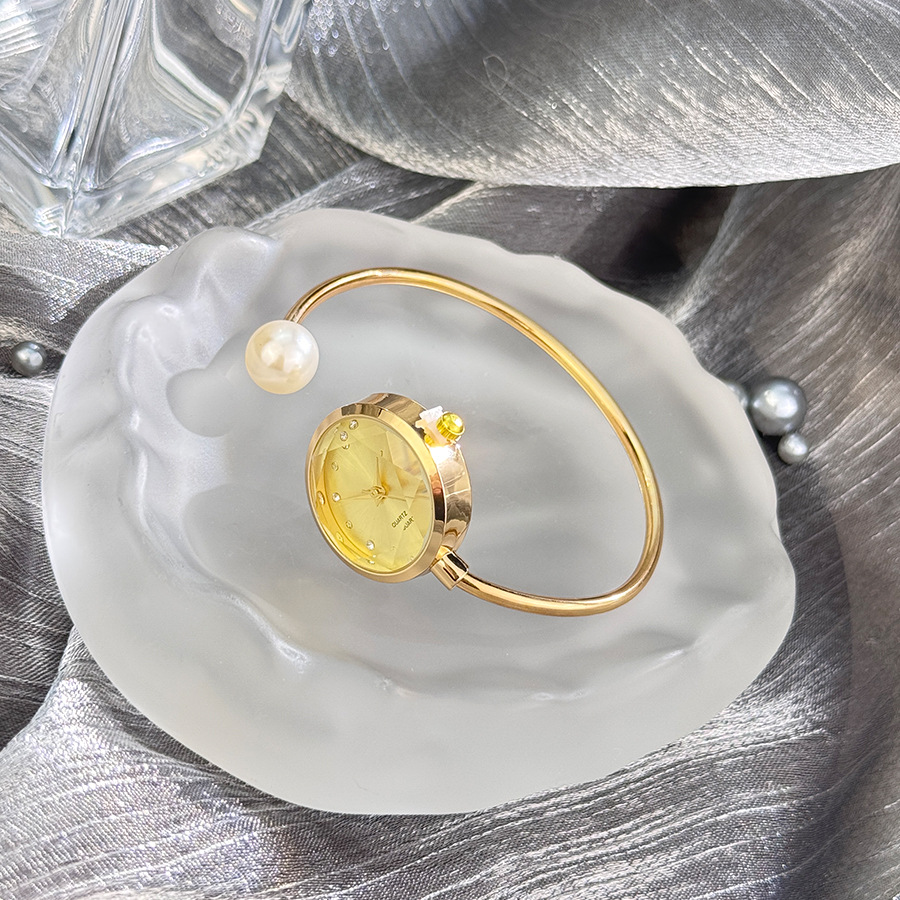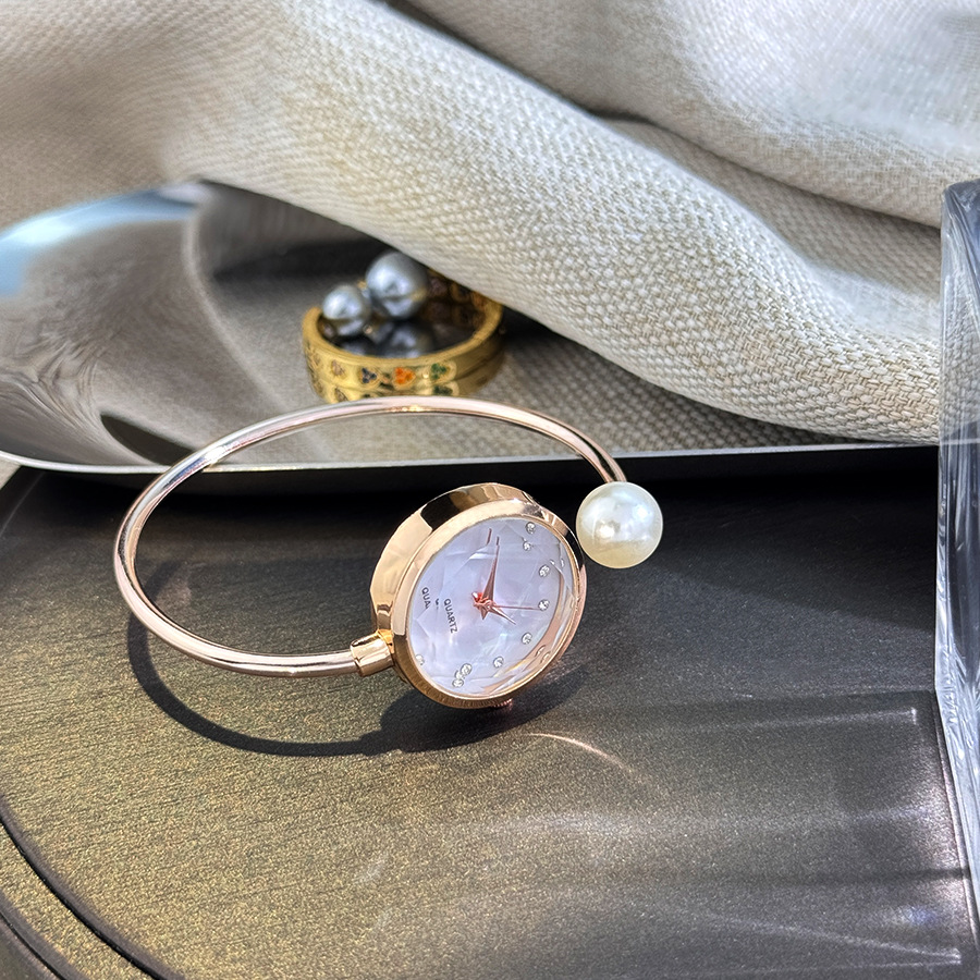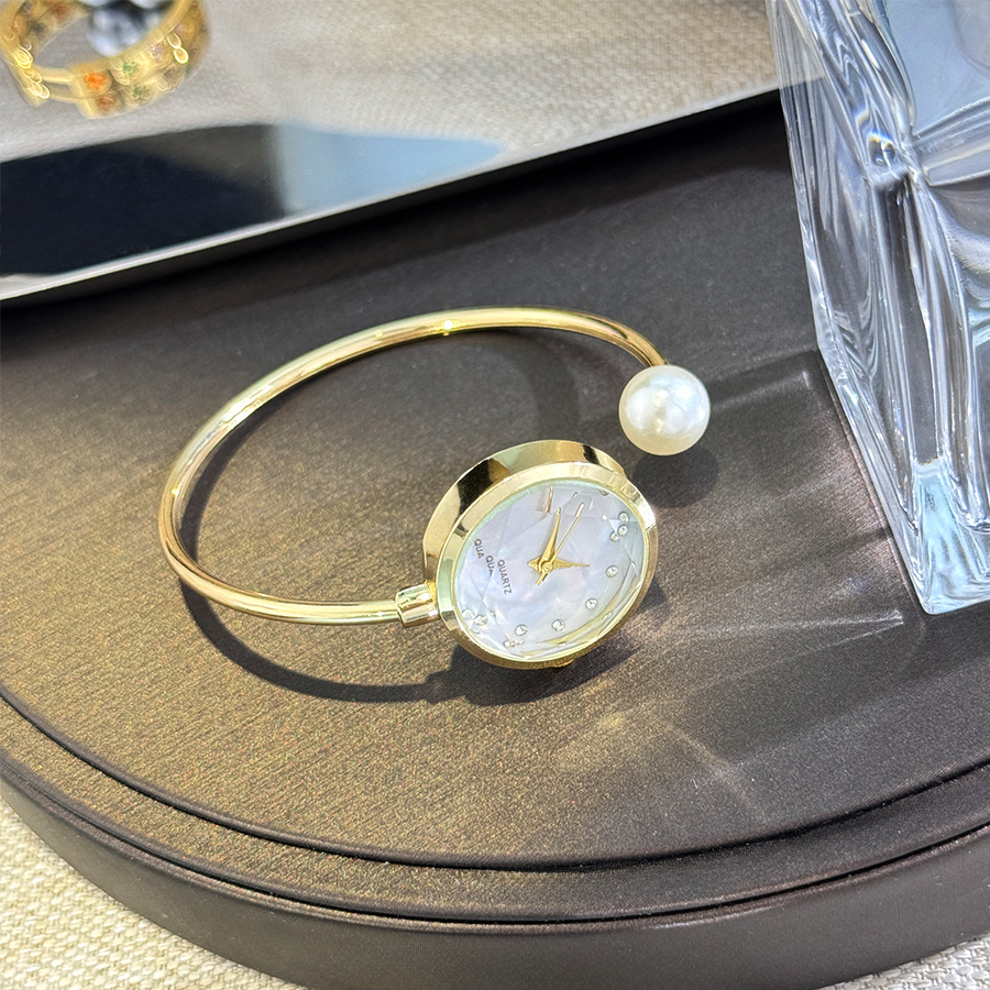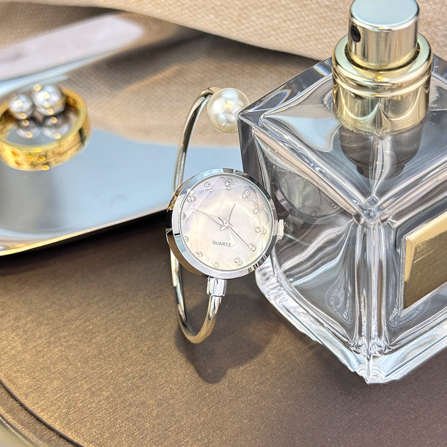 跨境爆款懒人超方便手镯珍珠法式浪漫手表立体玻璃闪闪镶钻首饰表