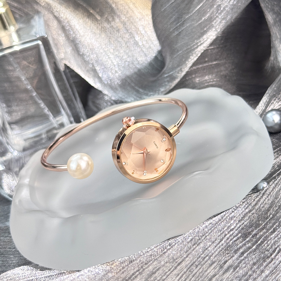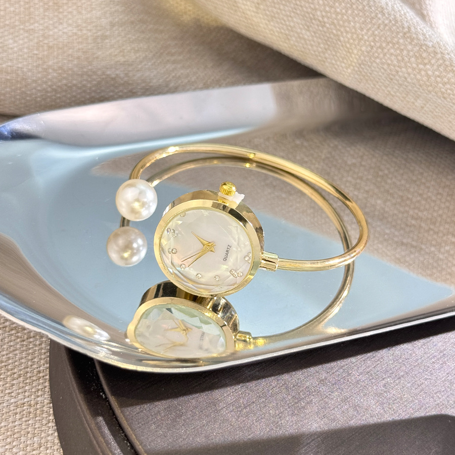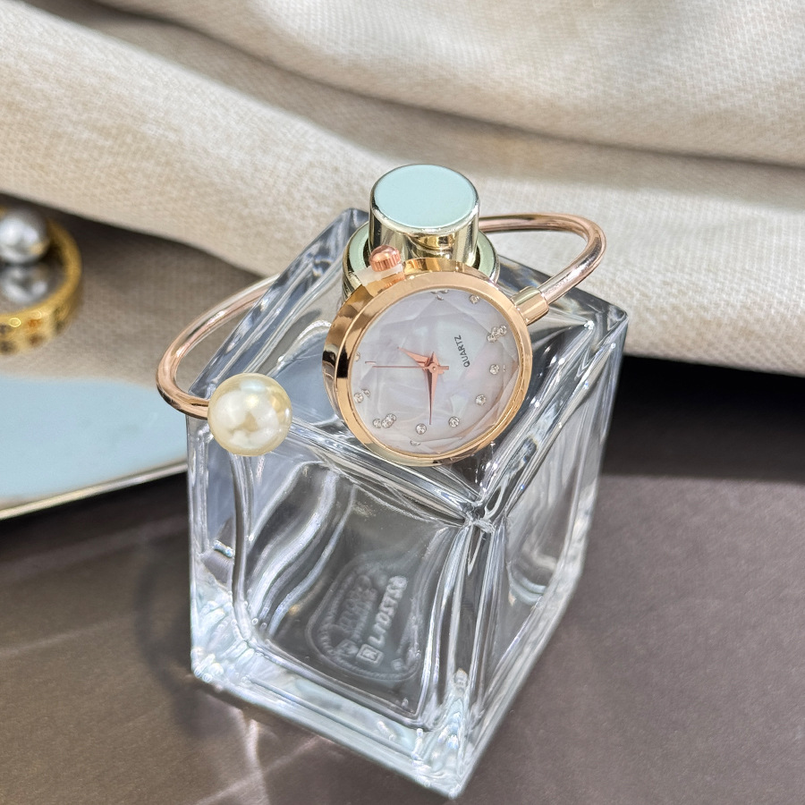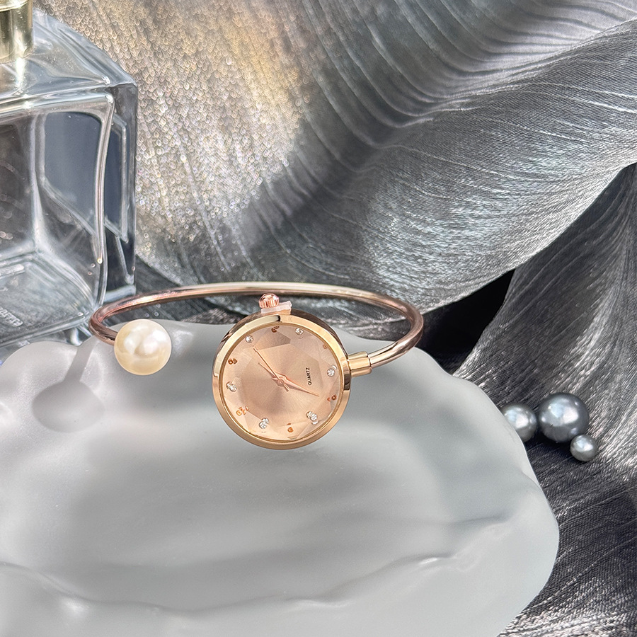跨境爆款懒人超方便手镯珍珠法式浪漫手表立体玻璃闪闪镶钻首饰表