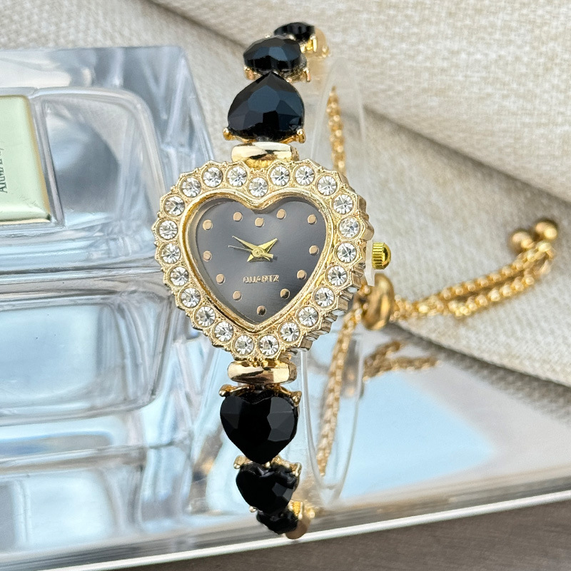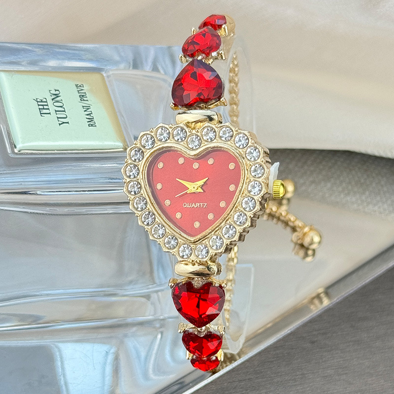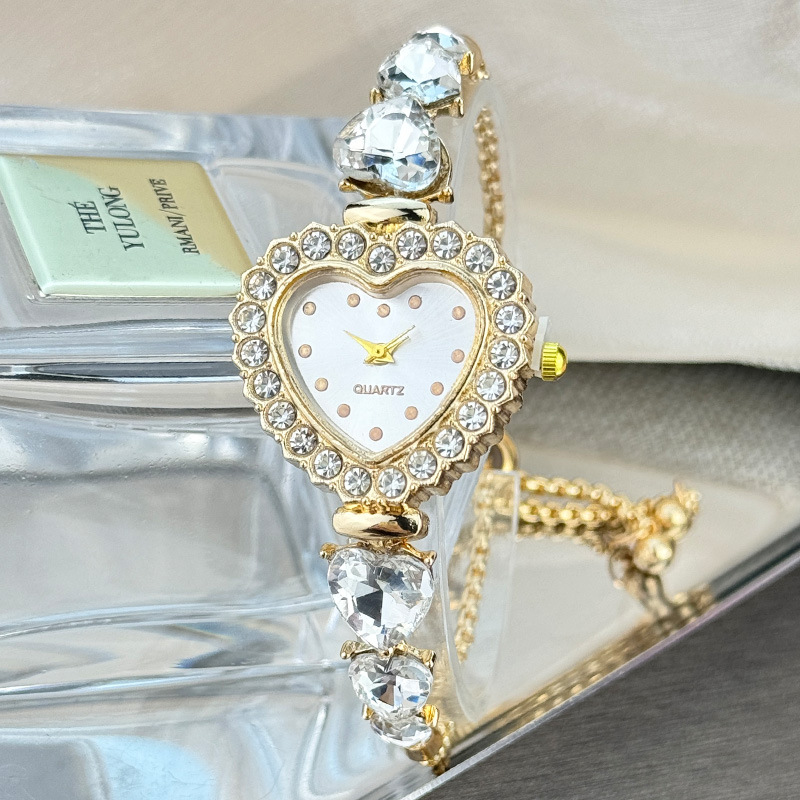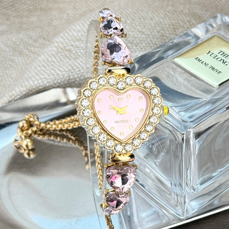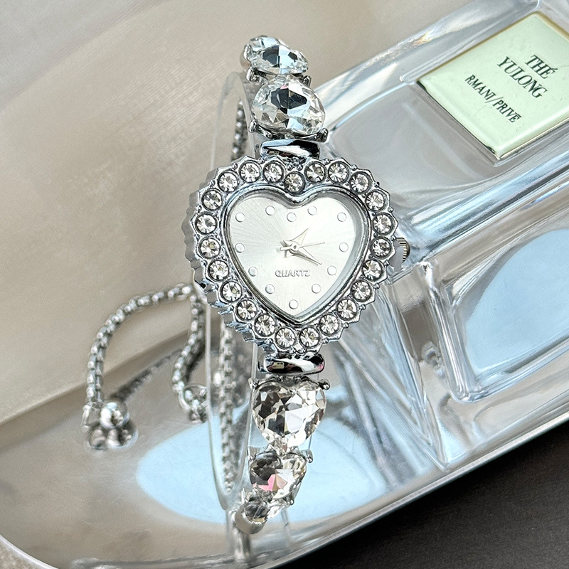 跨境爱心花型装饰手链石英手表镶钻表盘抽拉表带女士时尚腕表外贸
