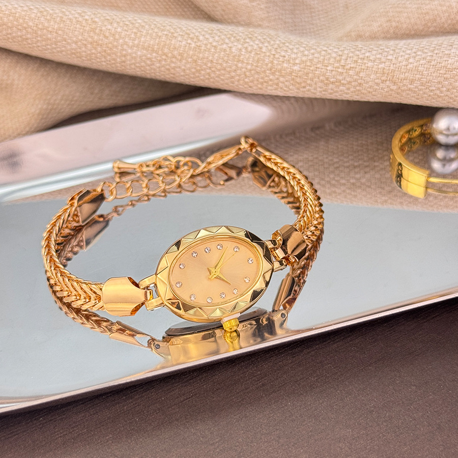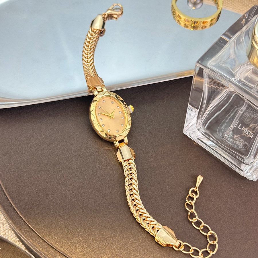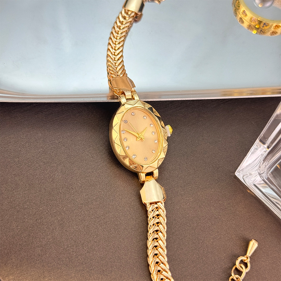 新款椭圆跨境小巧复古女士手表可调节手链龙虾扣首饰石英表小金表