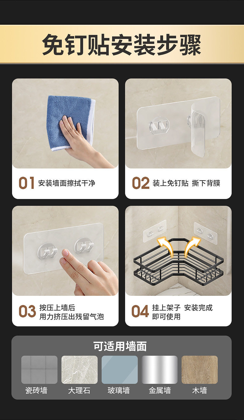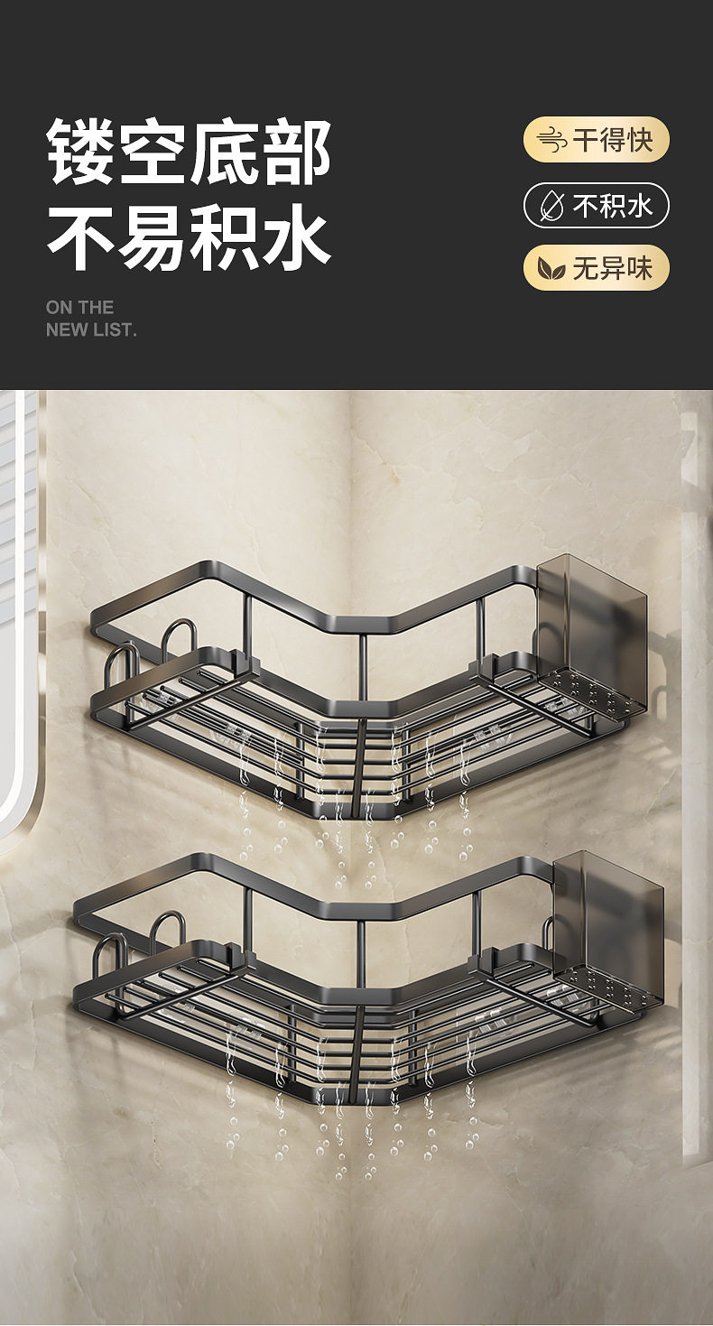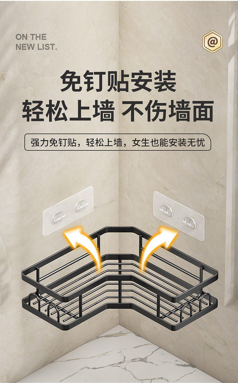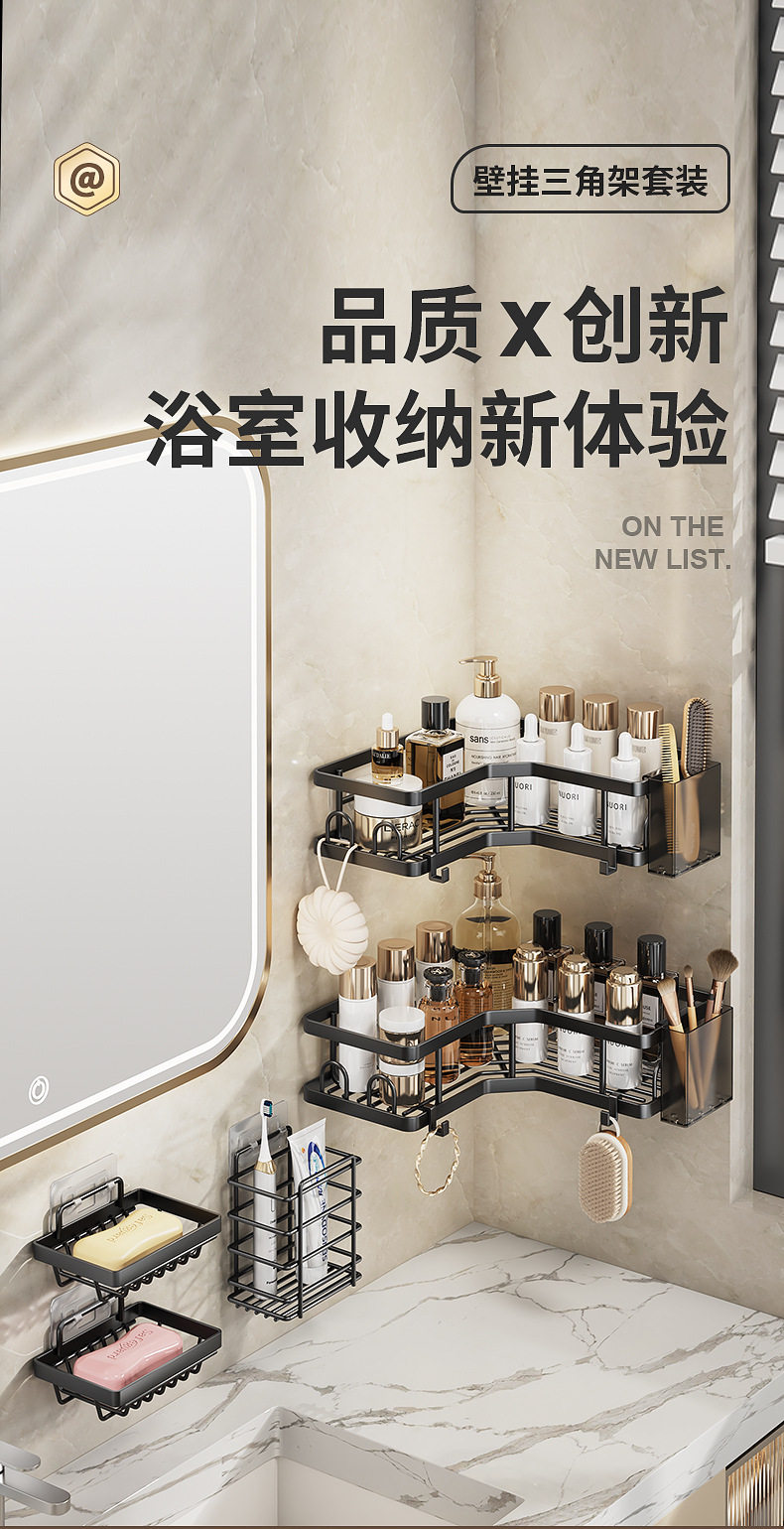 跨境浴室三角篮置物架卫生间免打孔转角置物架淋浴房墙角收纳架
