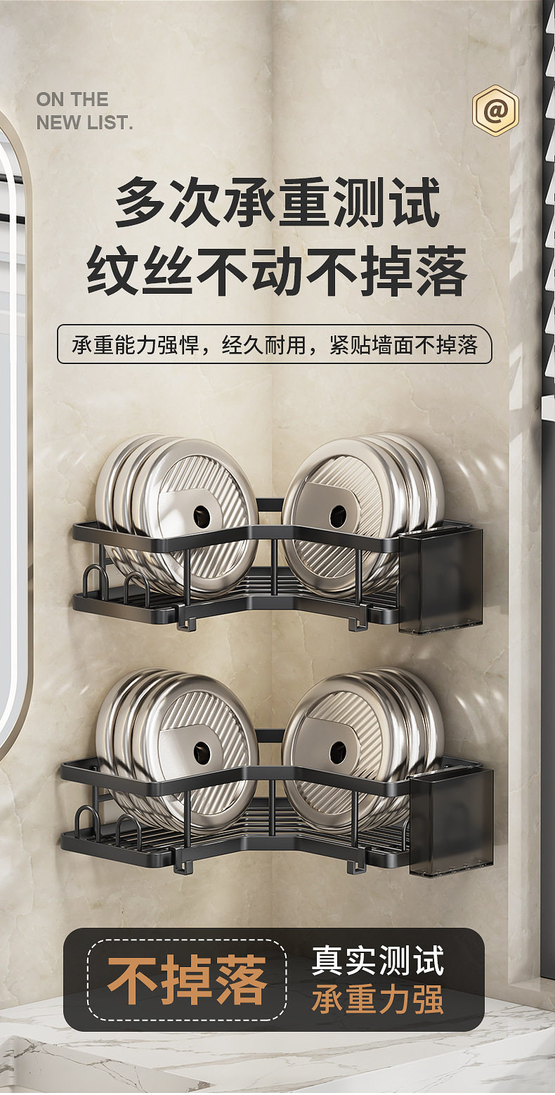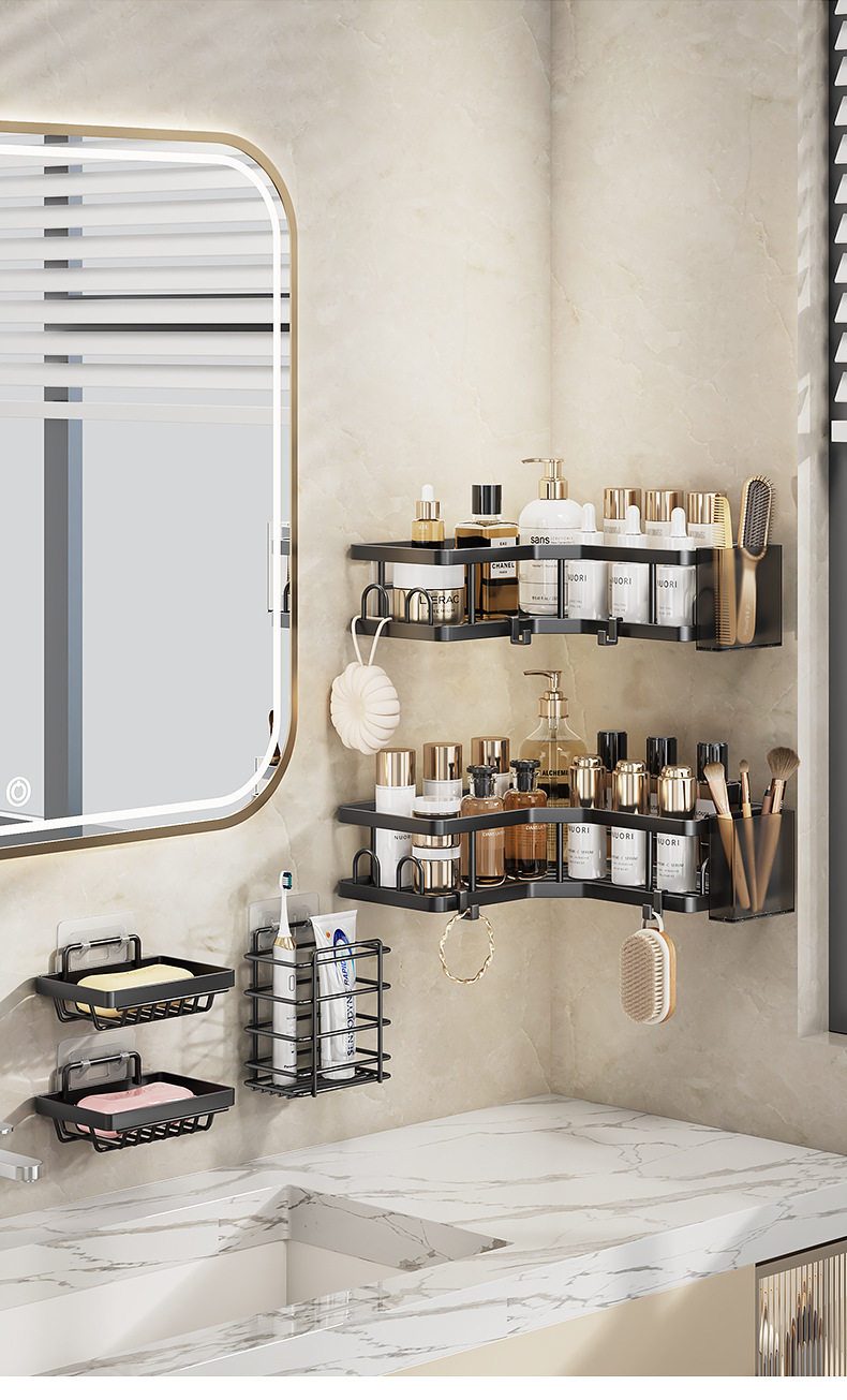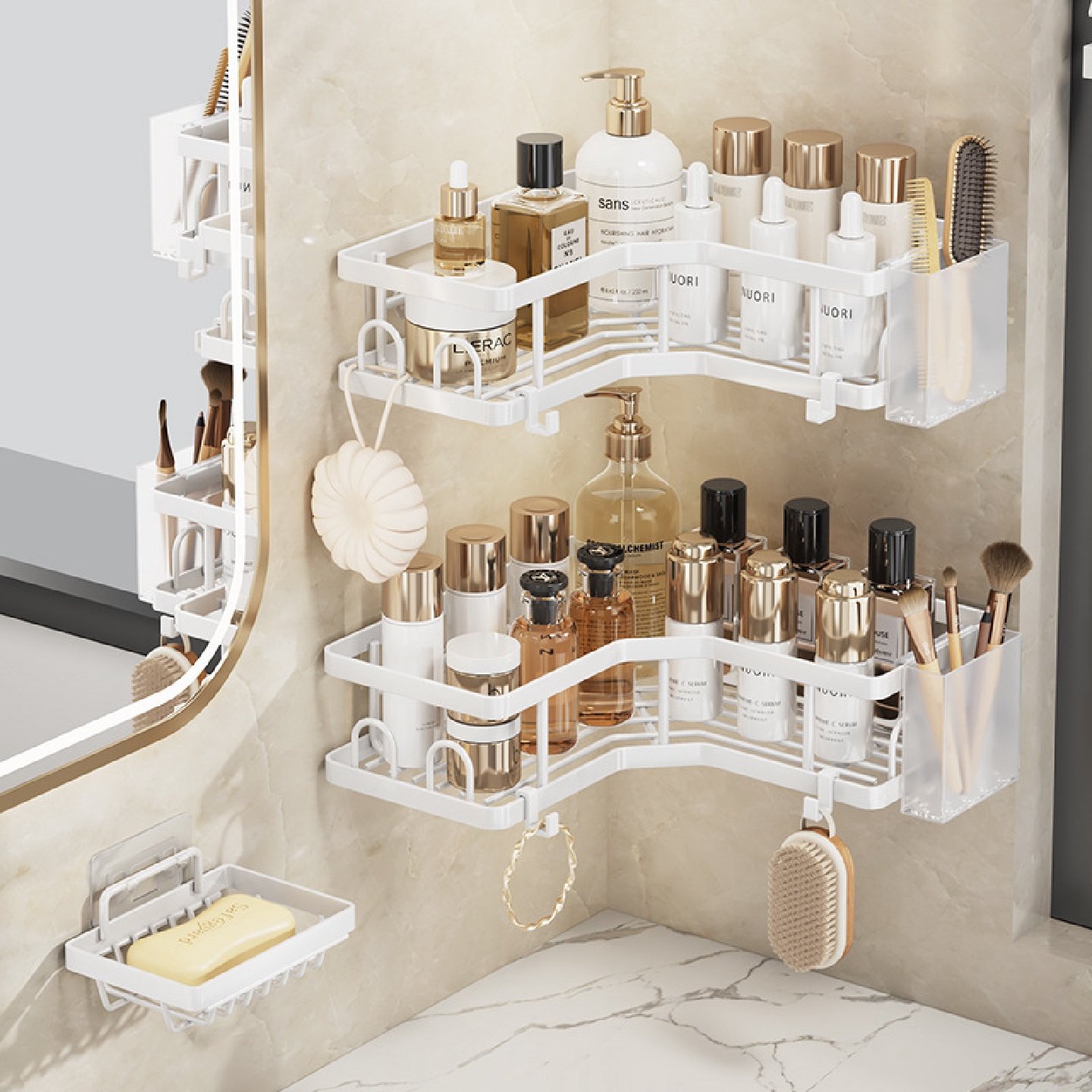 跨境浴室三角篮置物架卫生间免打孔转角置物架淋浴房墙角收纳架