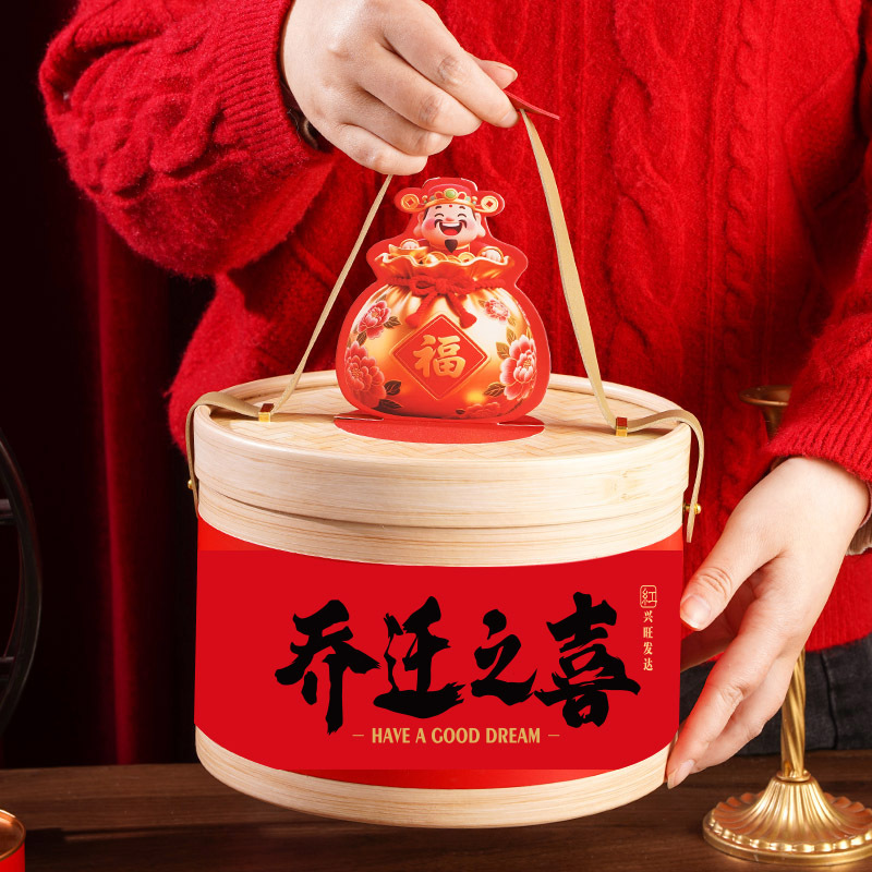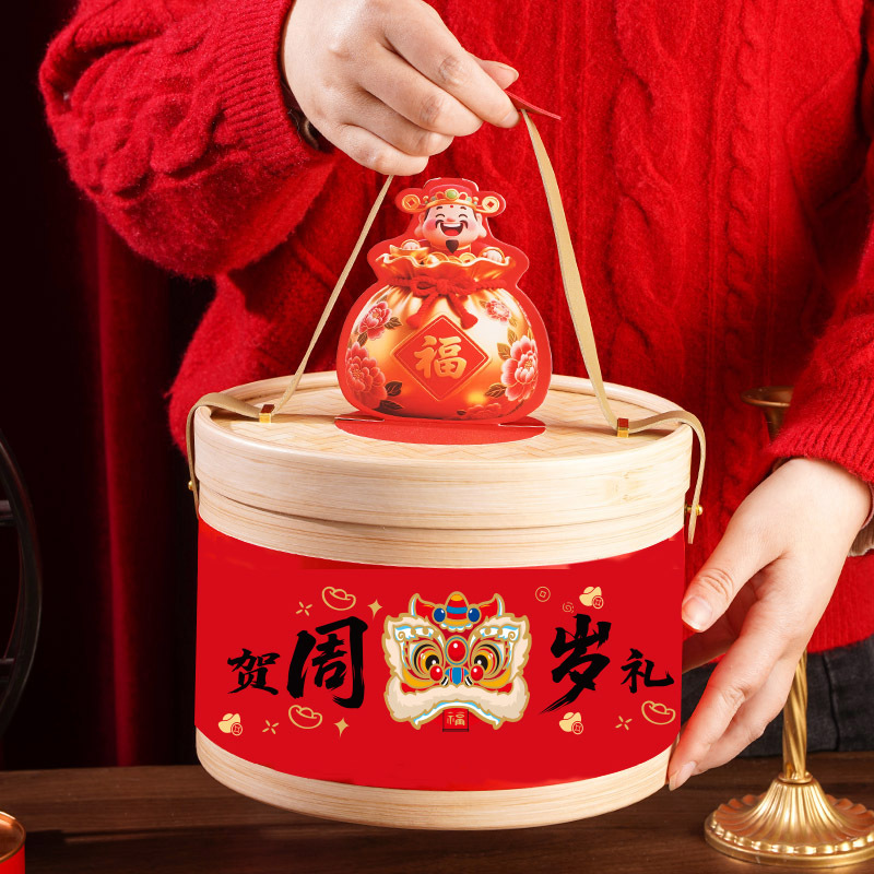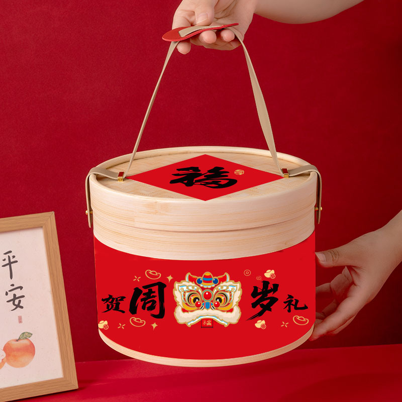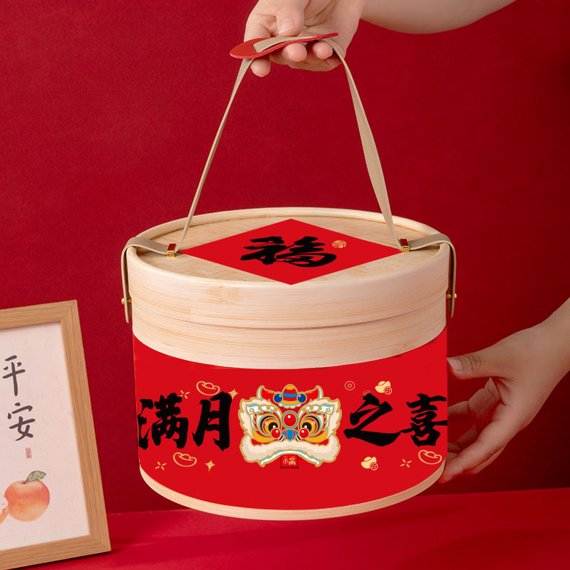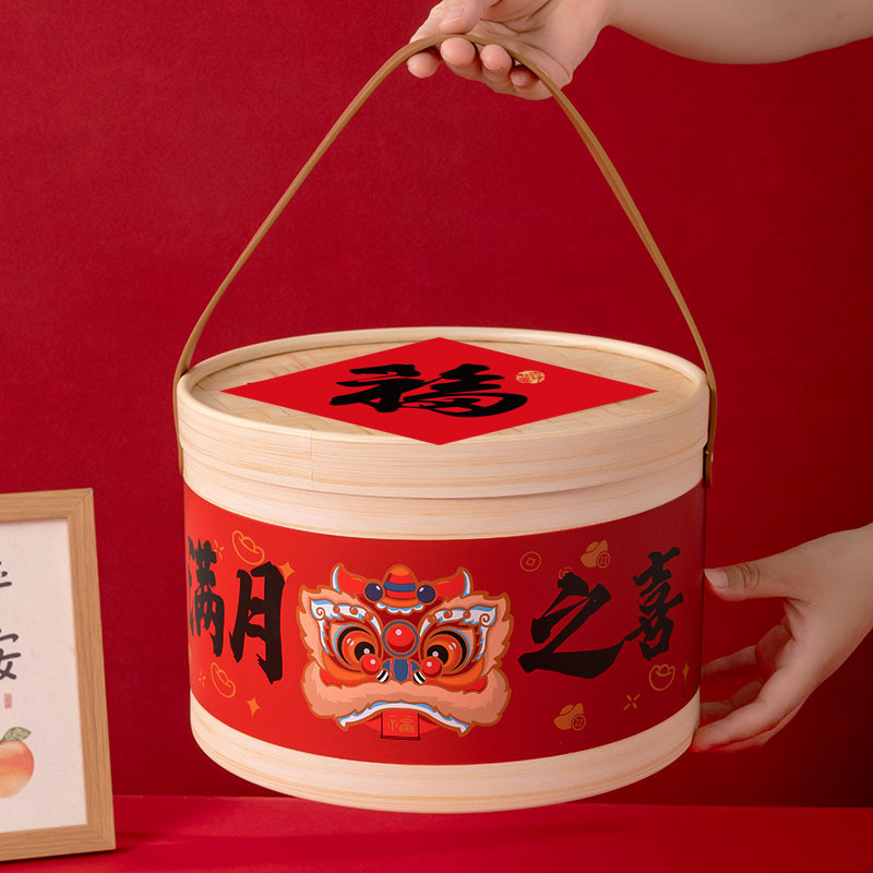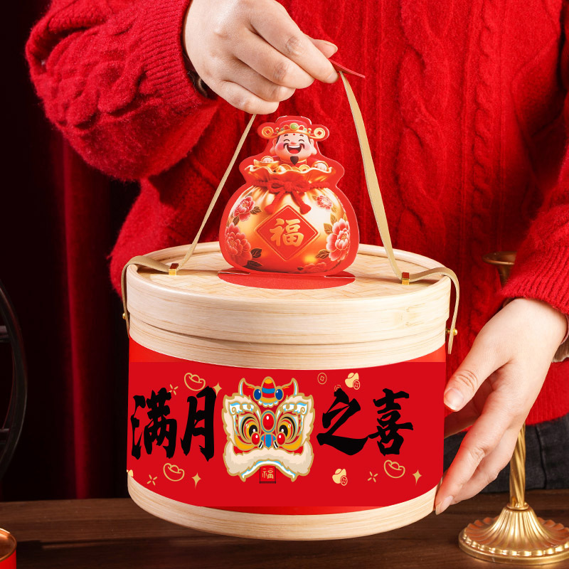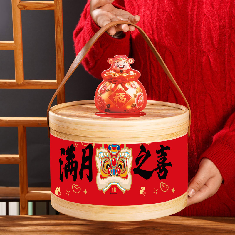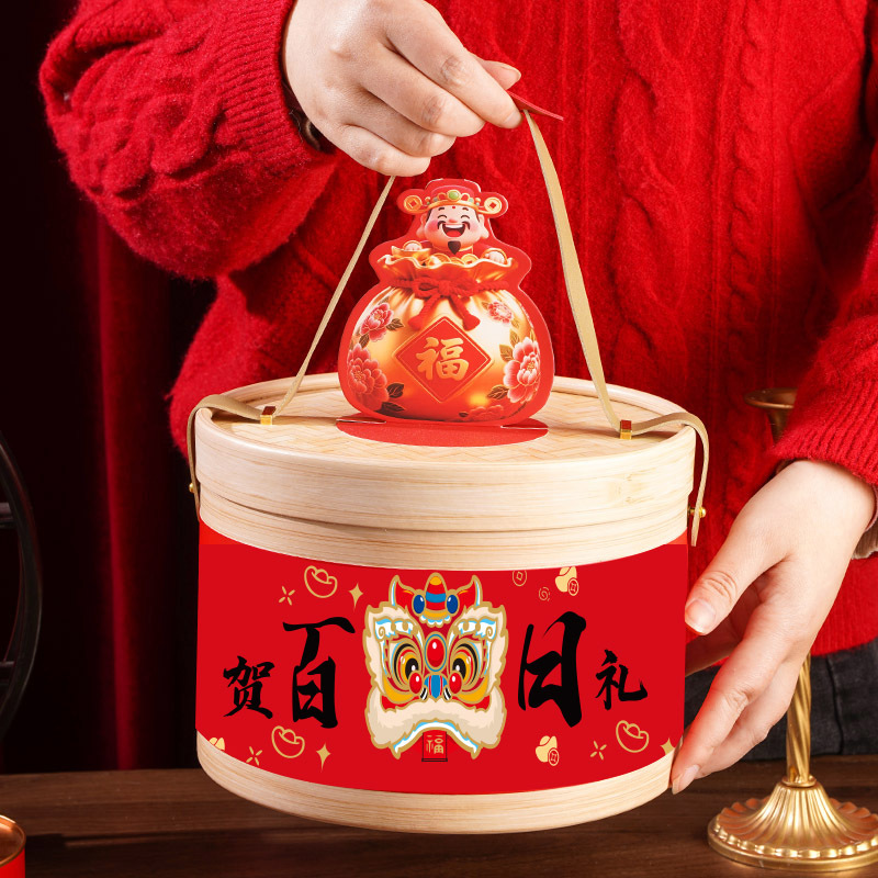 新款周岁满月百日礼乔迁萌宝订婚抱抱桶伴手礼盒喜糖喜面喜蛋空盒