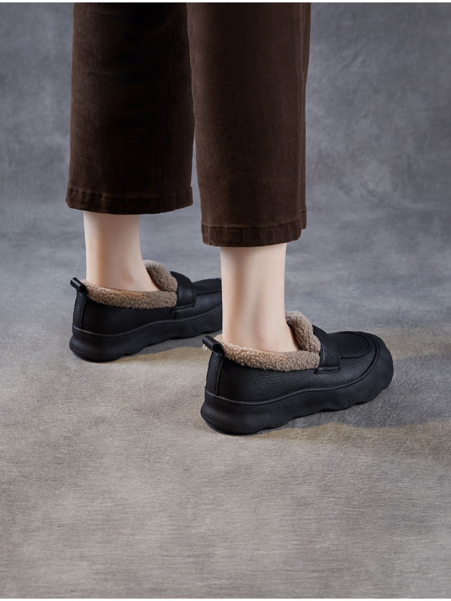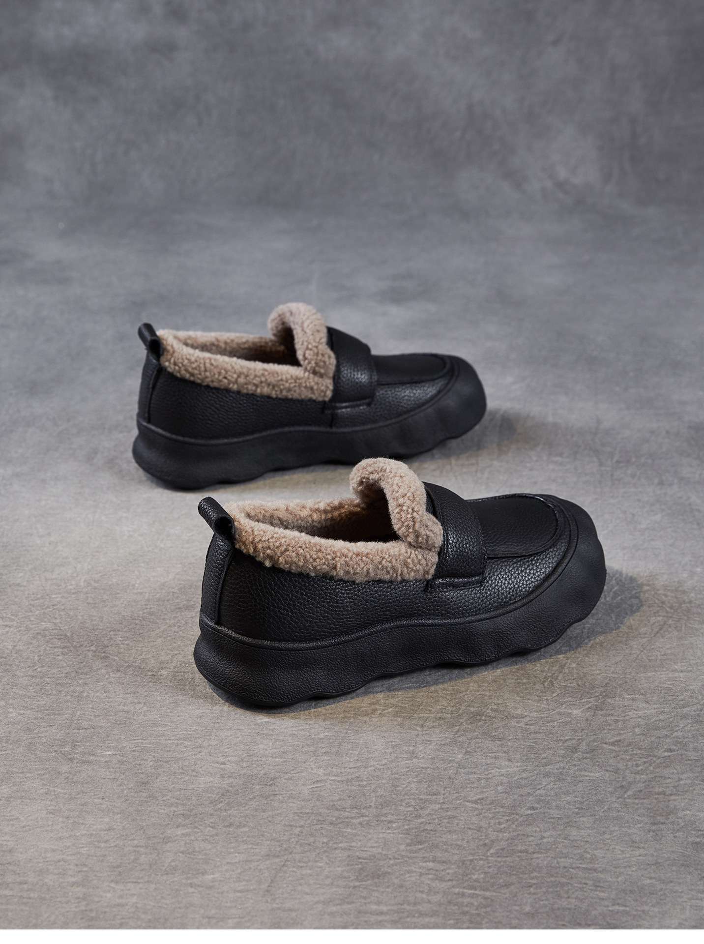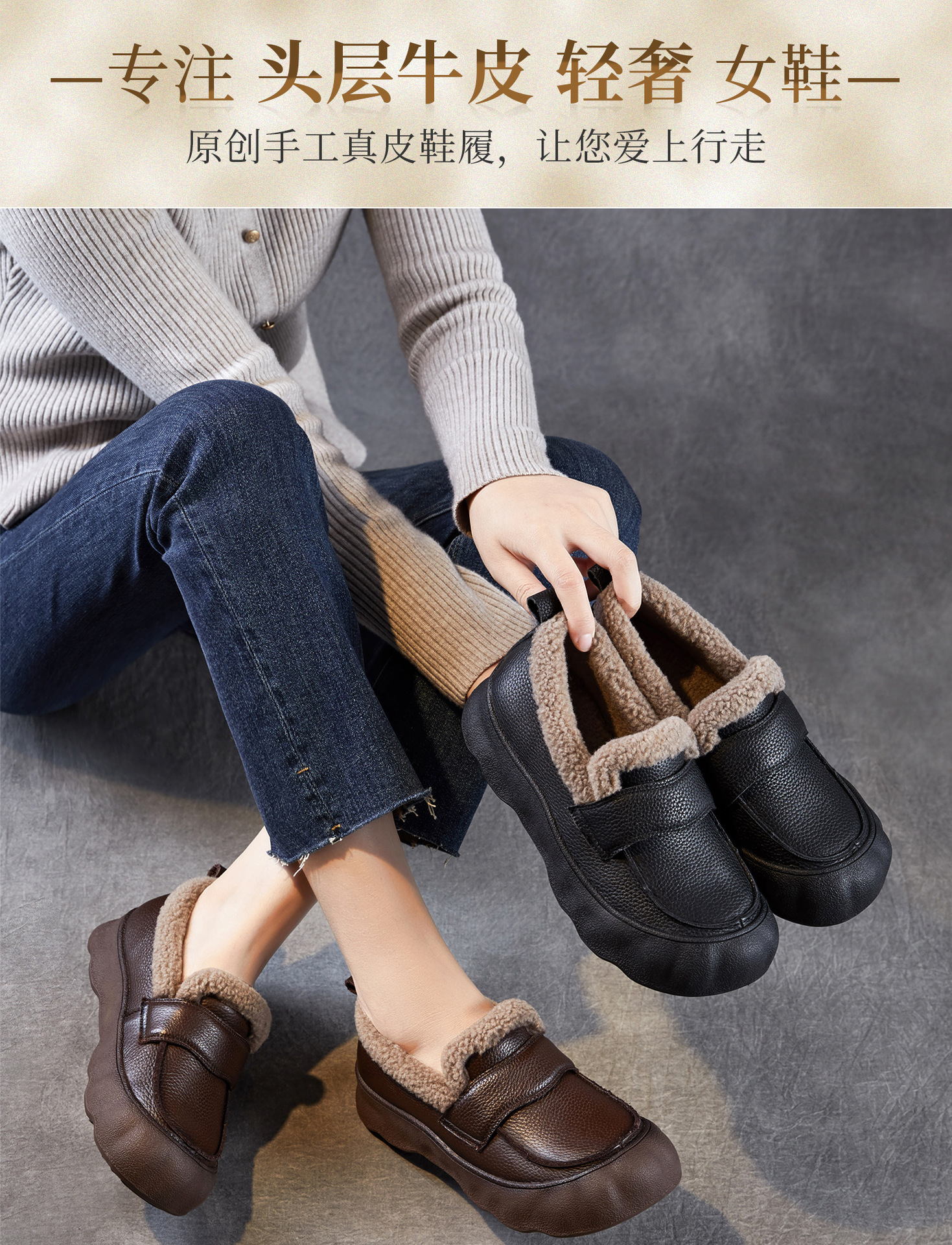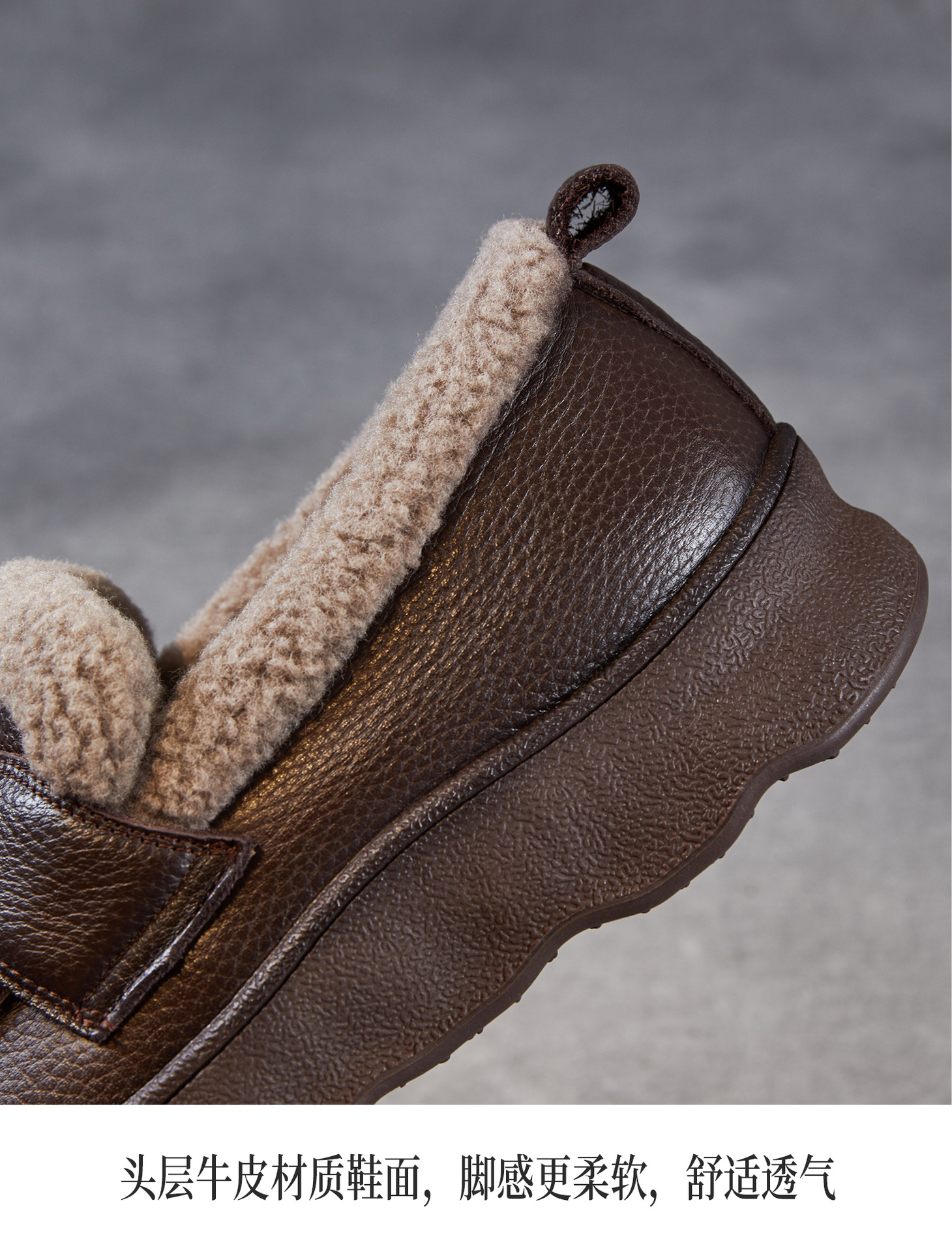 头层牛皮一脚蹬毛毛口鞋2025秋冬款平底休闲棉鞋软底加绒保暖皮鞋