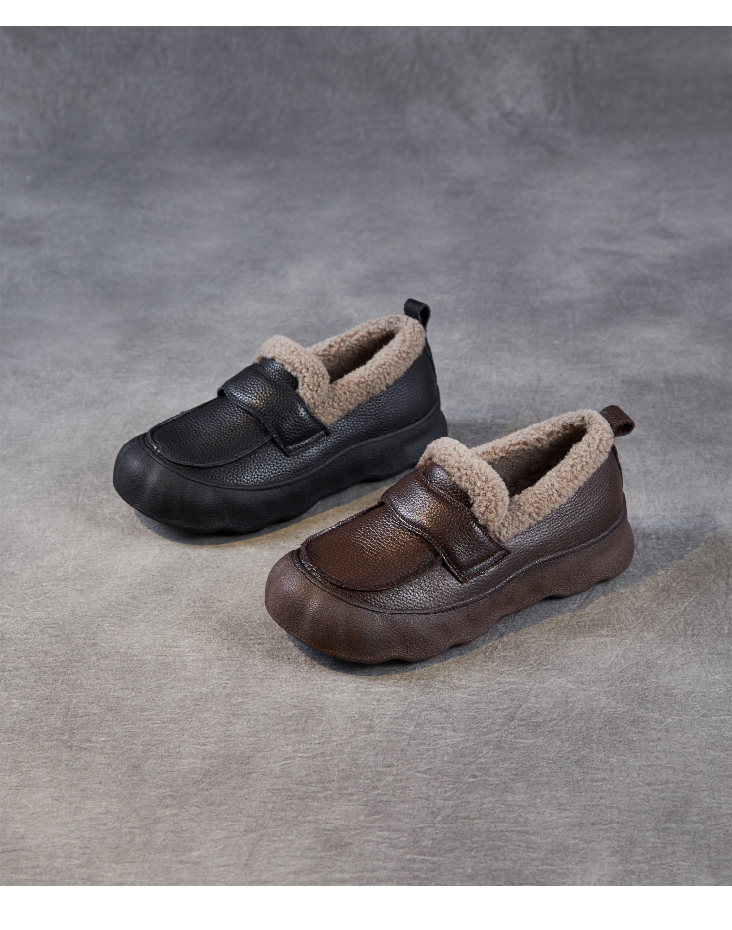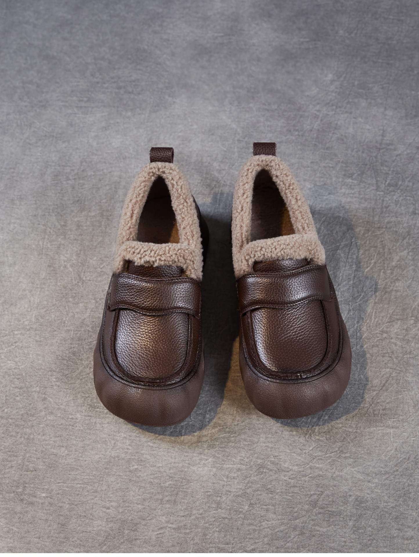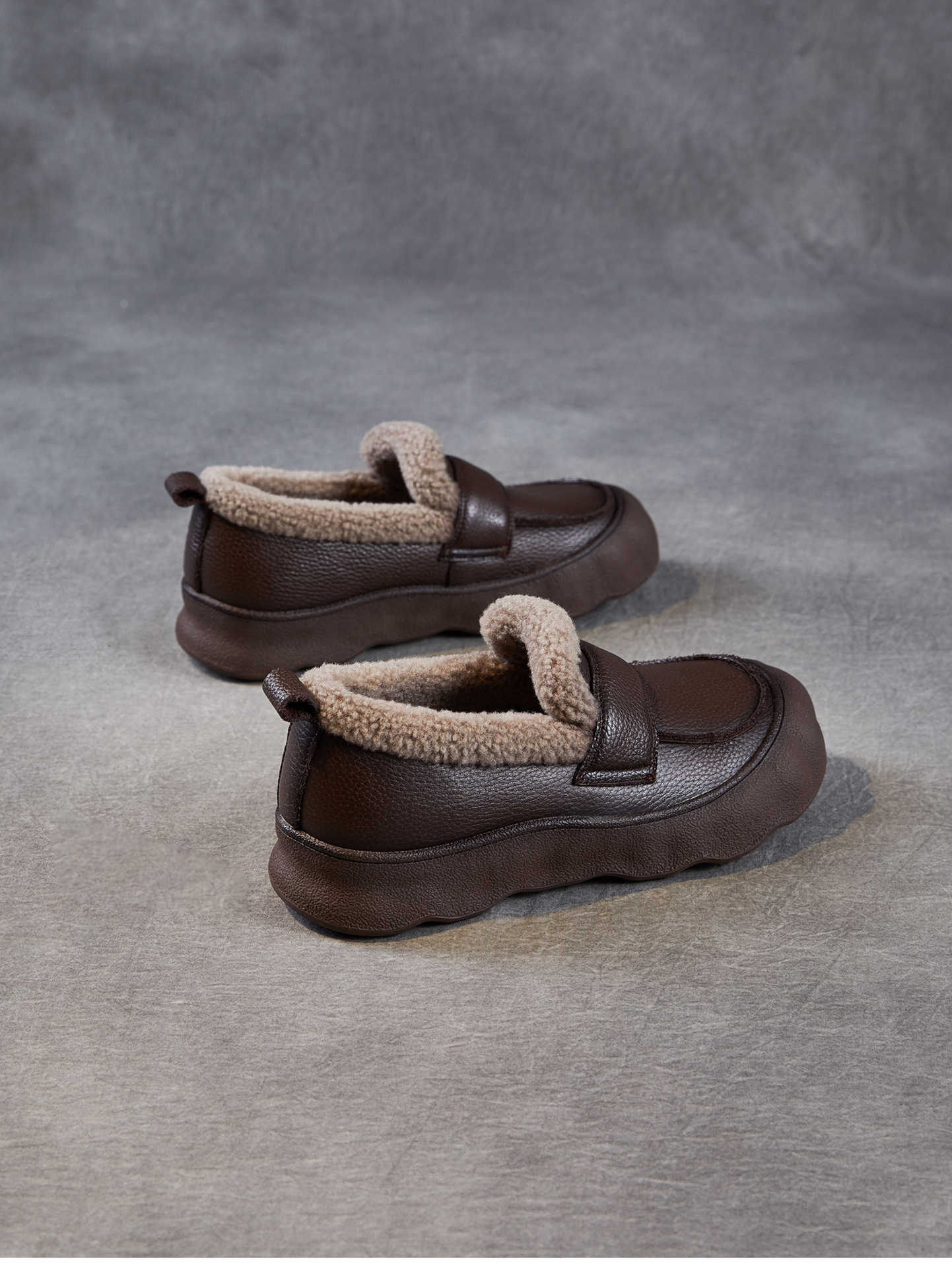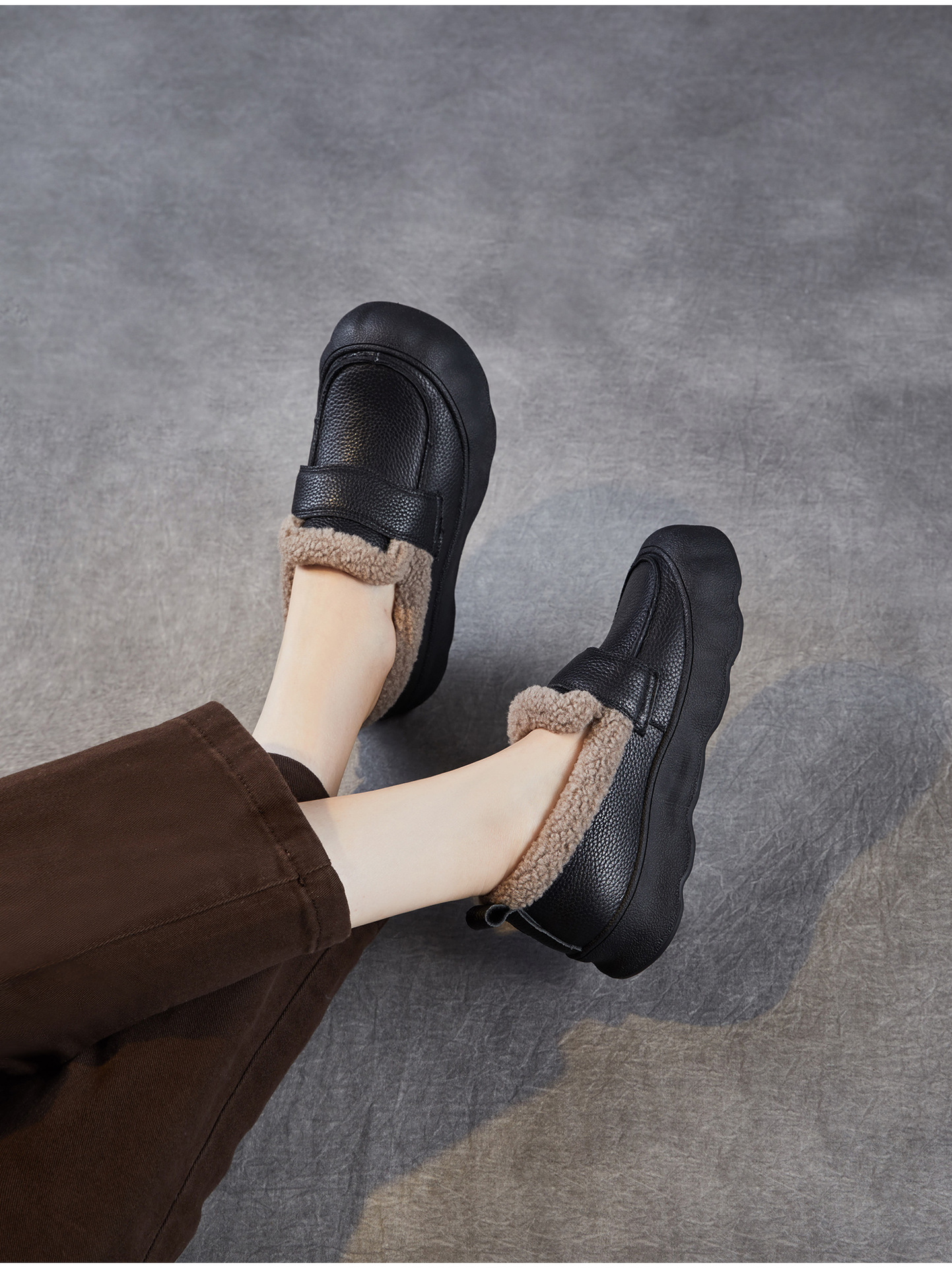 头层牛皮一脚蹬毛毛口鞋2025秋冬款平底休闲棉鞋软底加绒保暖皮鞋
