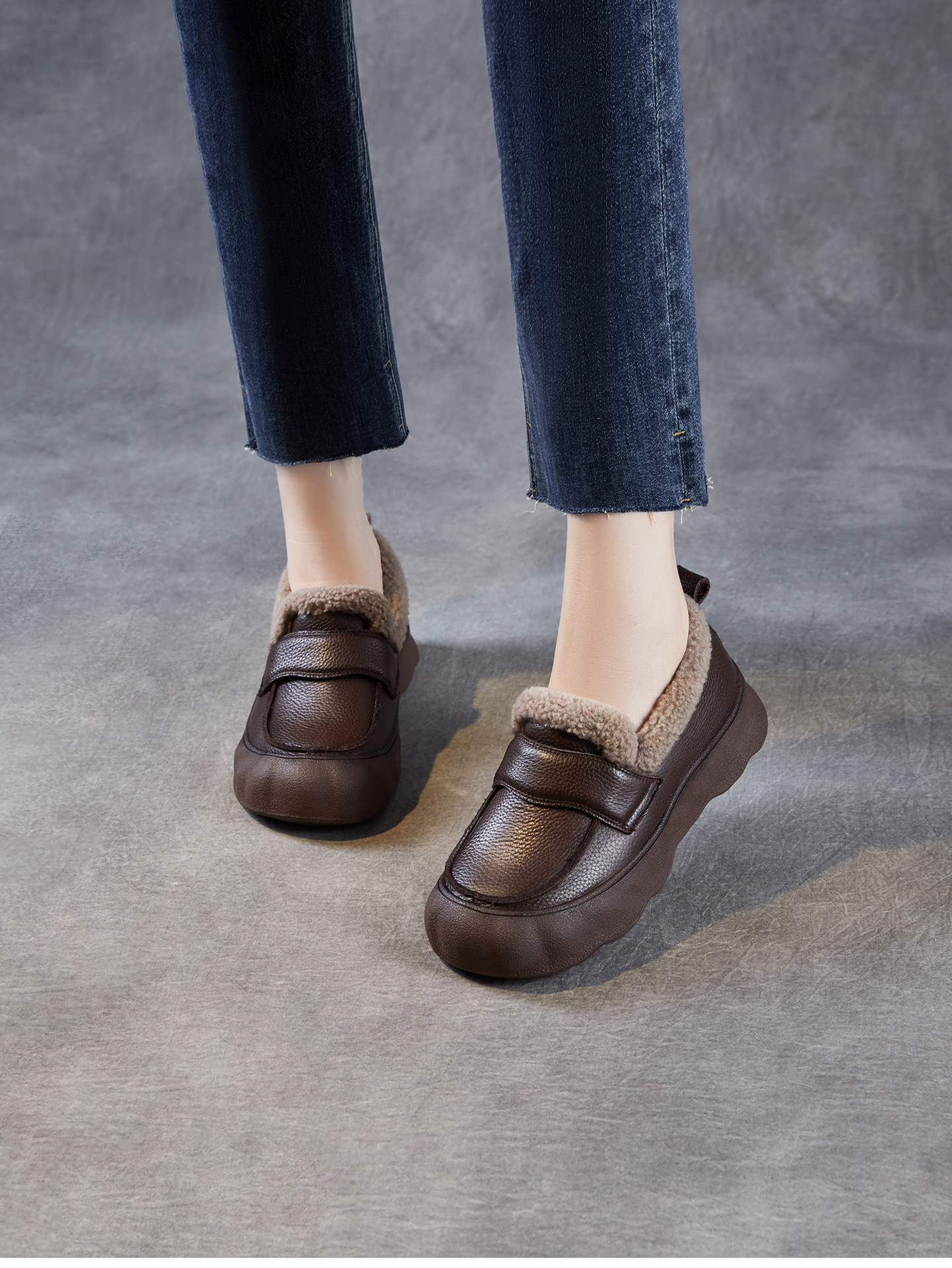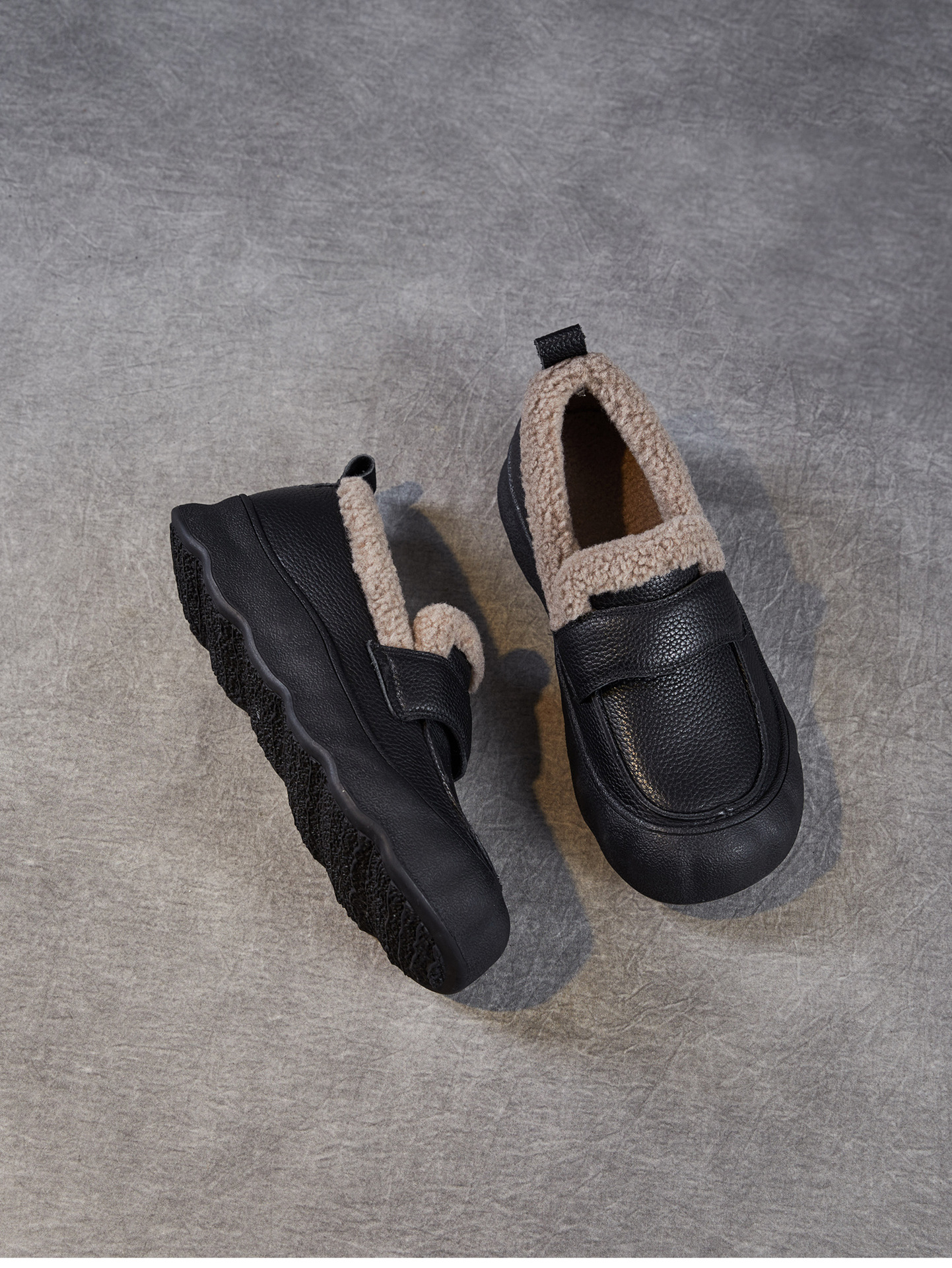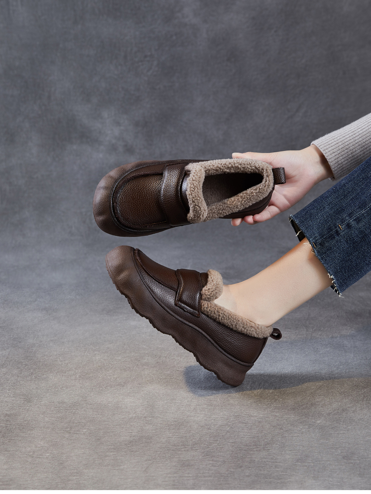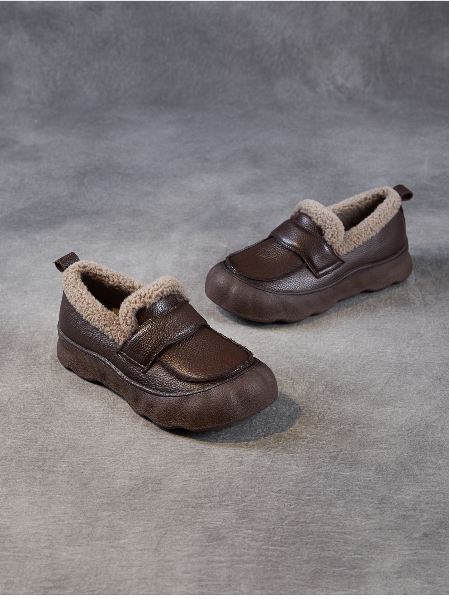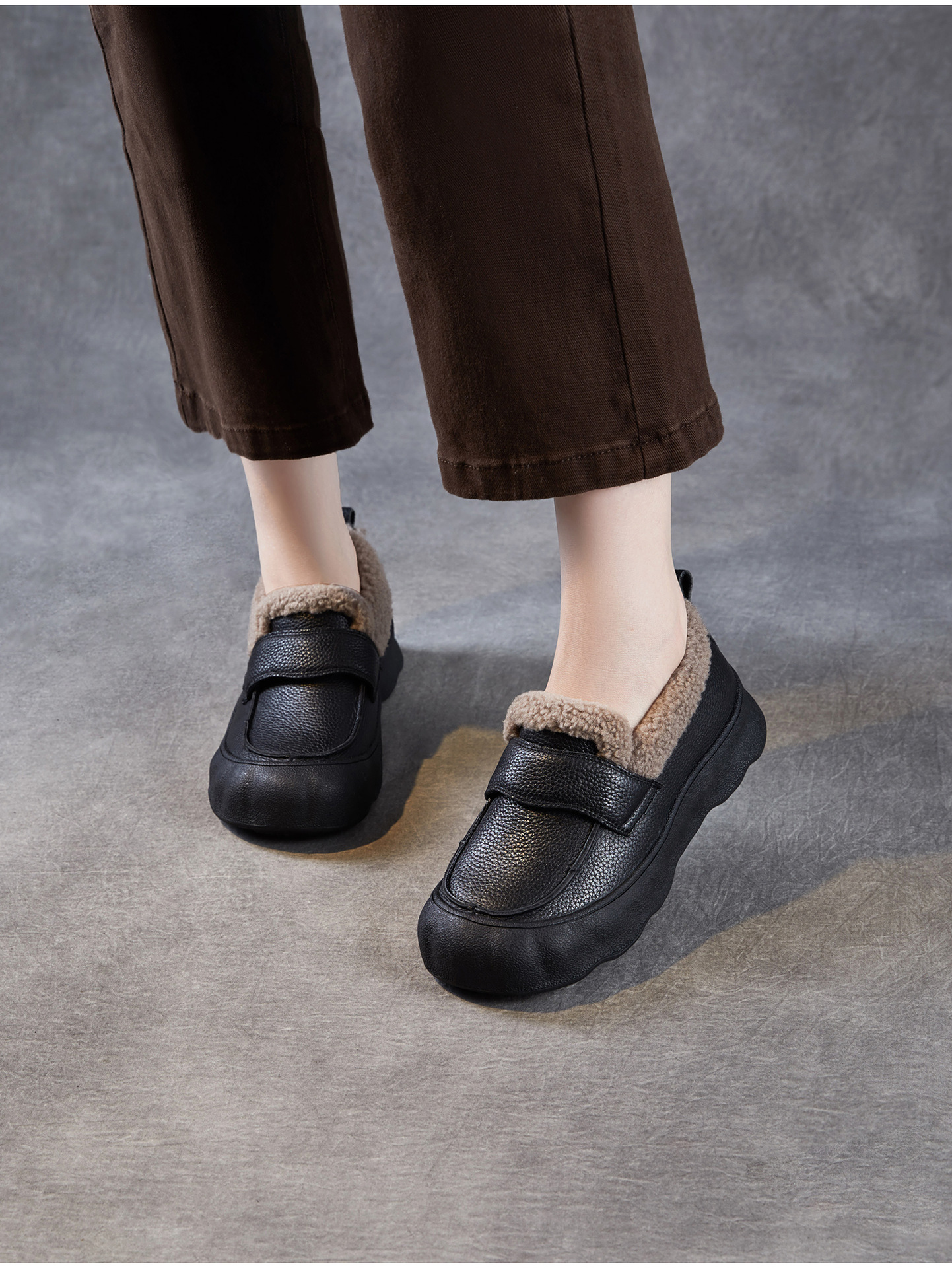 头层牛皮一脚蹬毛毛口鞋2025秋冬款平底休闲棉鞋软底加绒保暖皮鞋