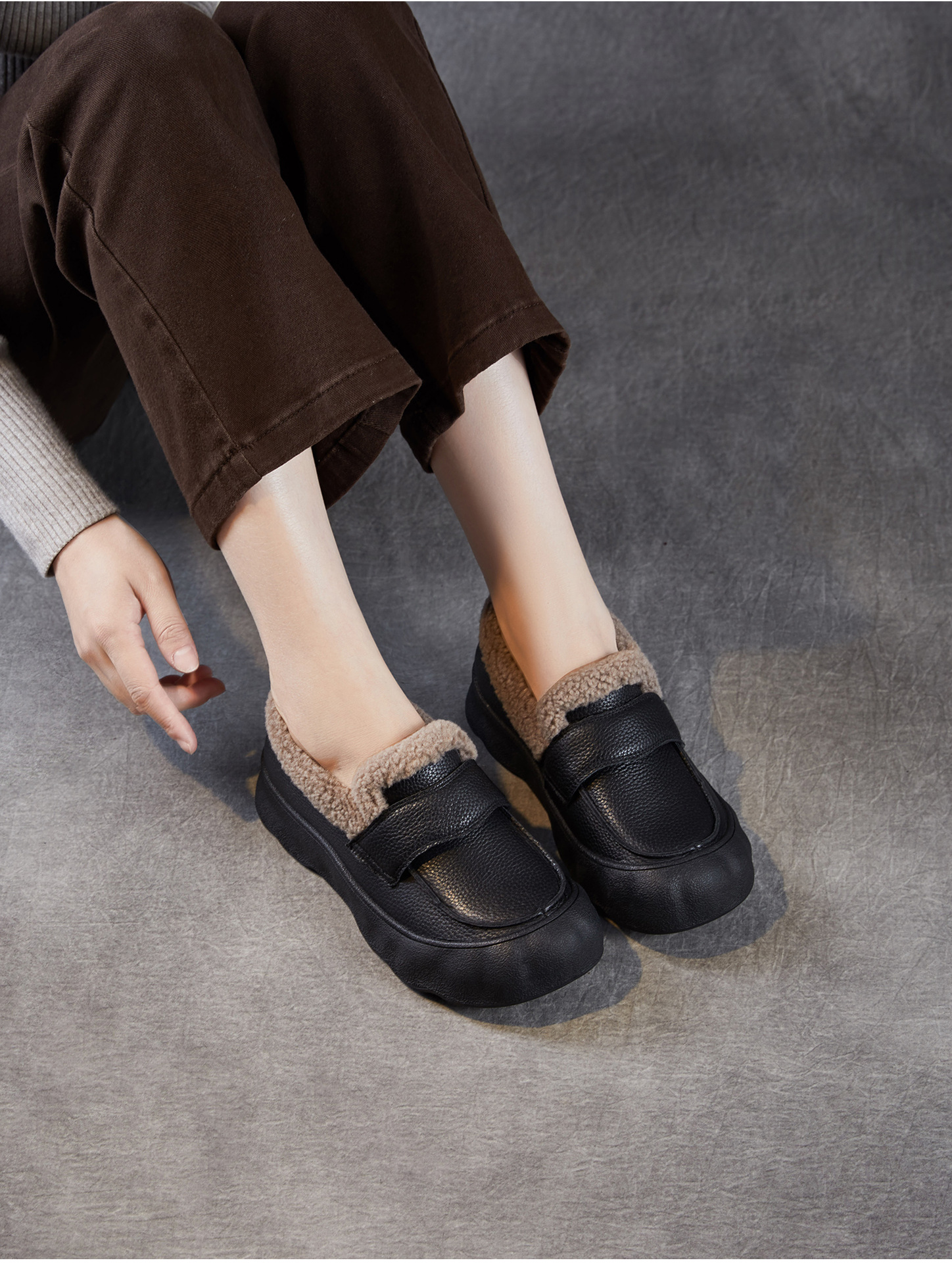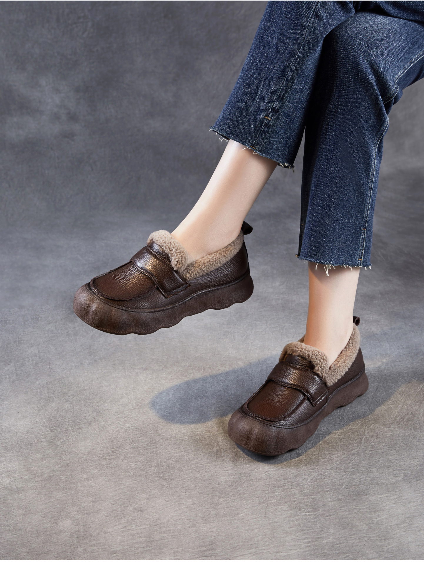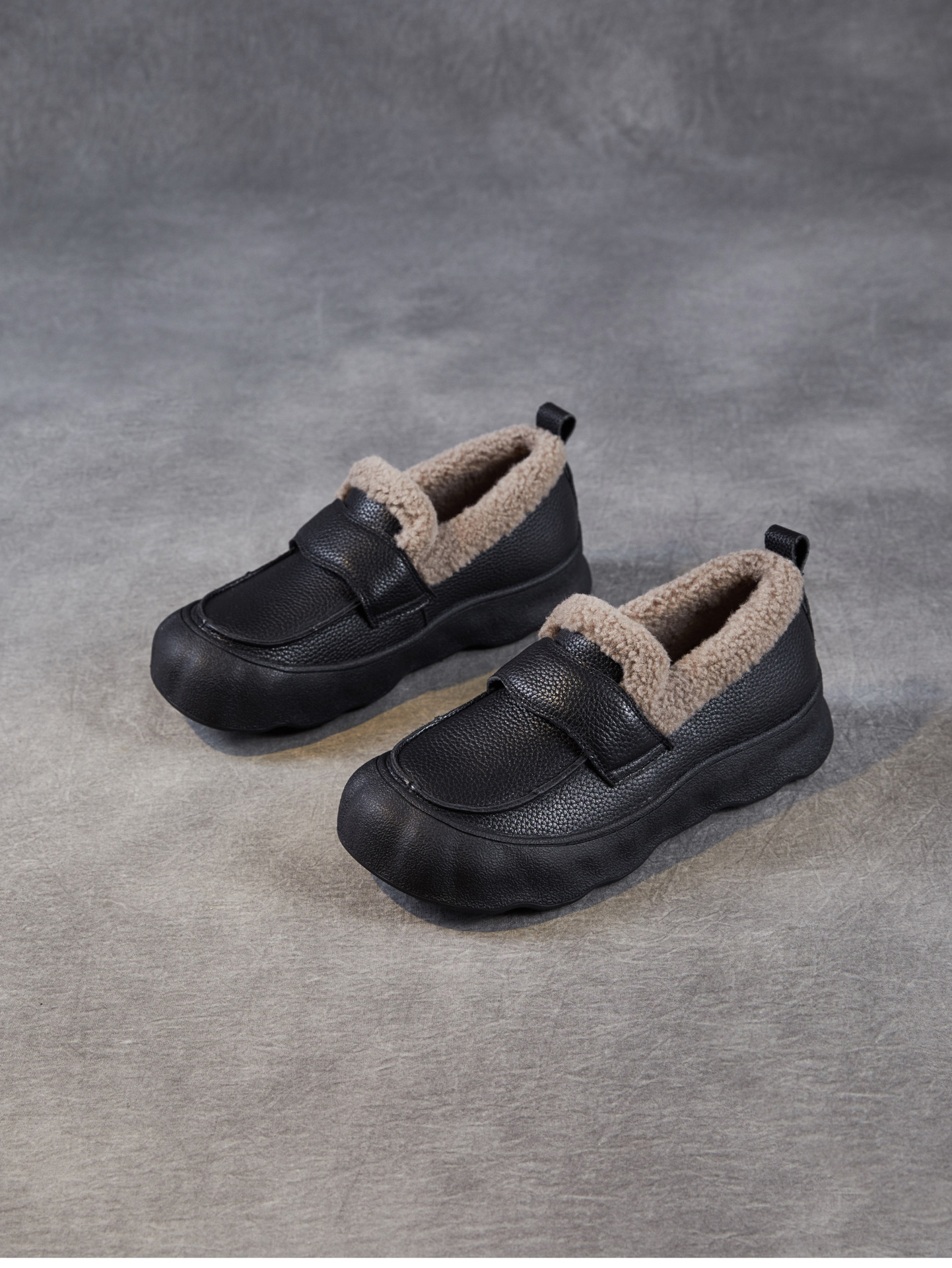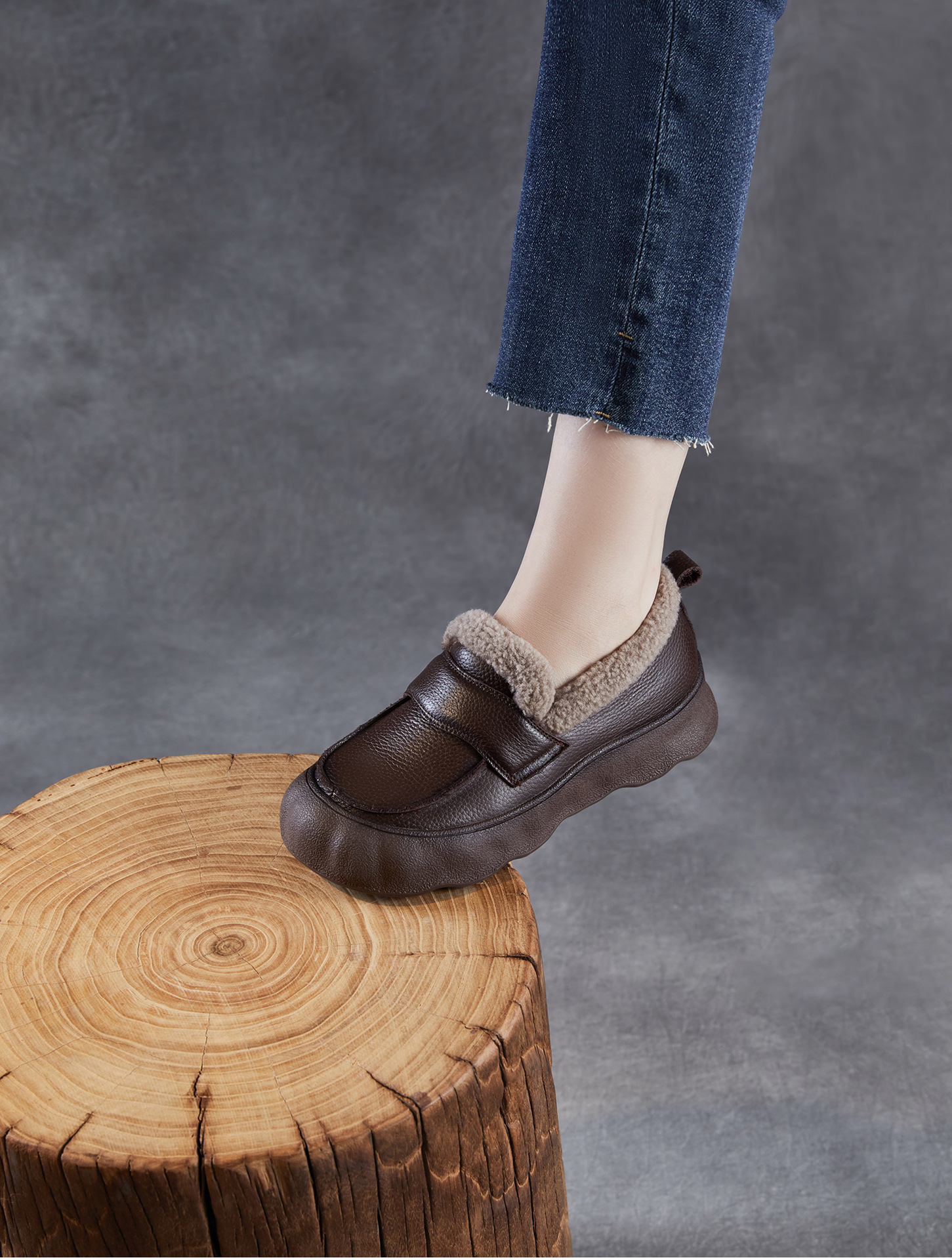 头层牛皮一脚蹬毛毛口鞋2025秋冬款平底休闲棉鞋软底加绒保暖皮鞋