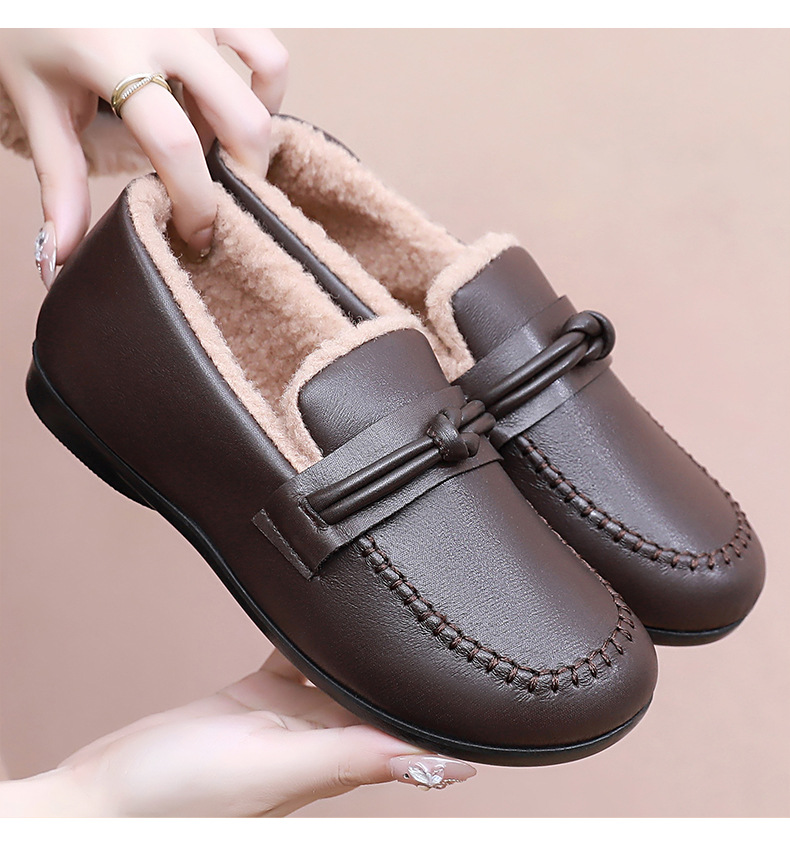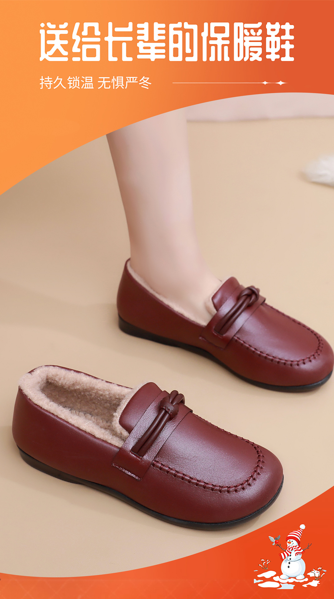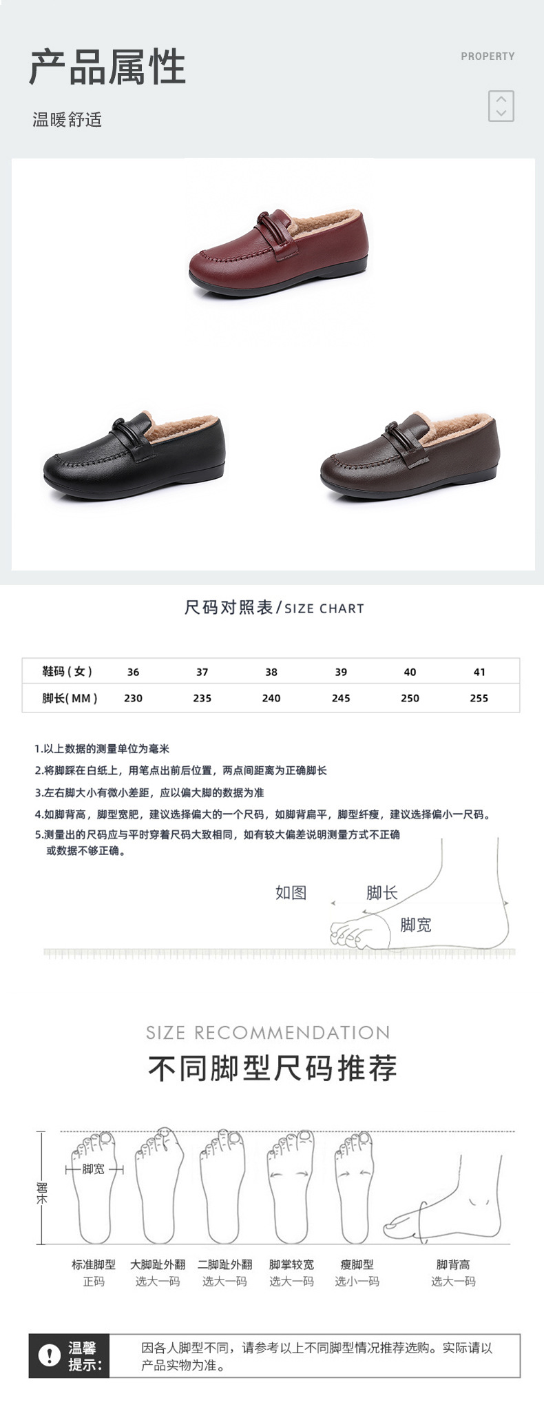 女鞋秋冬加绒鞋加厚小皮鞋一脚蹬棉鞋中老年保暖雪地靴百搭毛毛鞋
