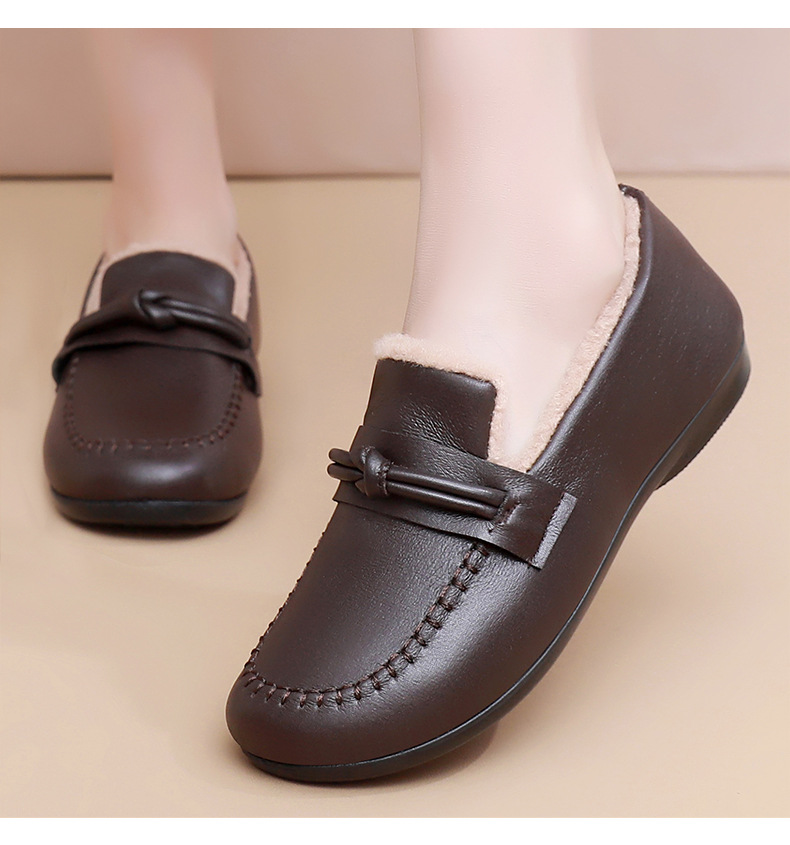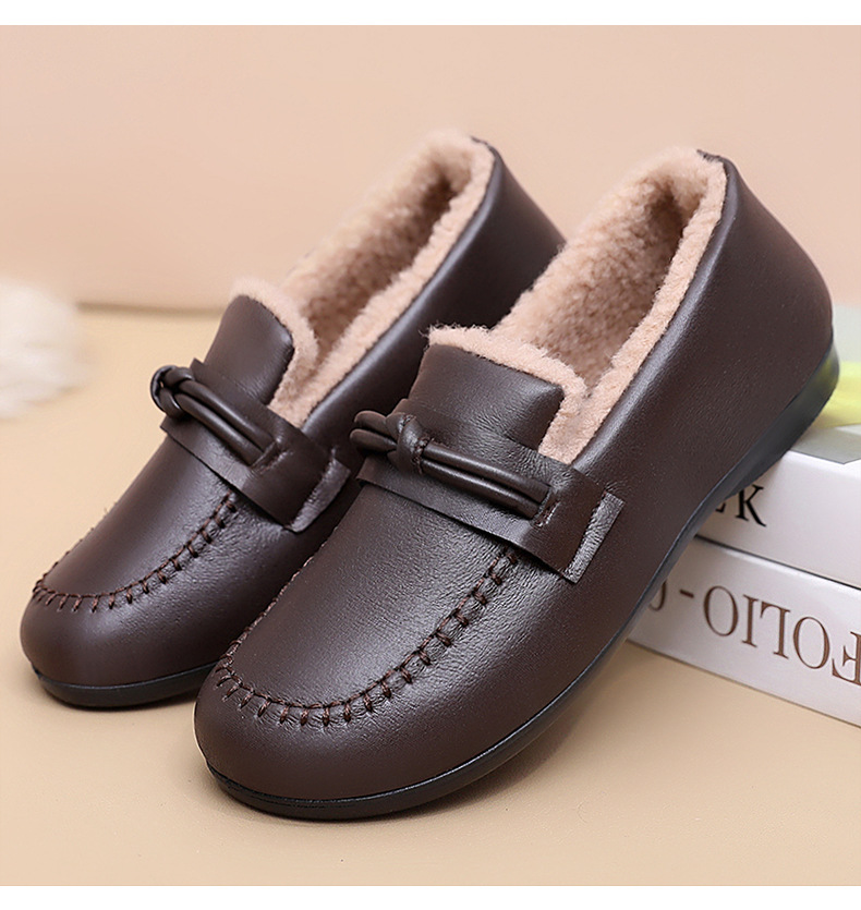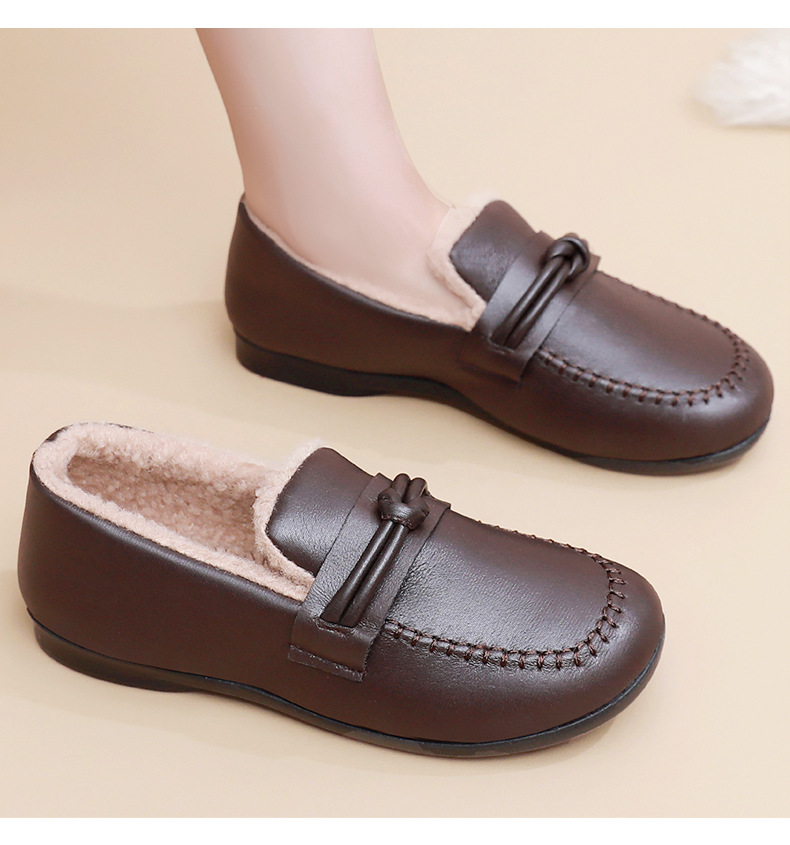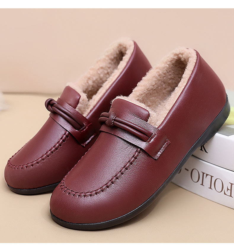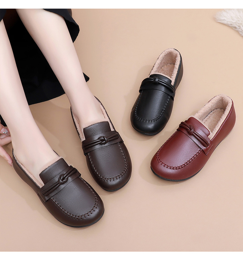 女鞋秋冬加绒鞋加厚小皮鞋一脚蹬棉鞋中老年保暖雪地靴百搭毛毛鞋
