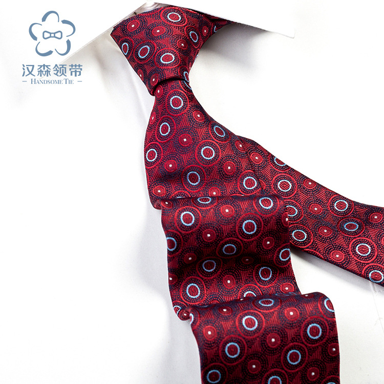 嵊州红色结婚领带男现货涤纶丝商务男领带批发提花新郎领带厂家