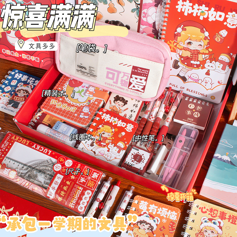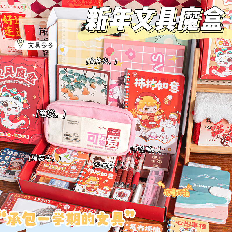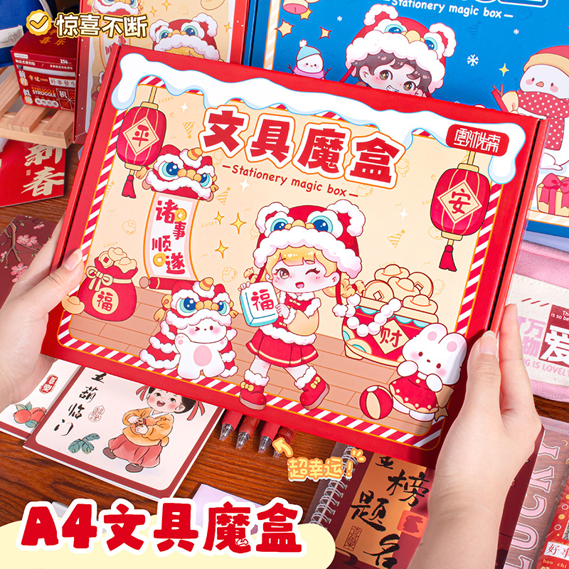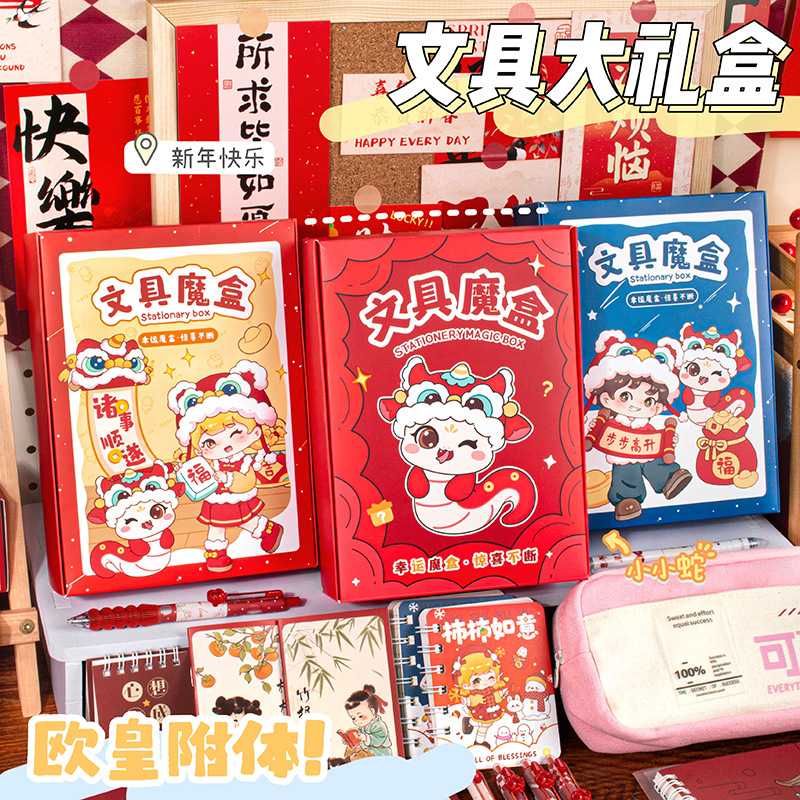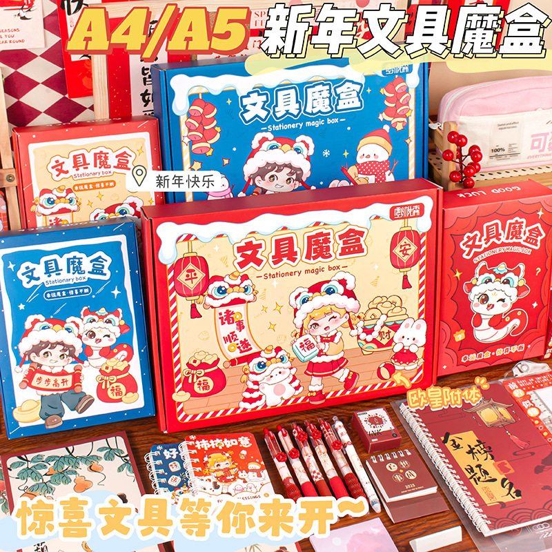 可爱创意新年手提文具盲盒小学生礼品高级感文具礼盒卡通文具套装