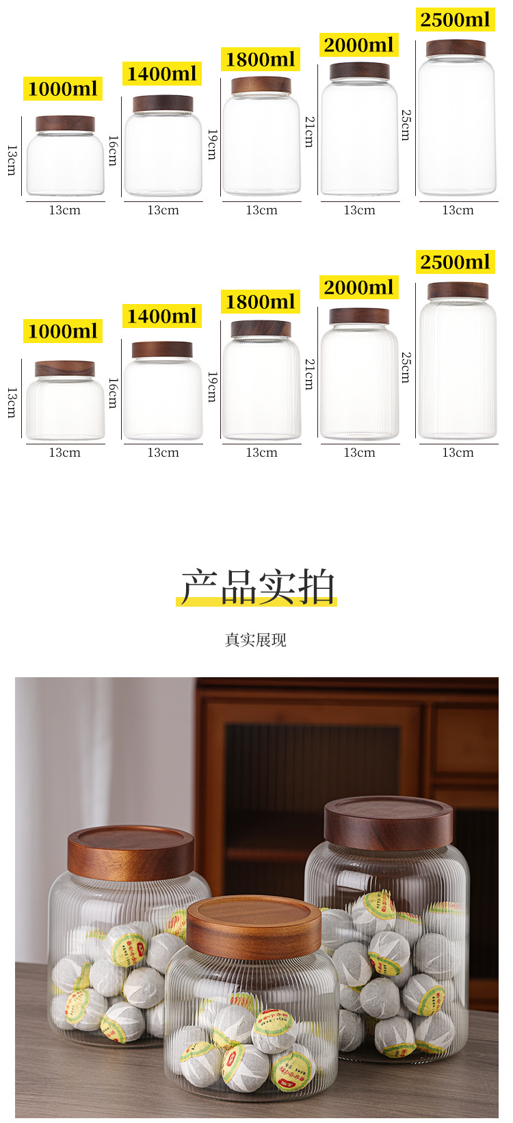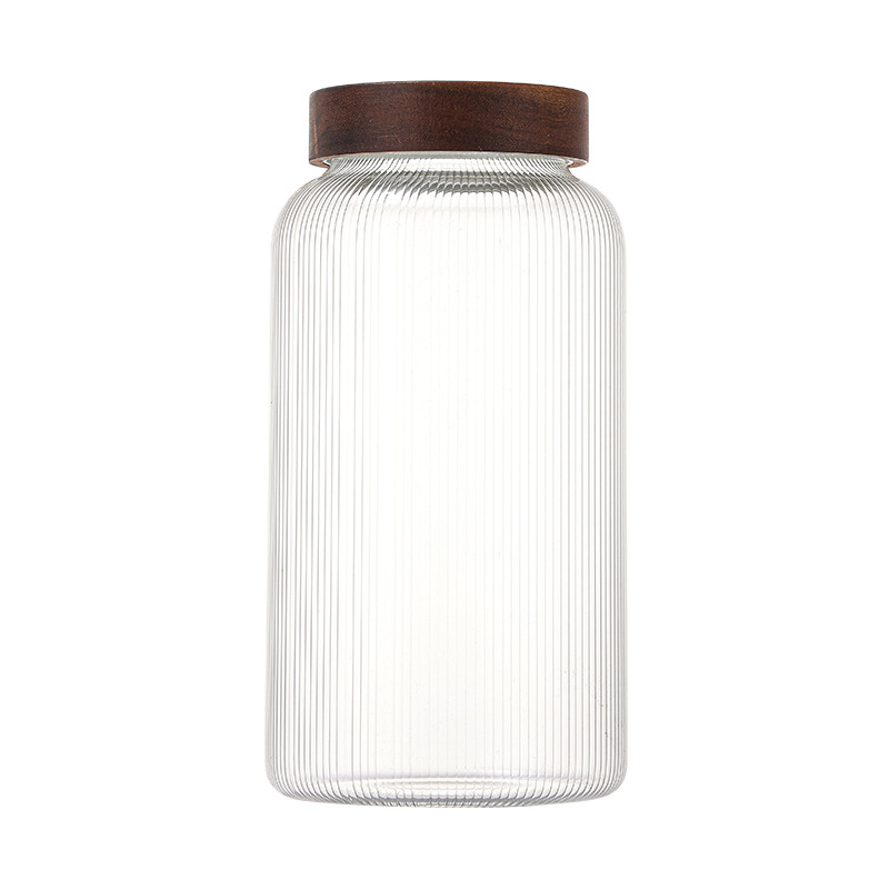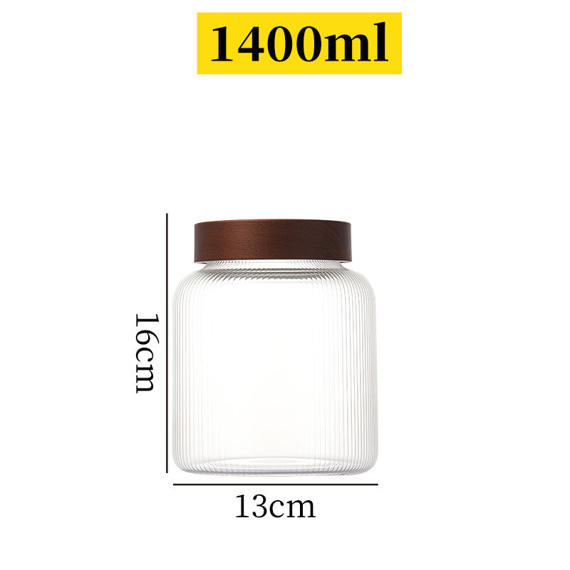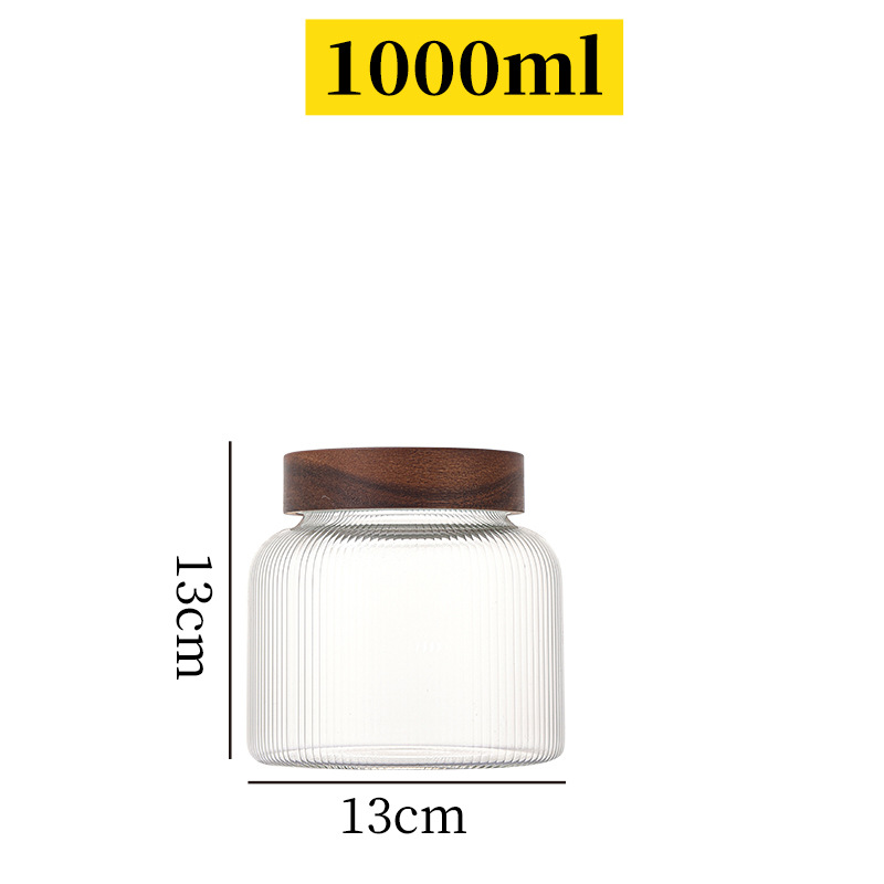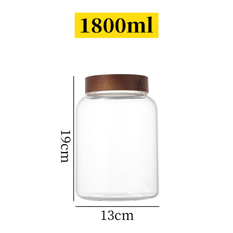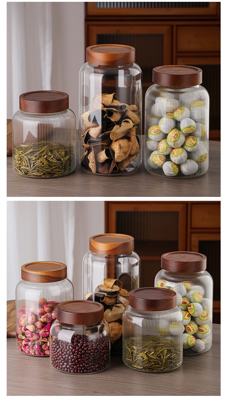 储物罐玻璃密封罐竹木盖家用圆形茶叶陈皮罐防潮杂粮收纳透明罐