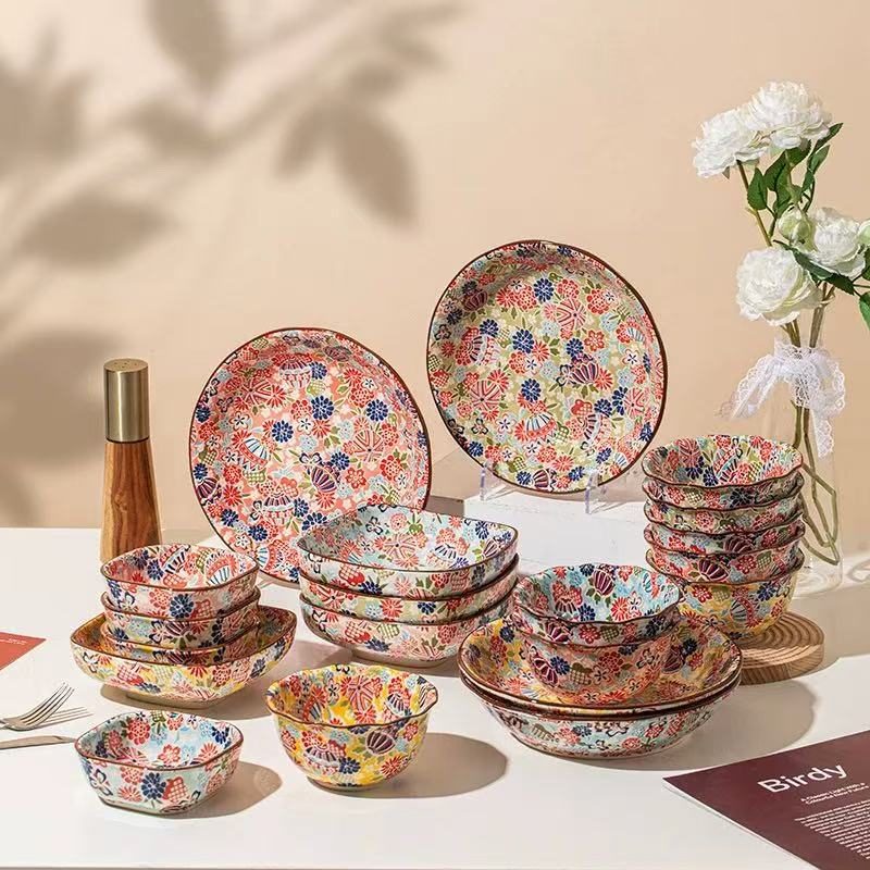 陶瓷高颜值釉下彩餐具餐厅盘碗家用组合批发