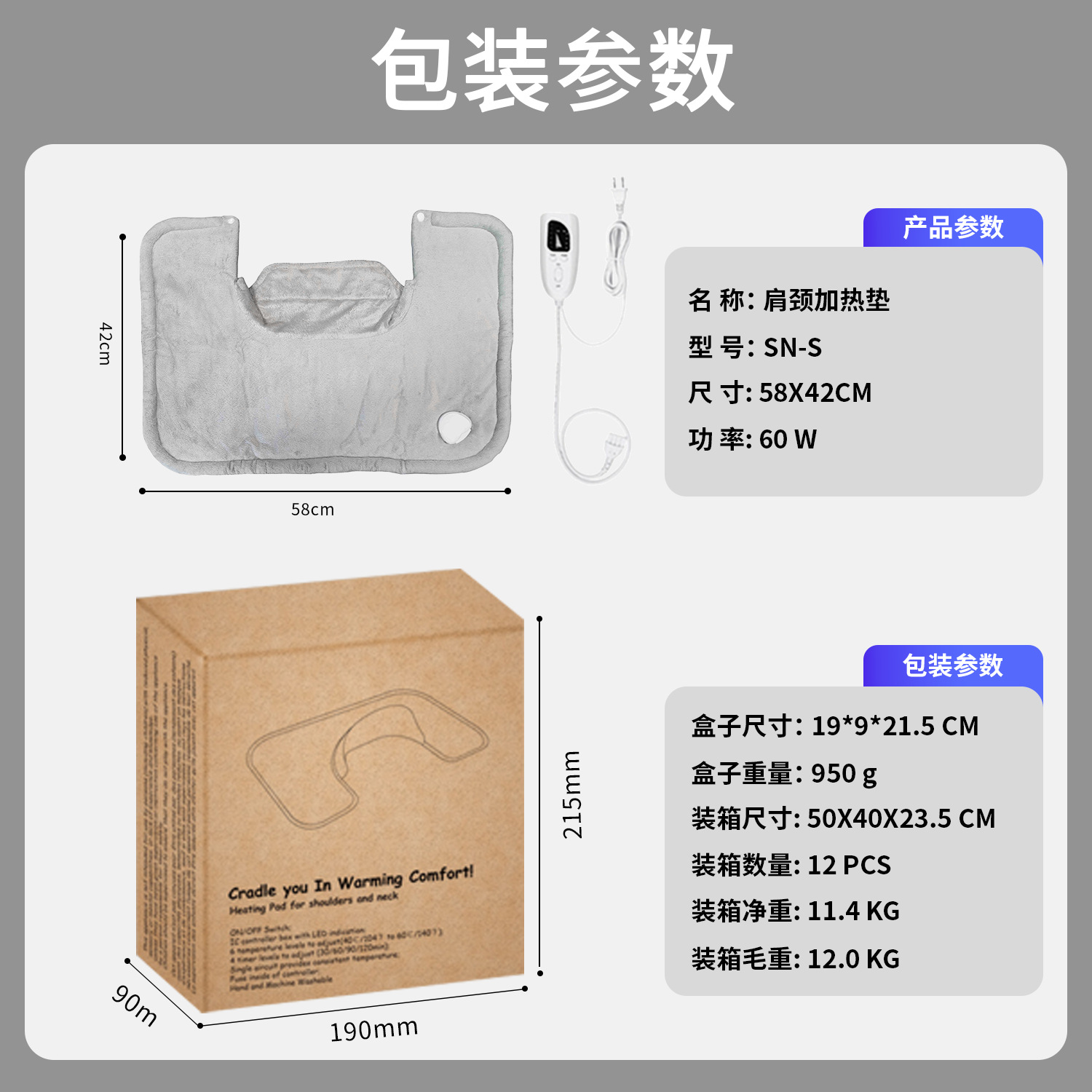 跨境电热披肩便携法兰绒办公室加热垫热敷可控温舒缓肩颈加热披肩