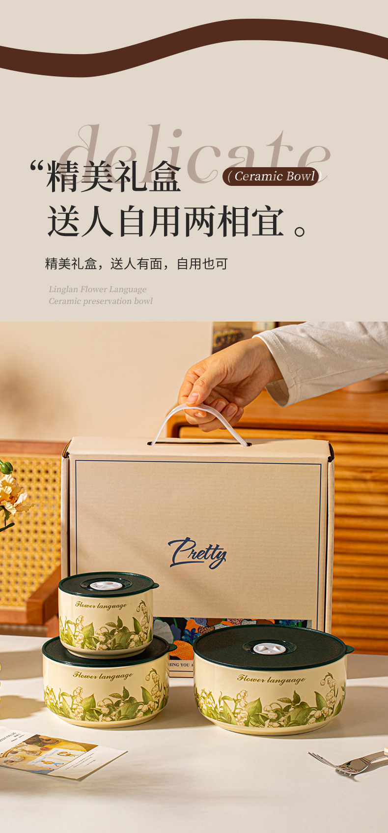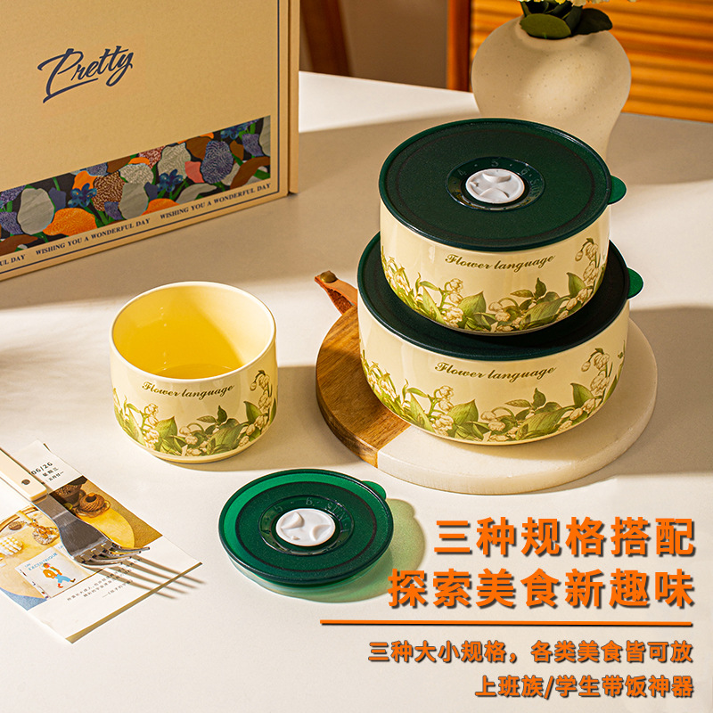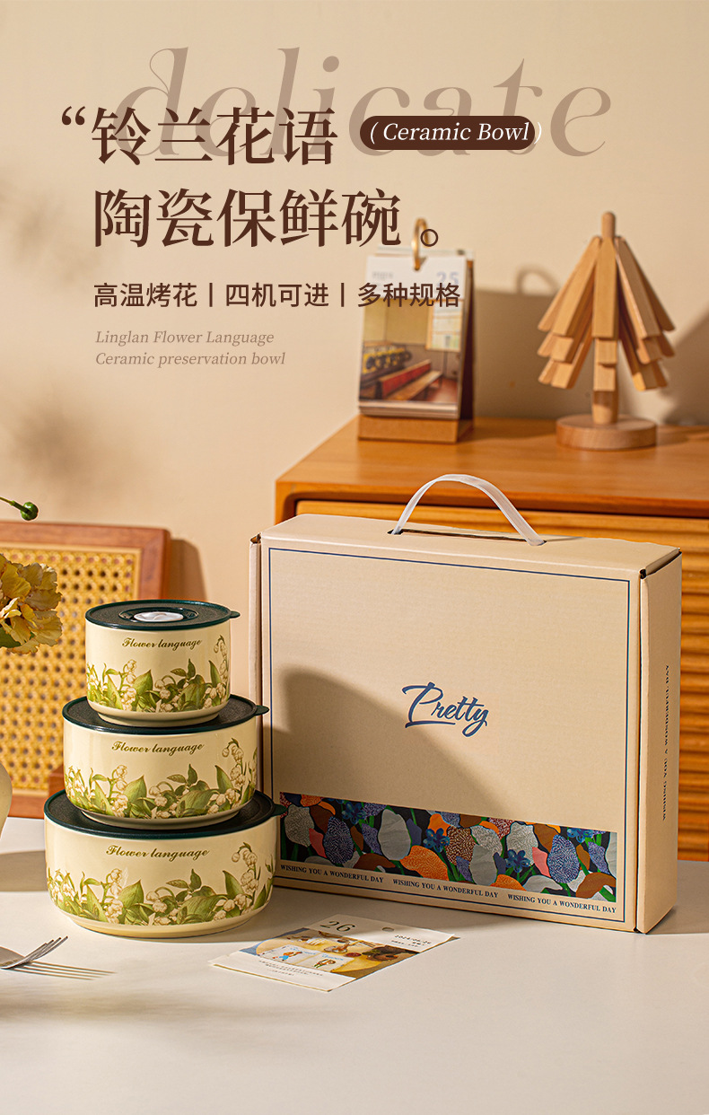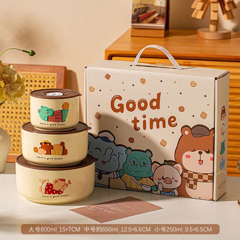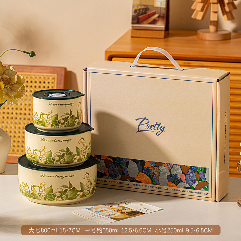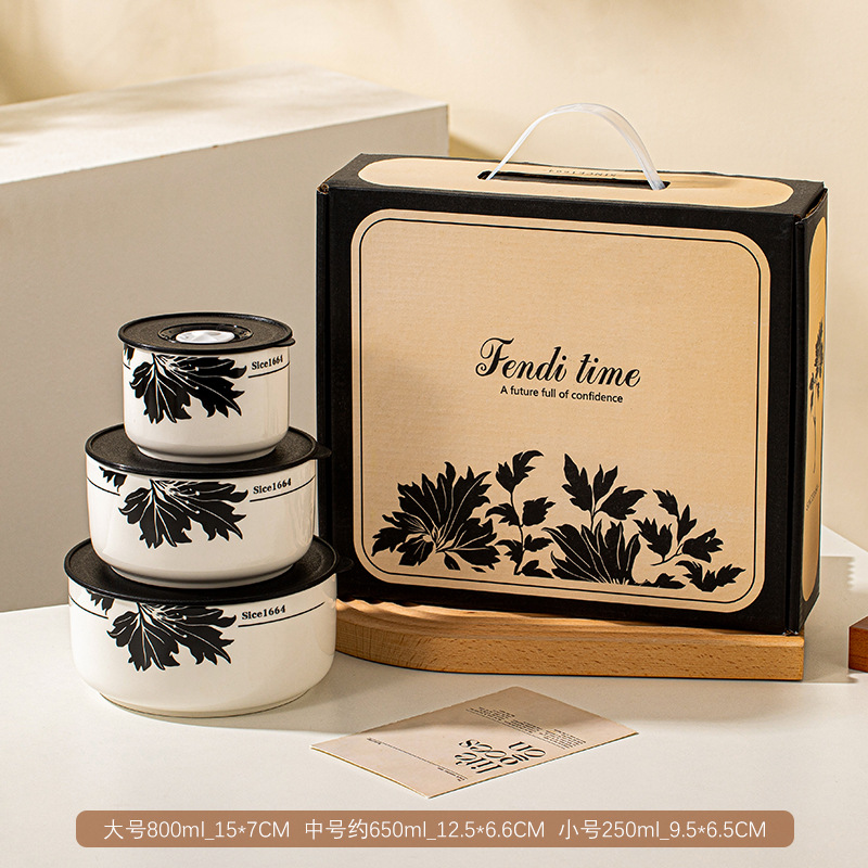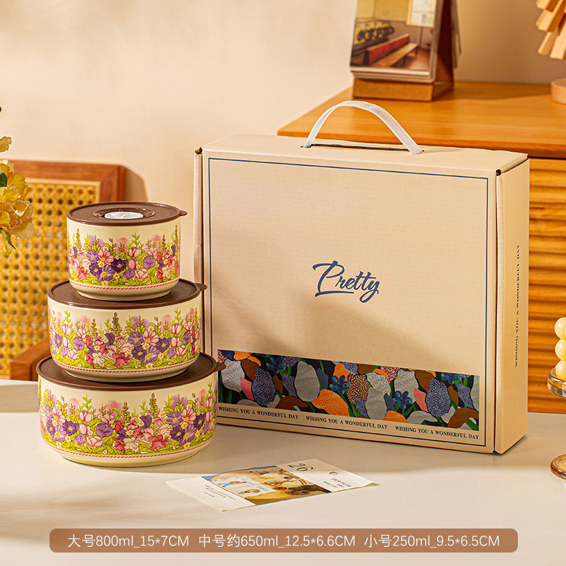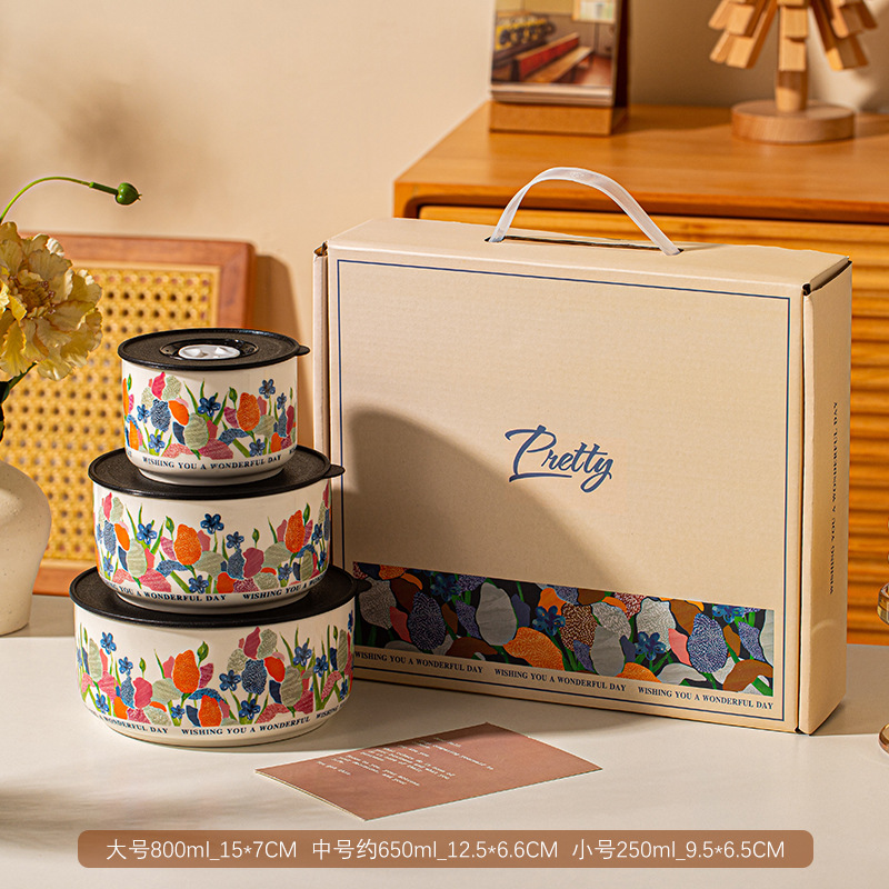 保鲜碗三件套礼盒装可进微波炉泡面碗大容量实用小礼品开业活动